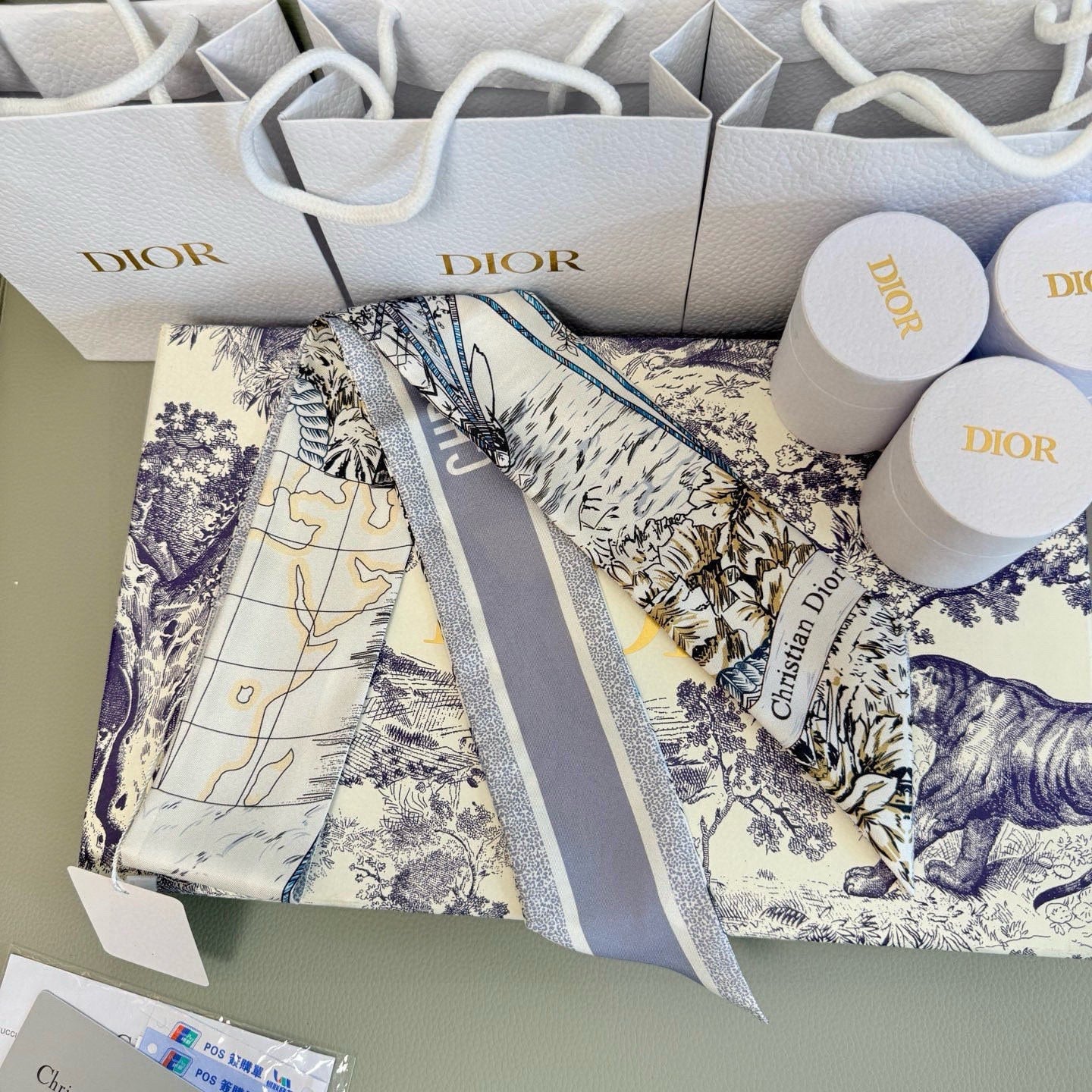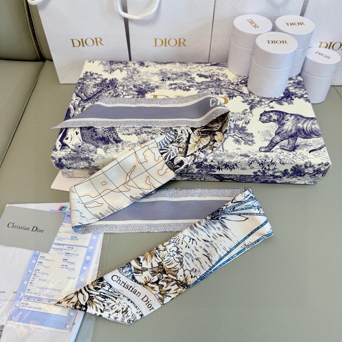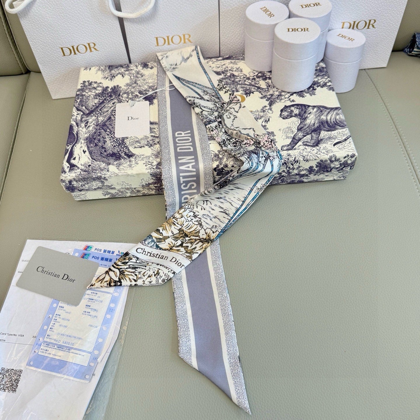 CD Twilly Mini Scarf 105cm Gray Colorful Mulberry Silk 945718