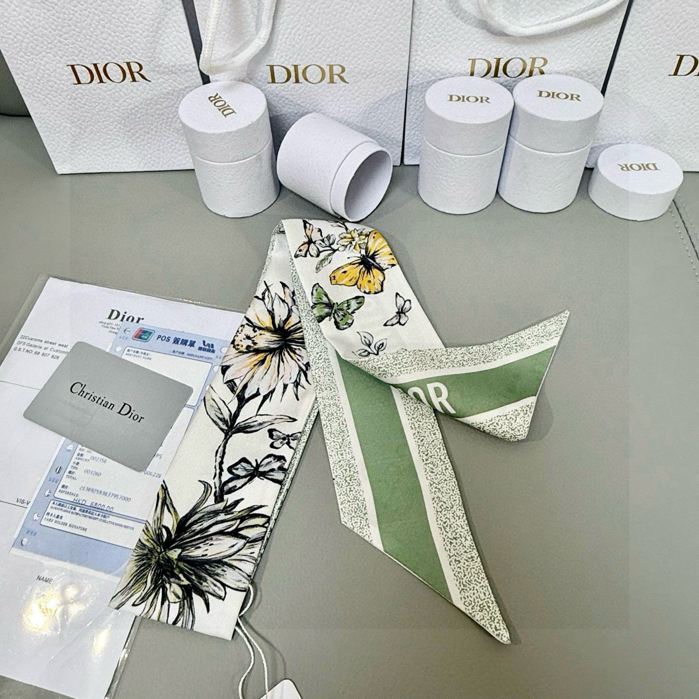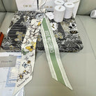 CD Twilly Mini Scarf 105cm Green Black Mulberry Silk 935251