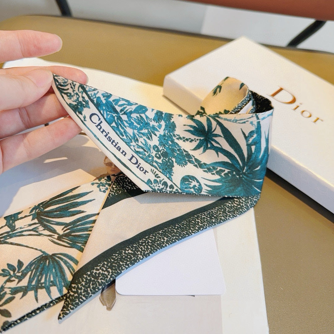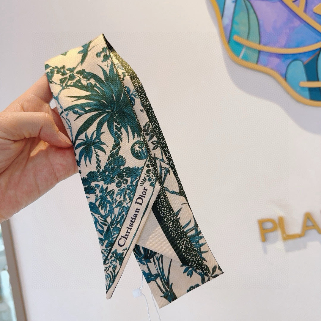 CD Twilly Mini Scarf 105cm Green Mulberry Silk 935273