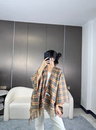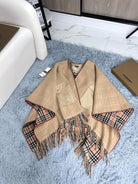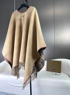CHECK CAPE IN SAND BROWN WOOL 410154