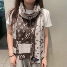 LV 25s Scarf 200cm Brown Light Gray Cashmere 973133