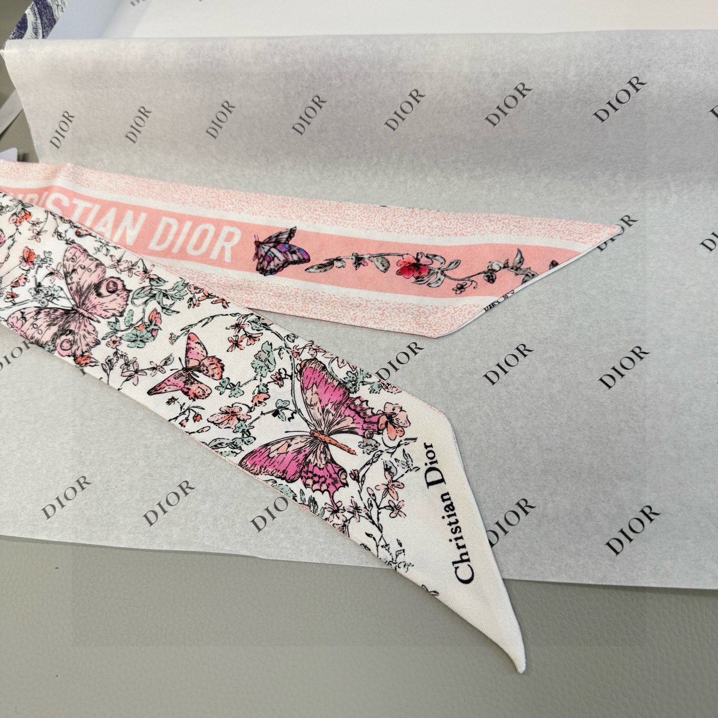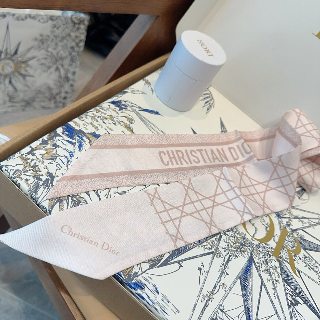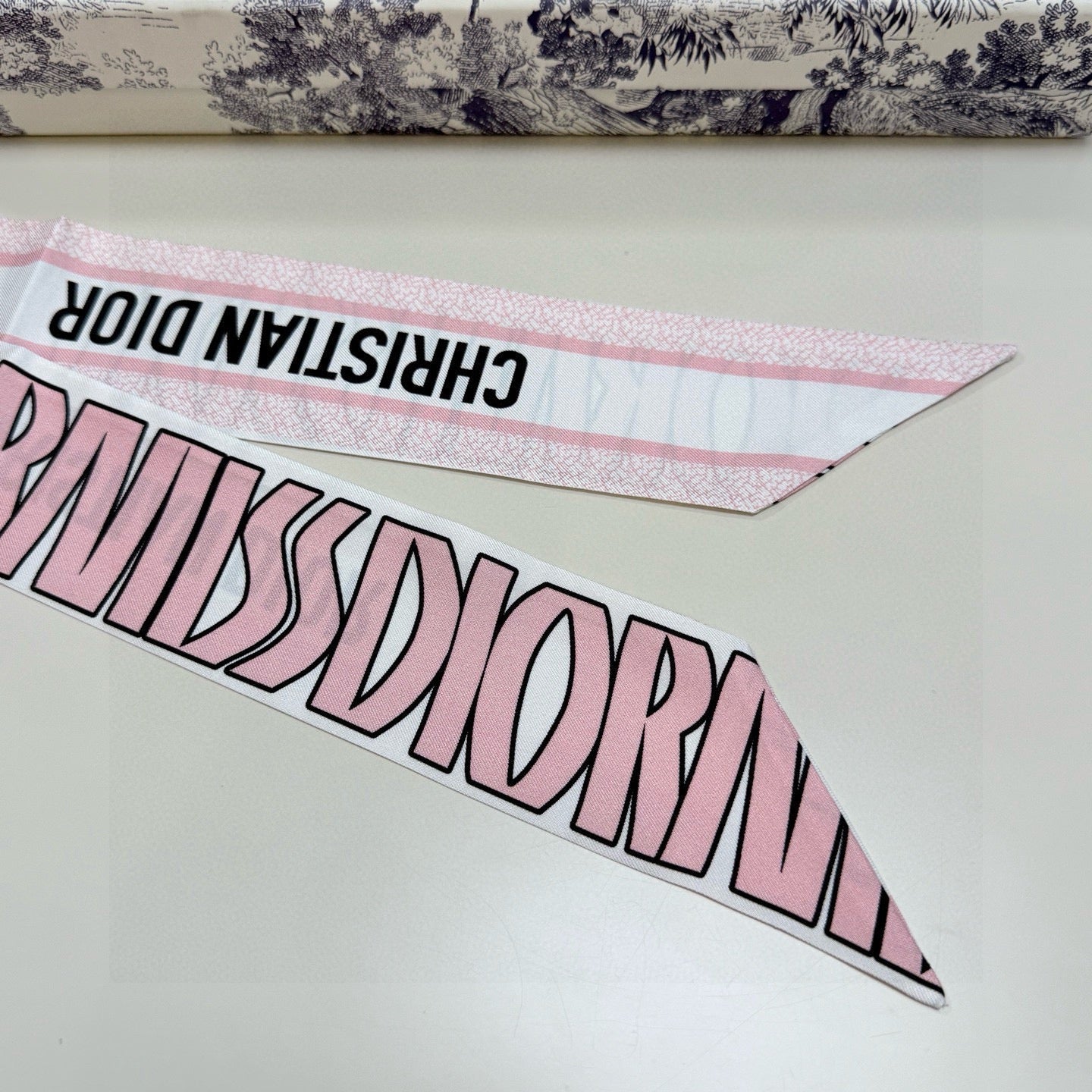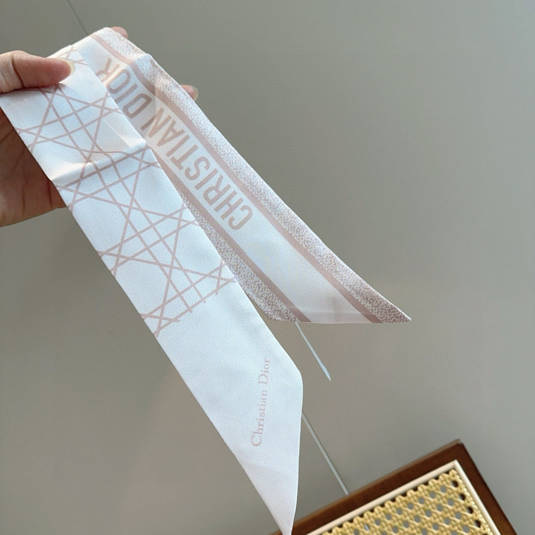 CC Twilly Mini Scarf 120cm White Pink Mulberry Silk 924596
