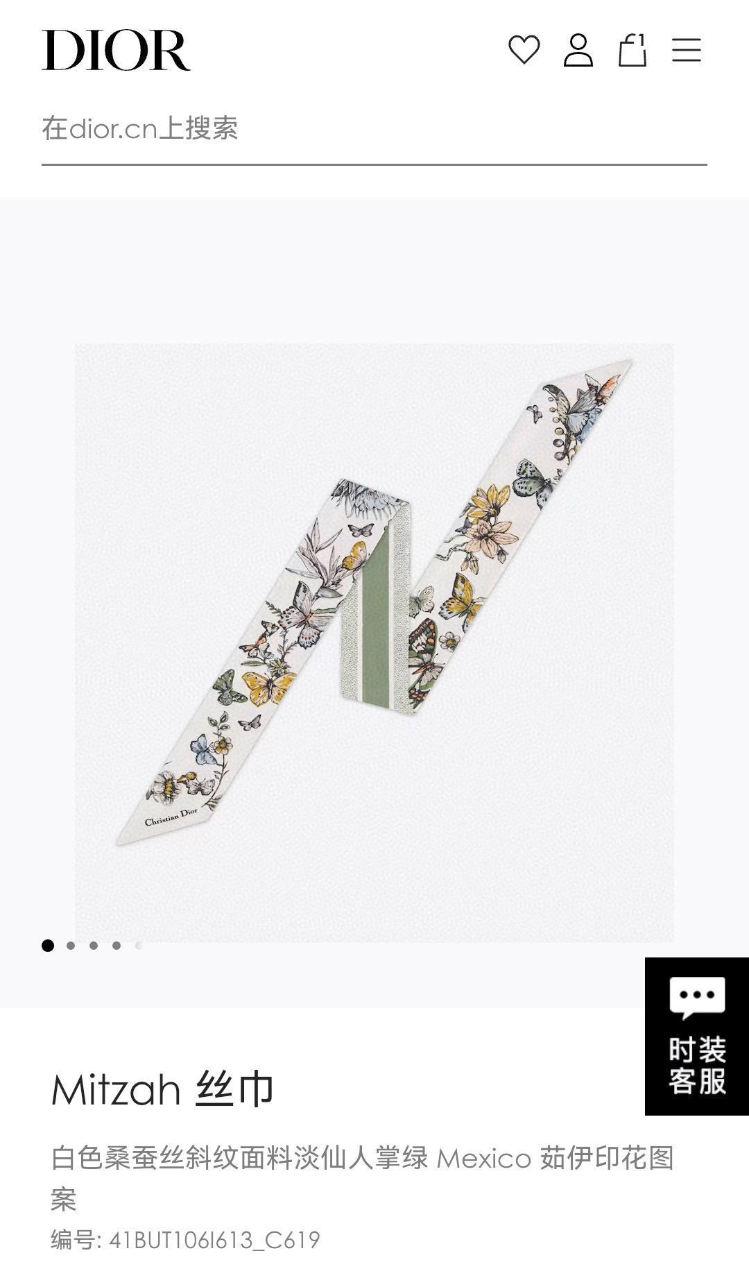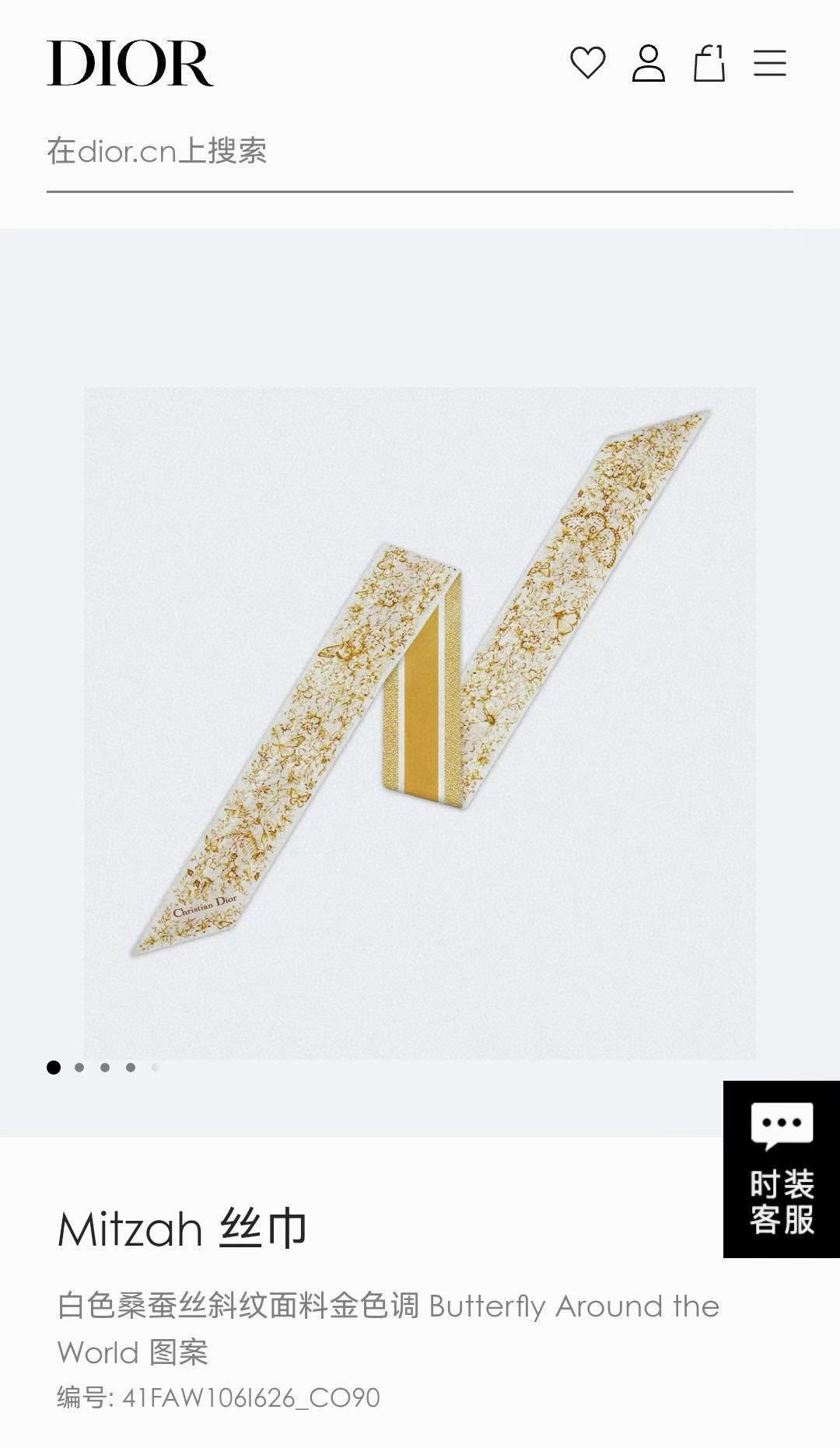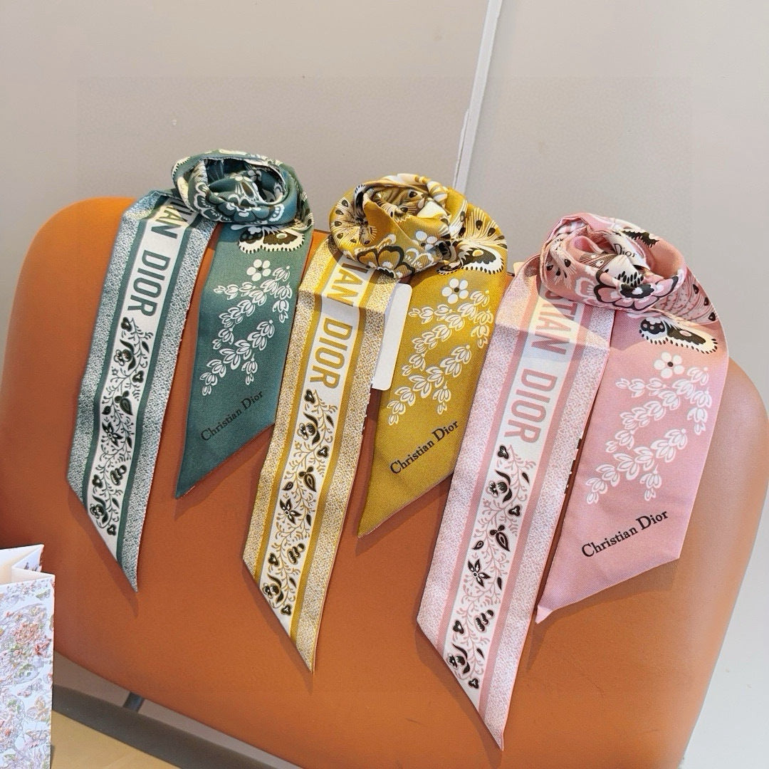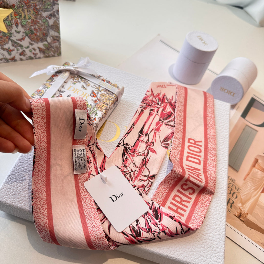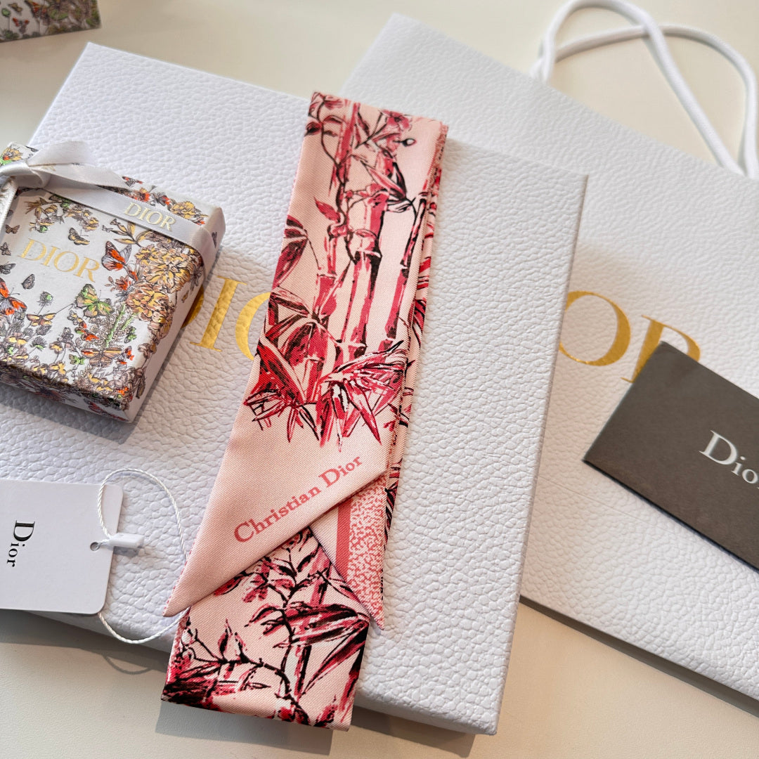 CC Twilly Mini Scarf 120cm White Pink Mulberry Silk 924596