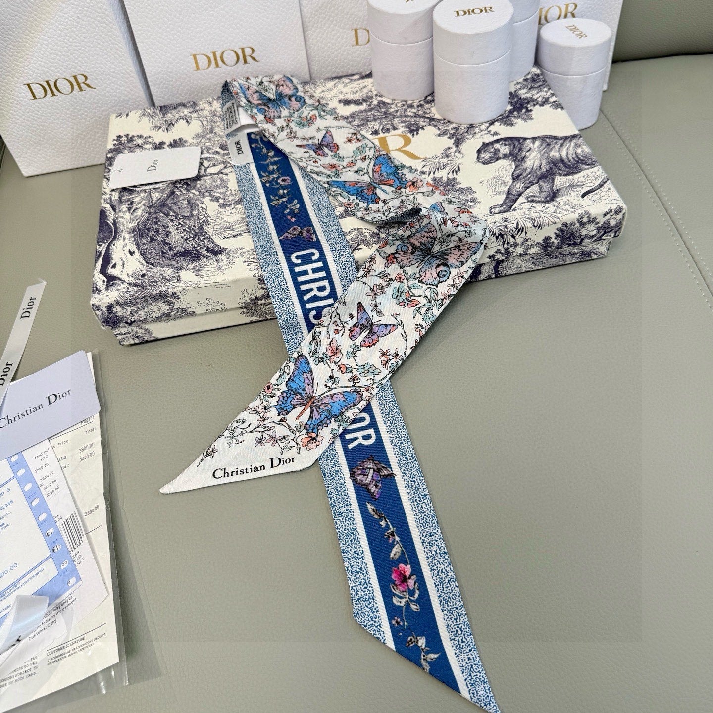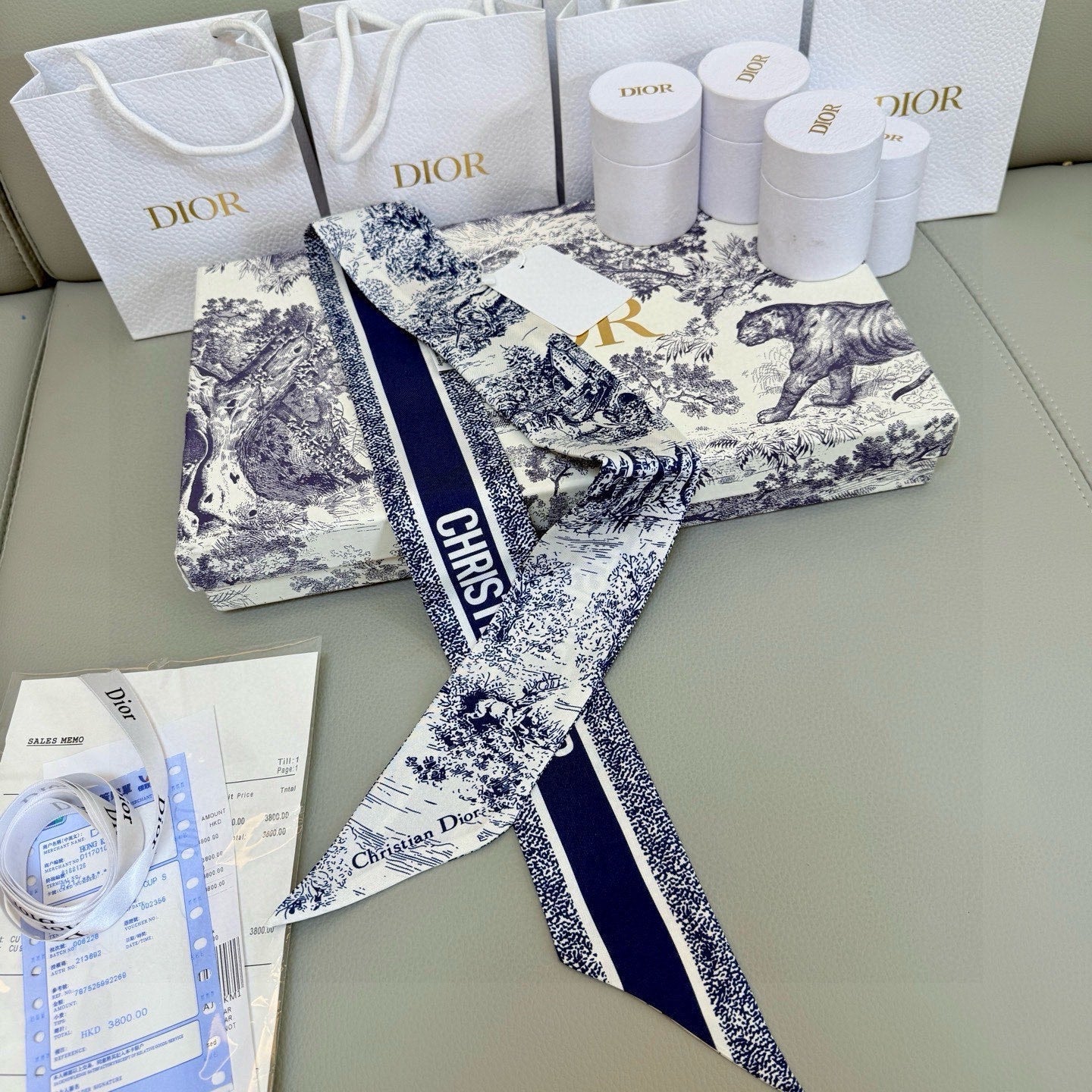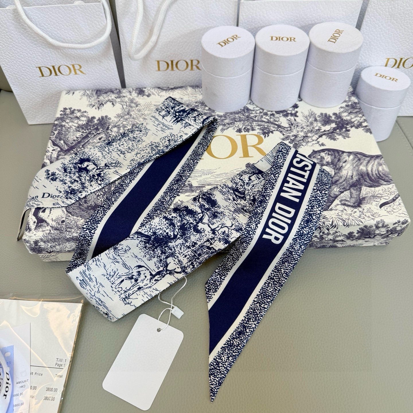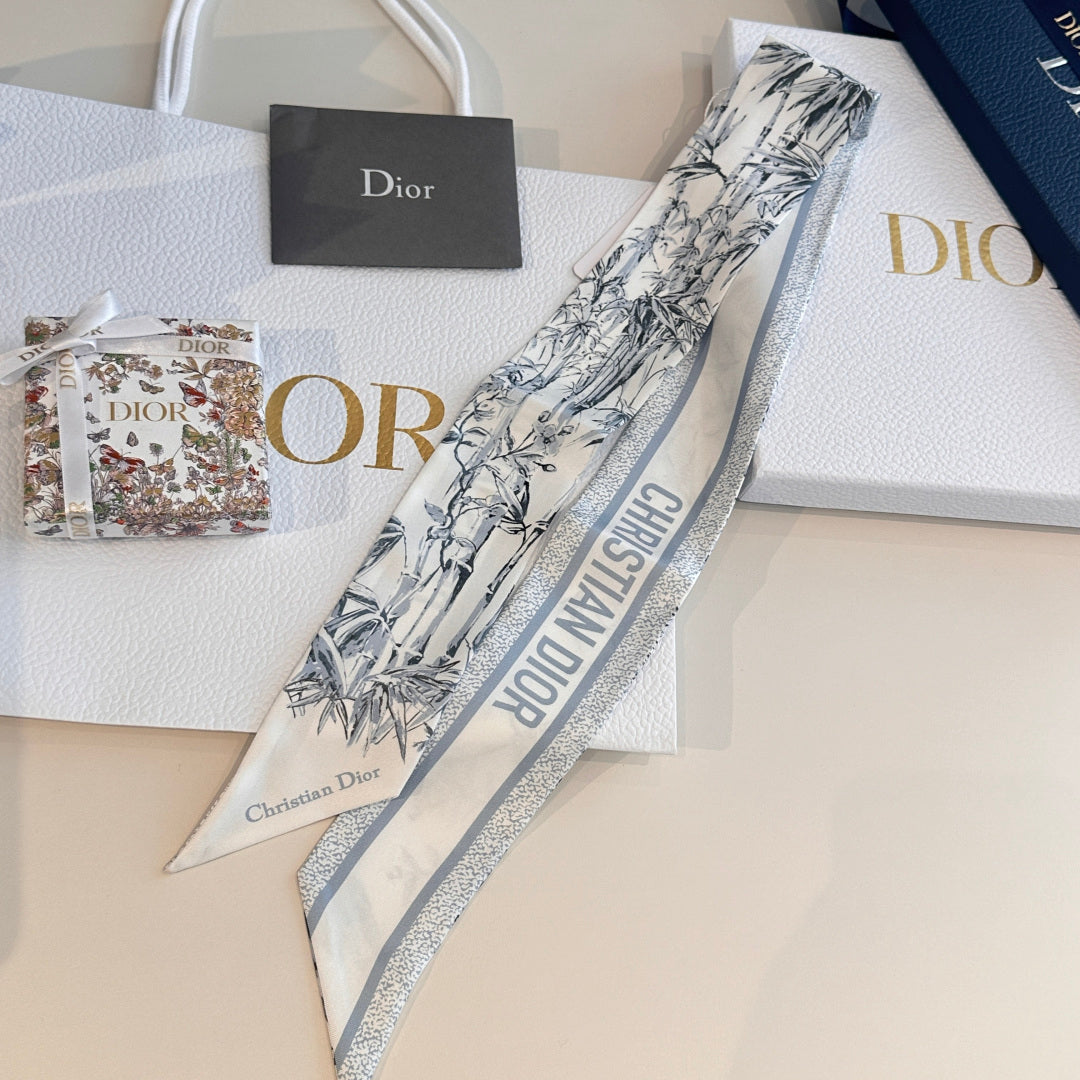 CC Twilly Mini Scarf 120cm White Navy Blue Mulberry Silk 802158