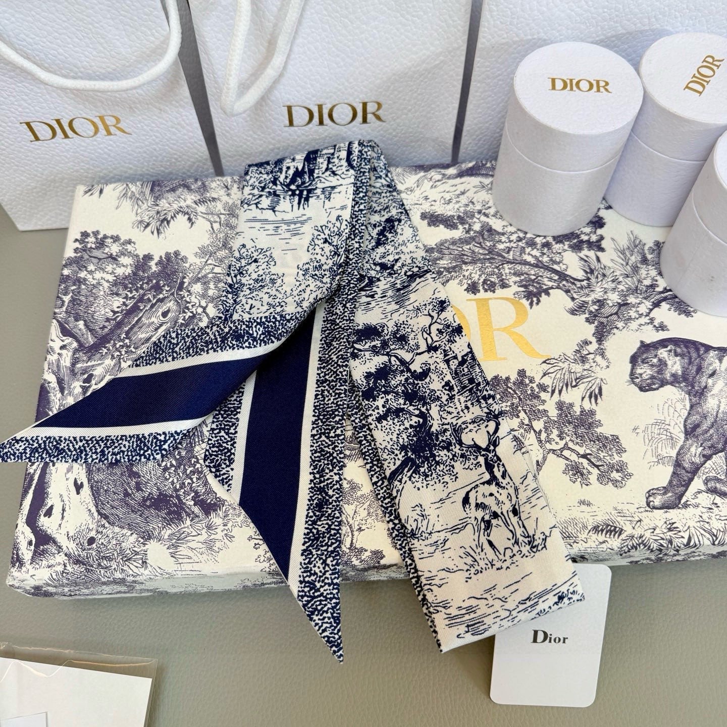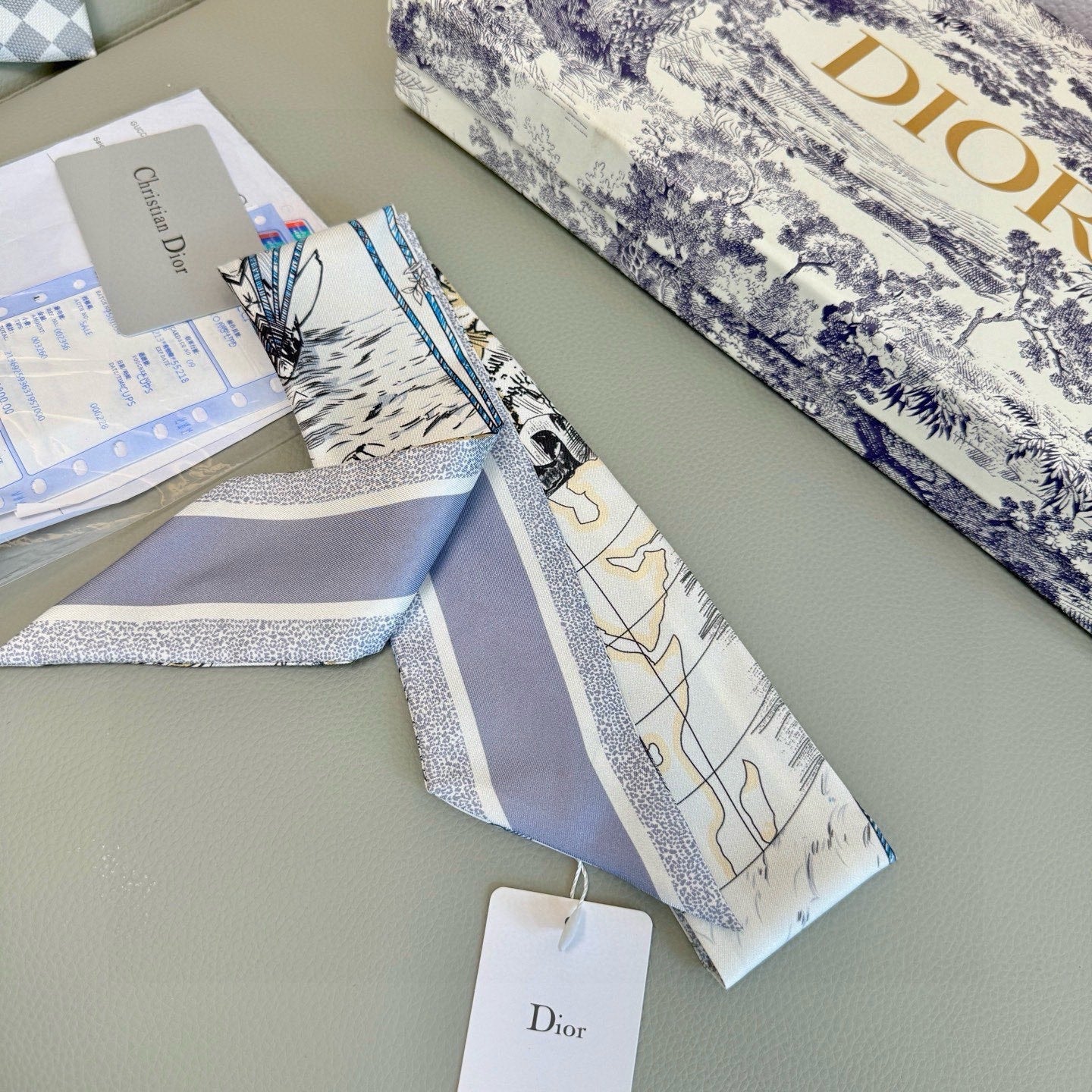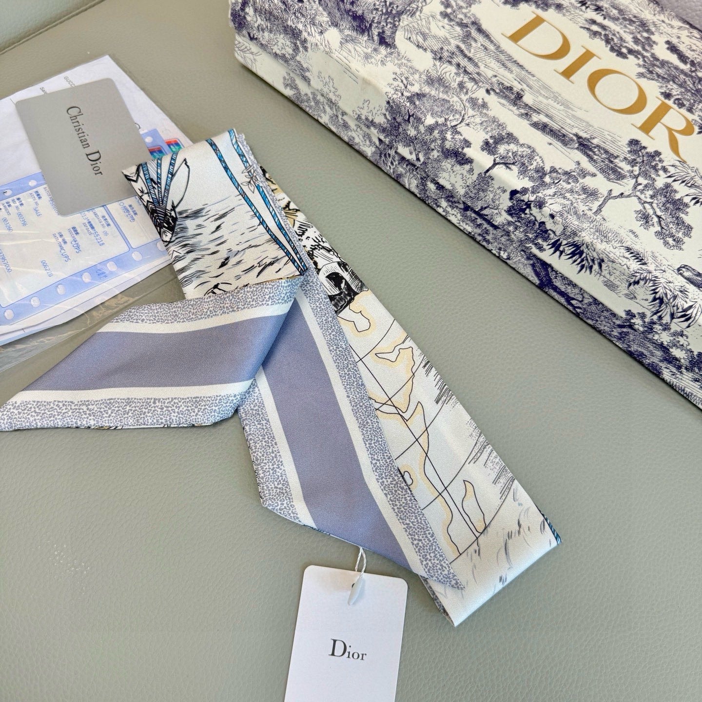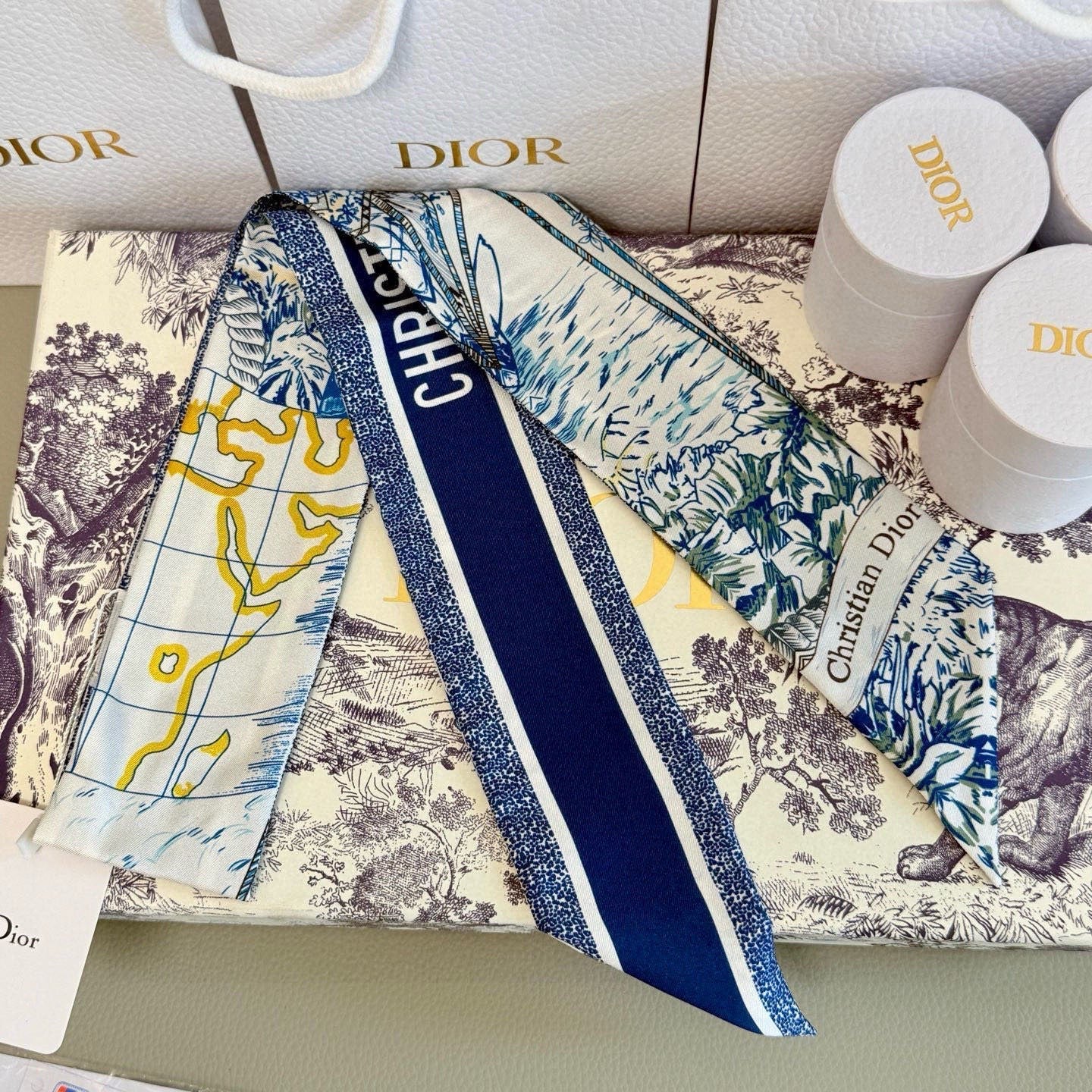 CC Twilly Mini Scarf 120cm White Navy Blue Mulberry Silk 802158