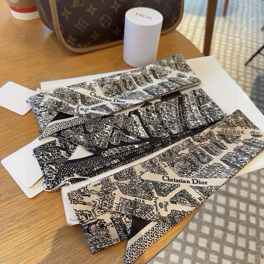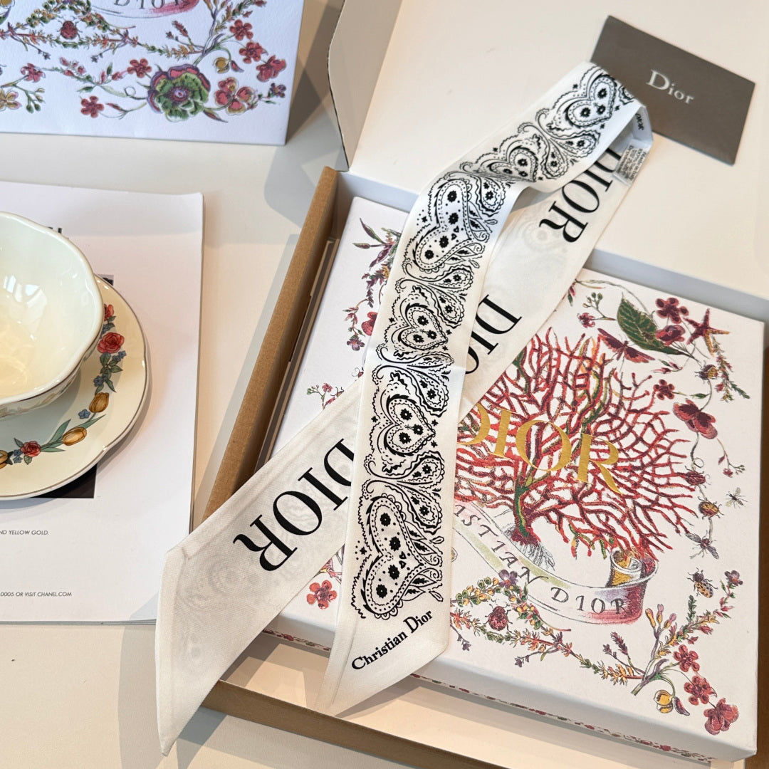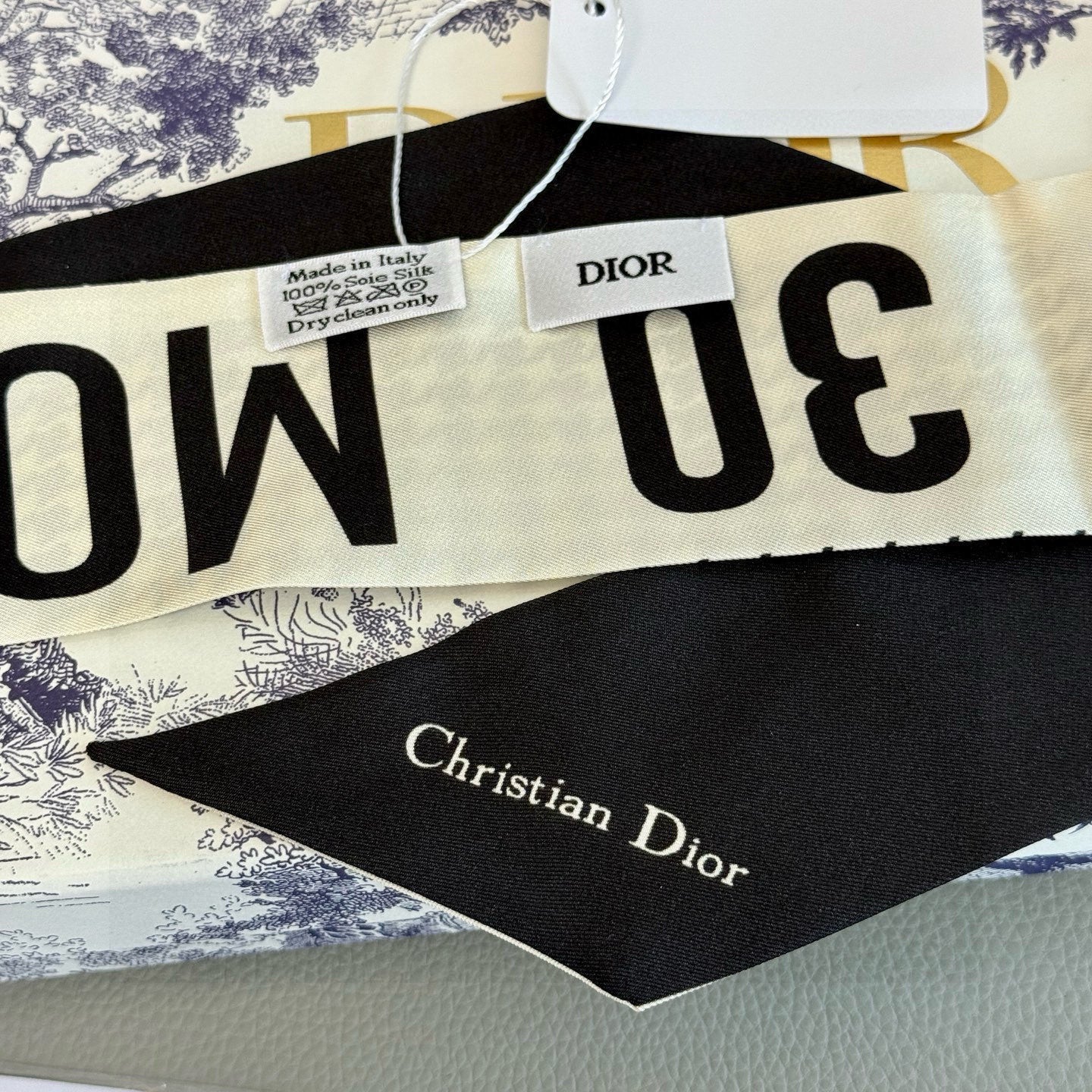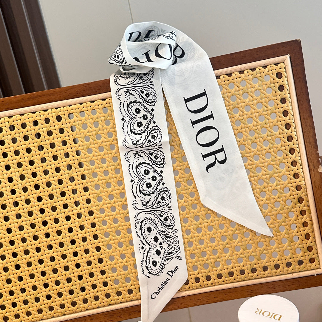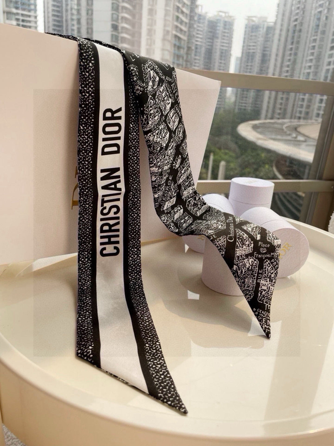 CC Twilly Mini Scarf 120cm White Black Mulberry Silk 953291