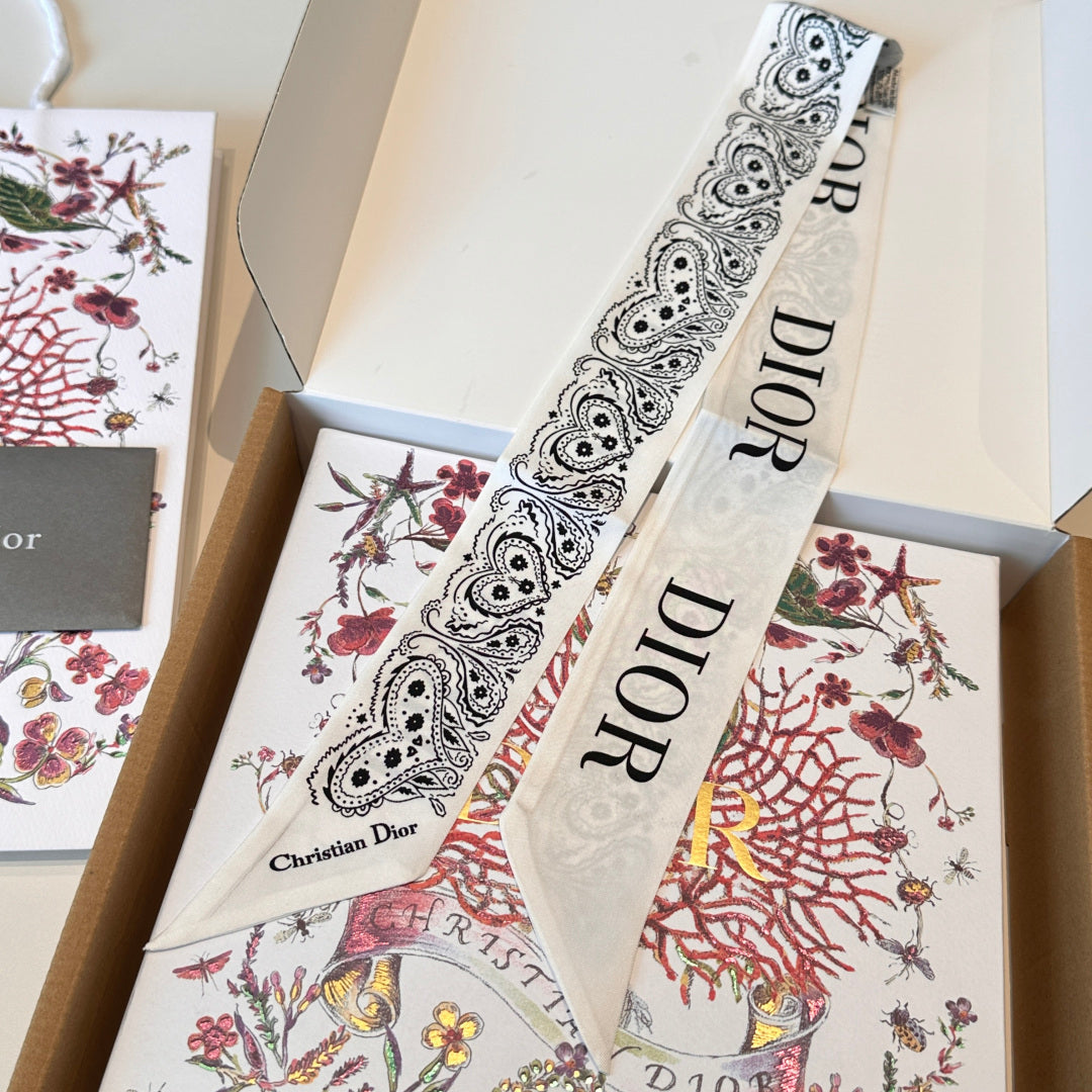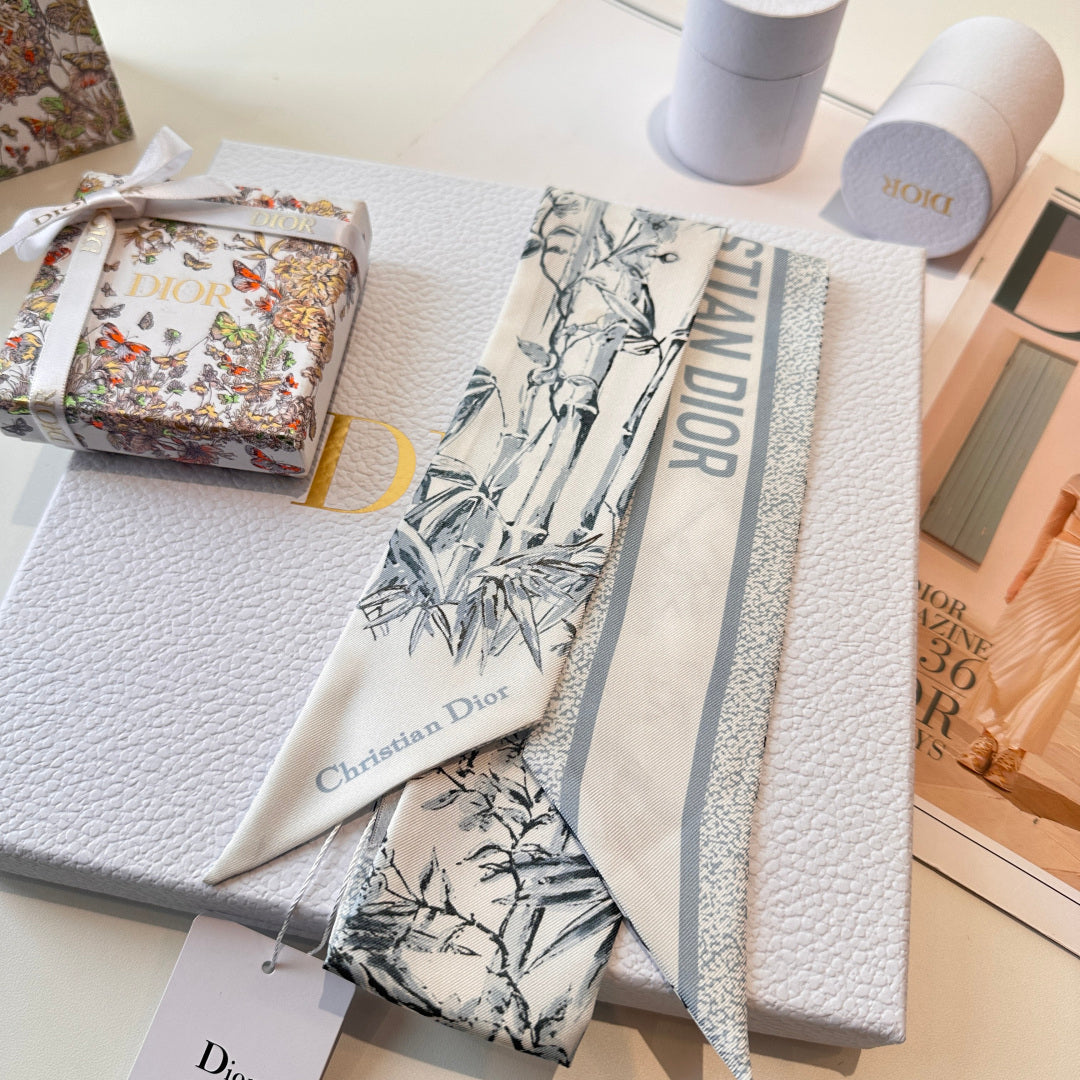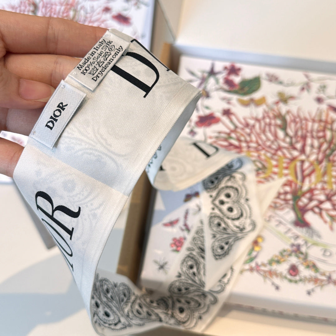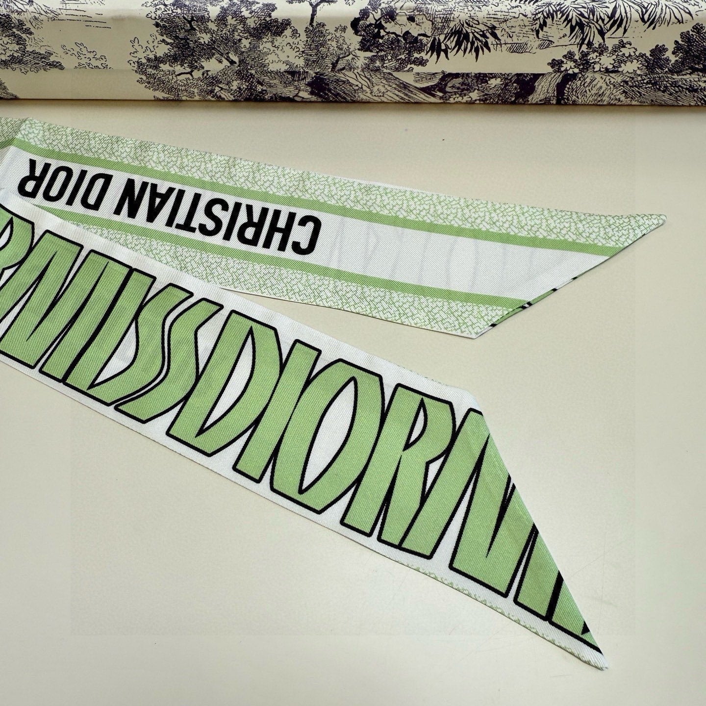 CC Twilly Mini Scarf 120cm White Black Mulberry Silk 953291