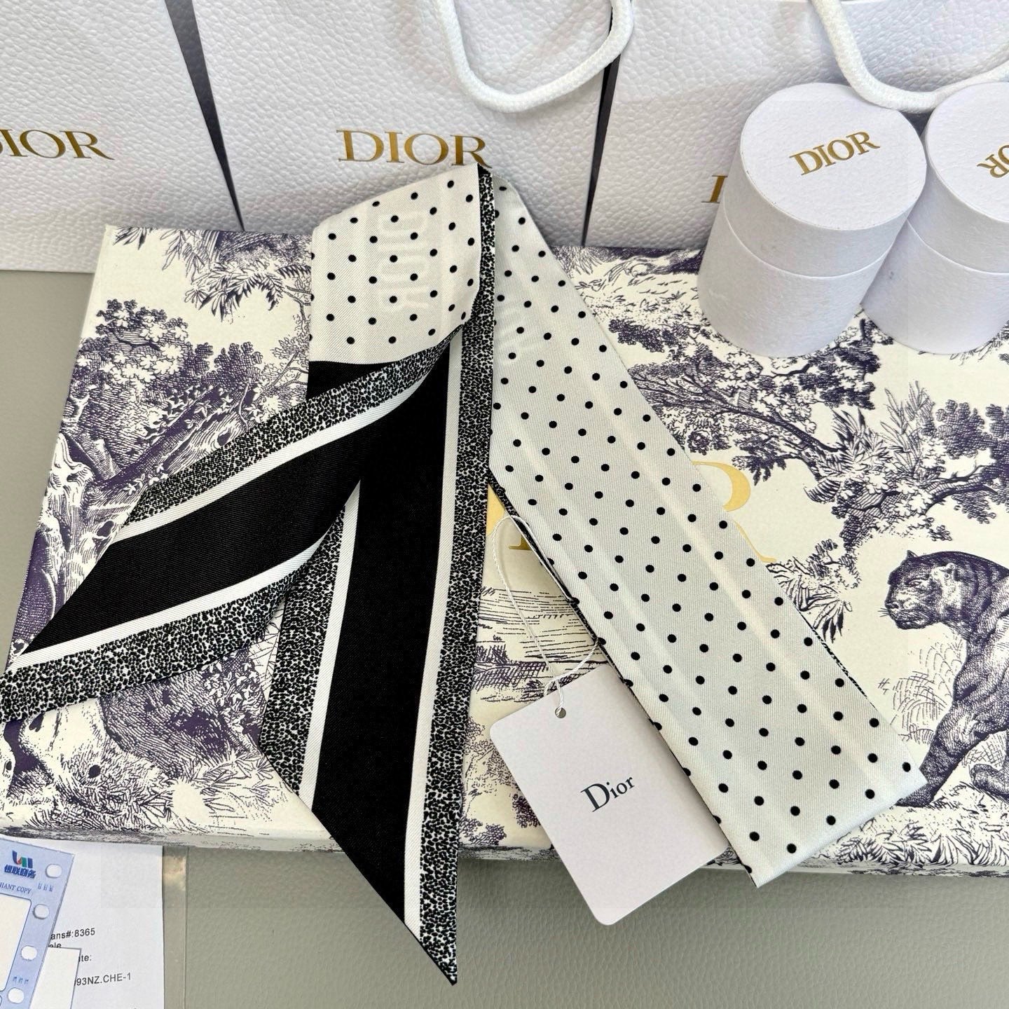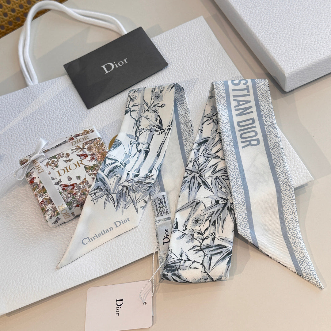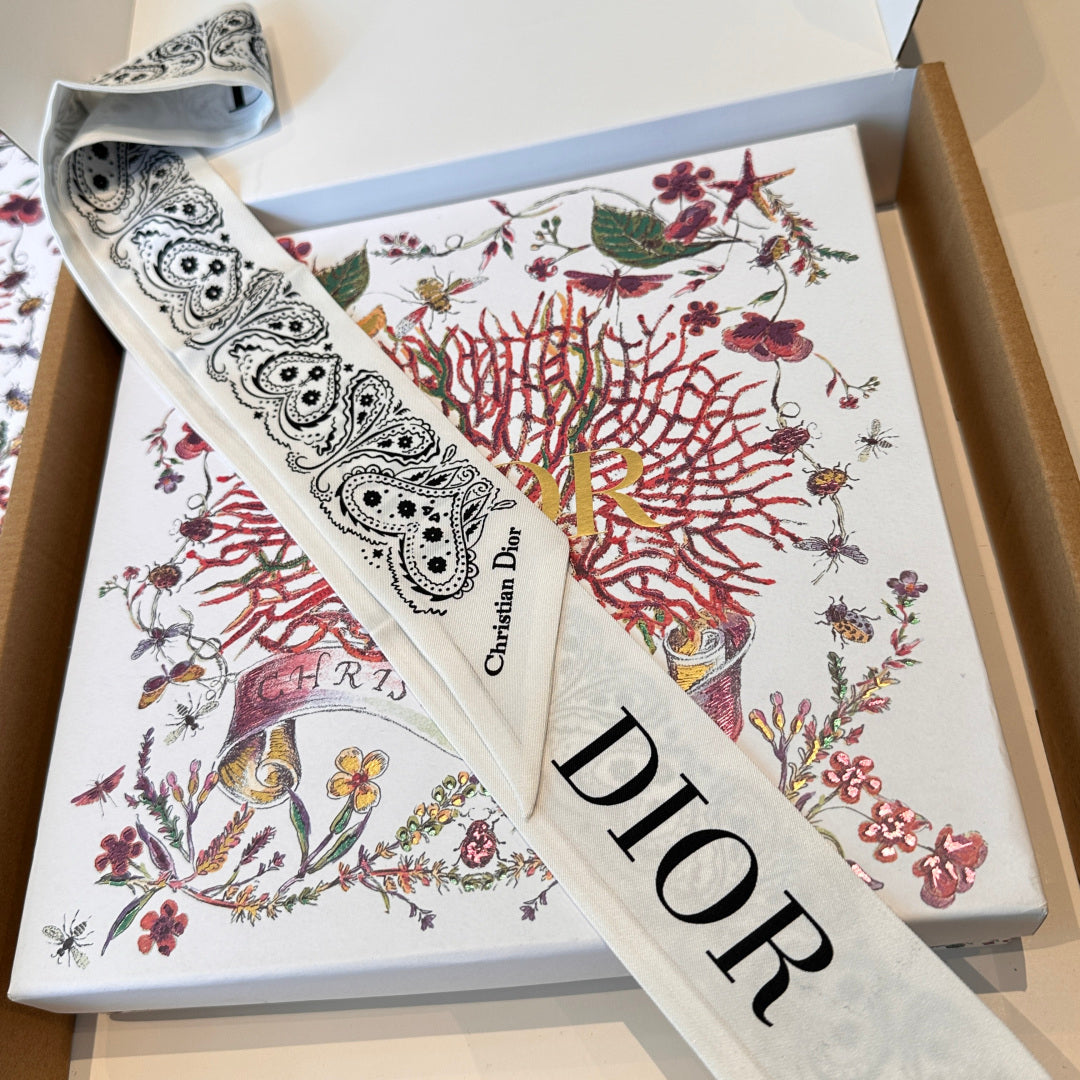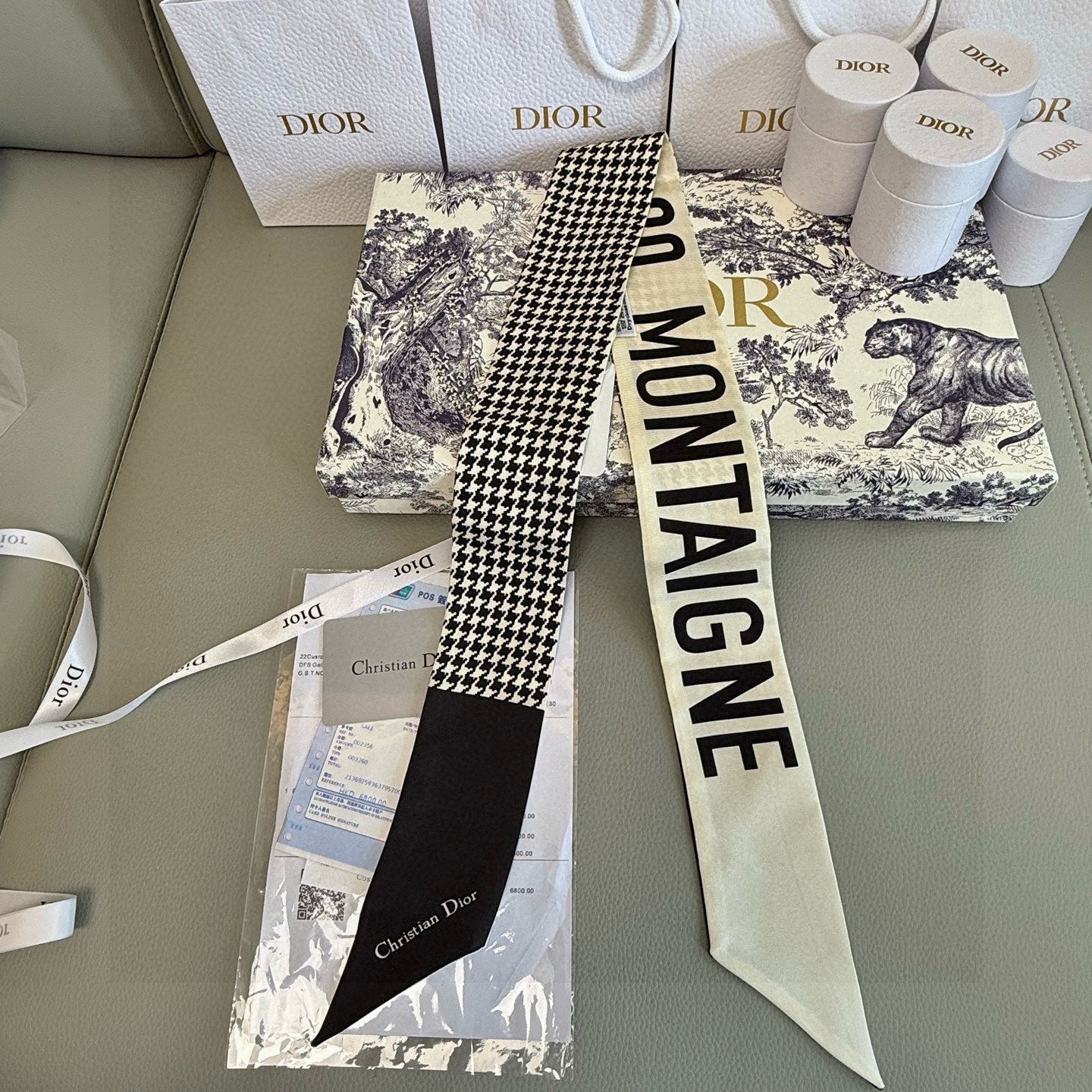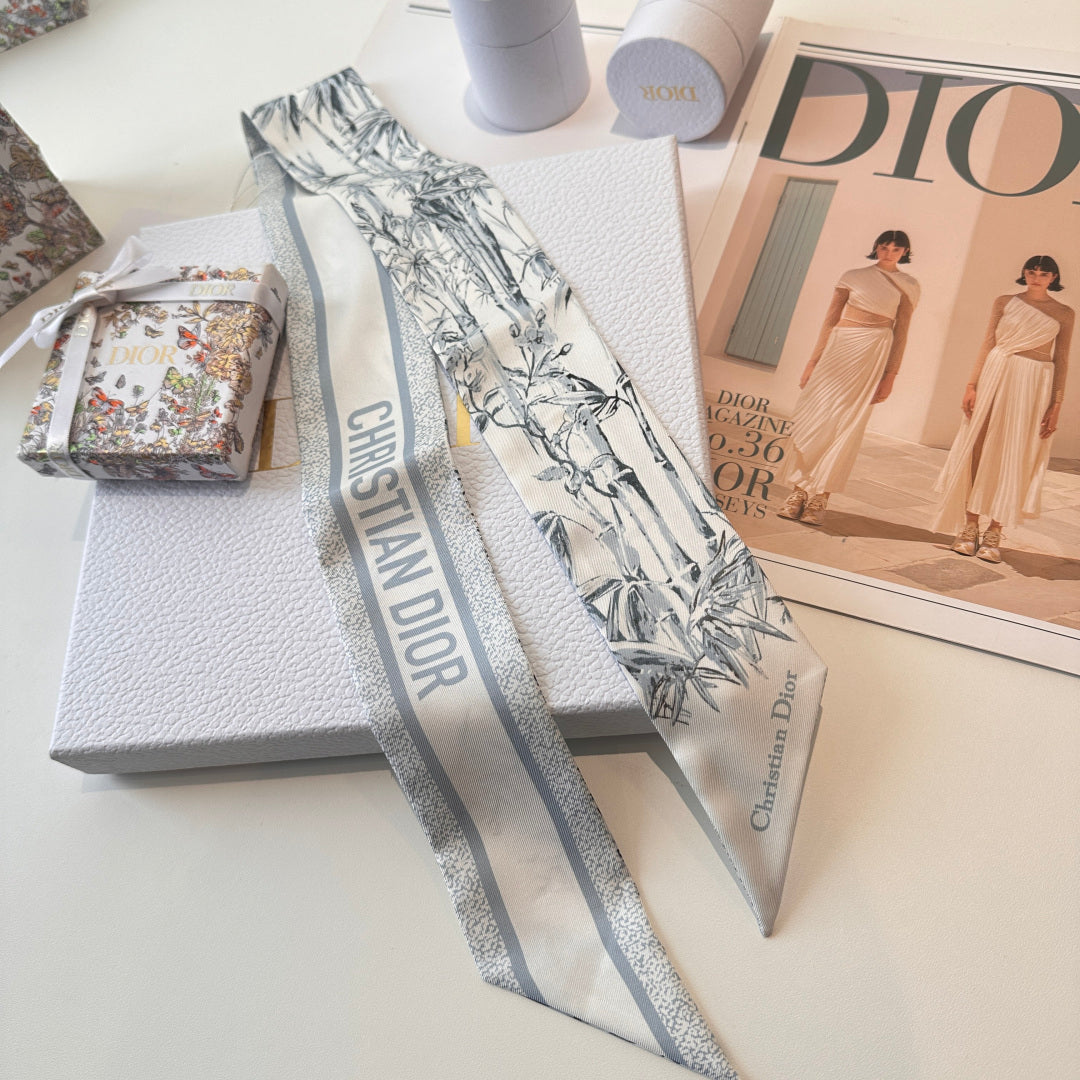 CC Twilly Mini Scarf 120cm White Black Mulberry Silk 953291