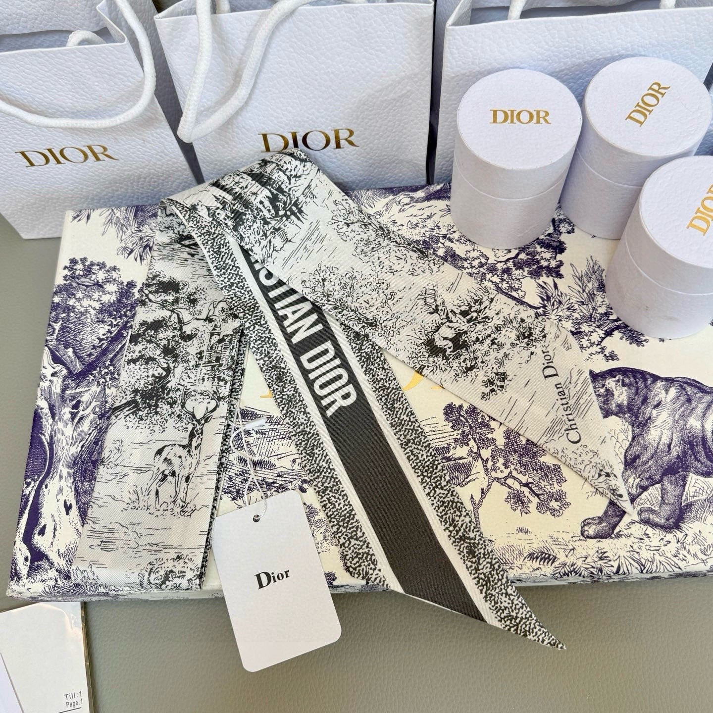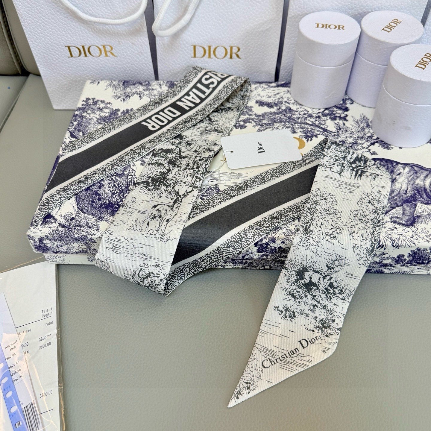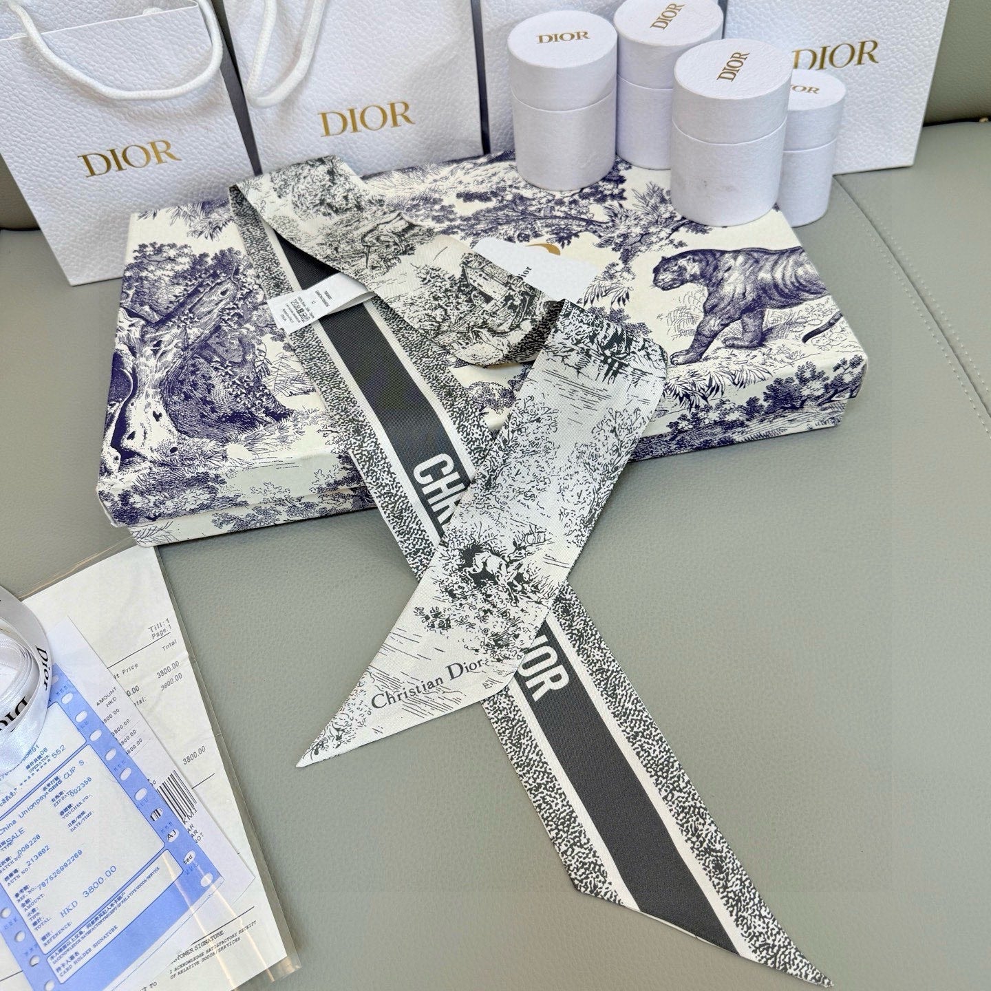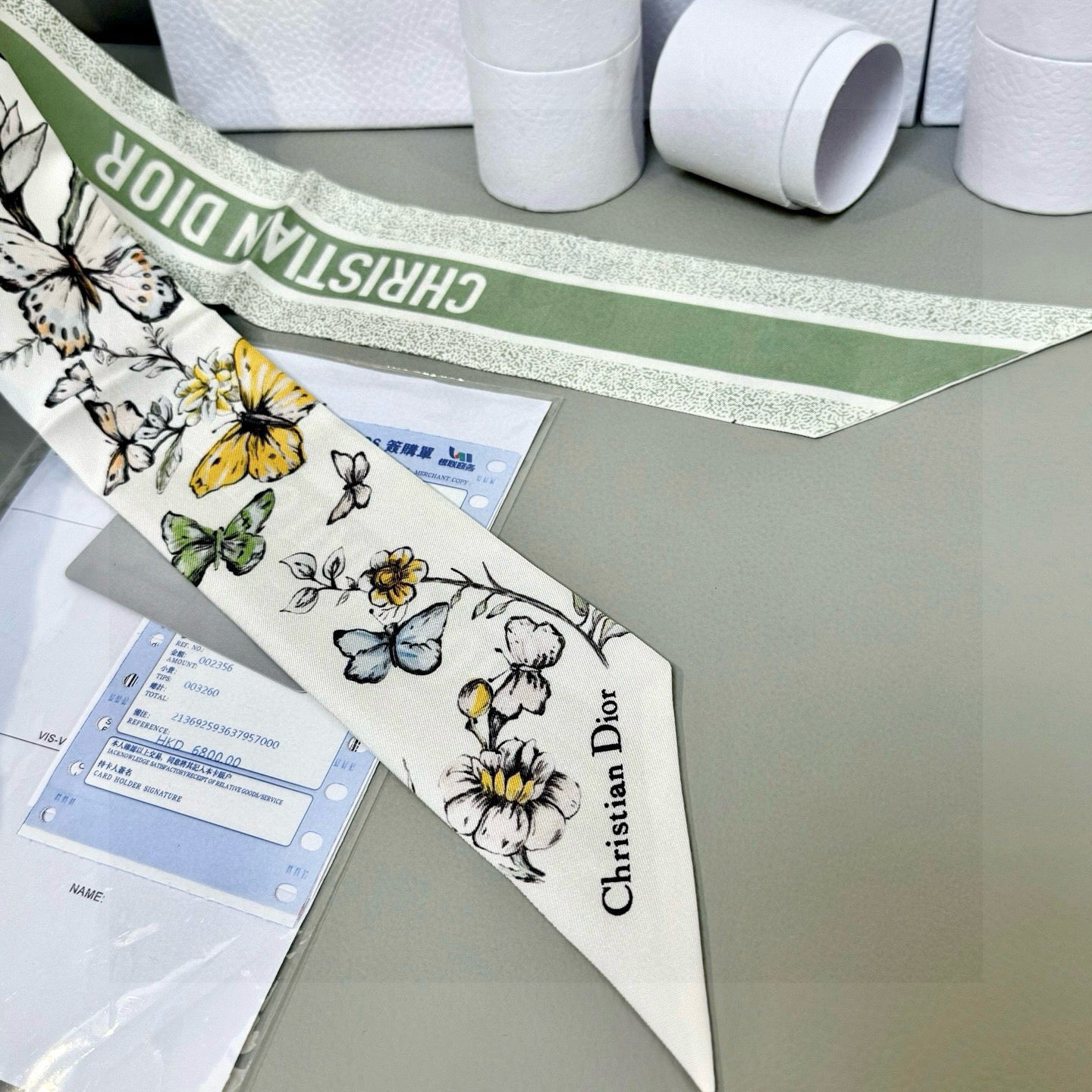 CC Twilly Mini Scarf 120cm White Black Mulberry Silk 953291