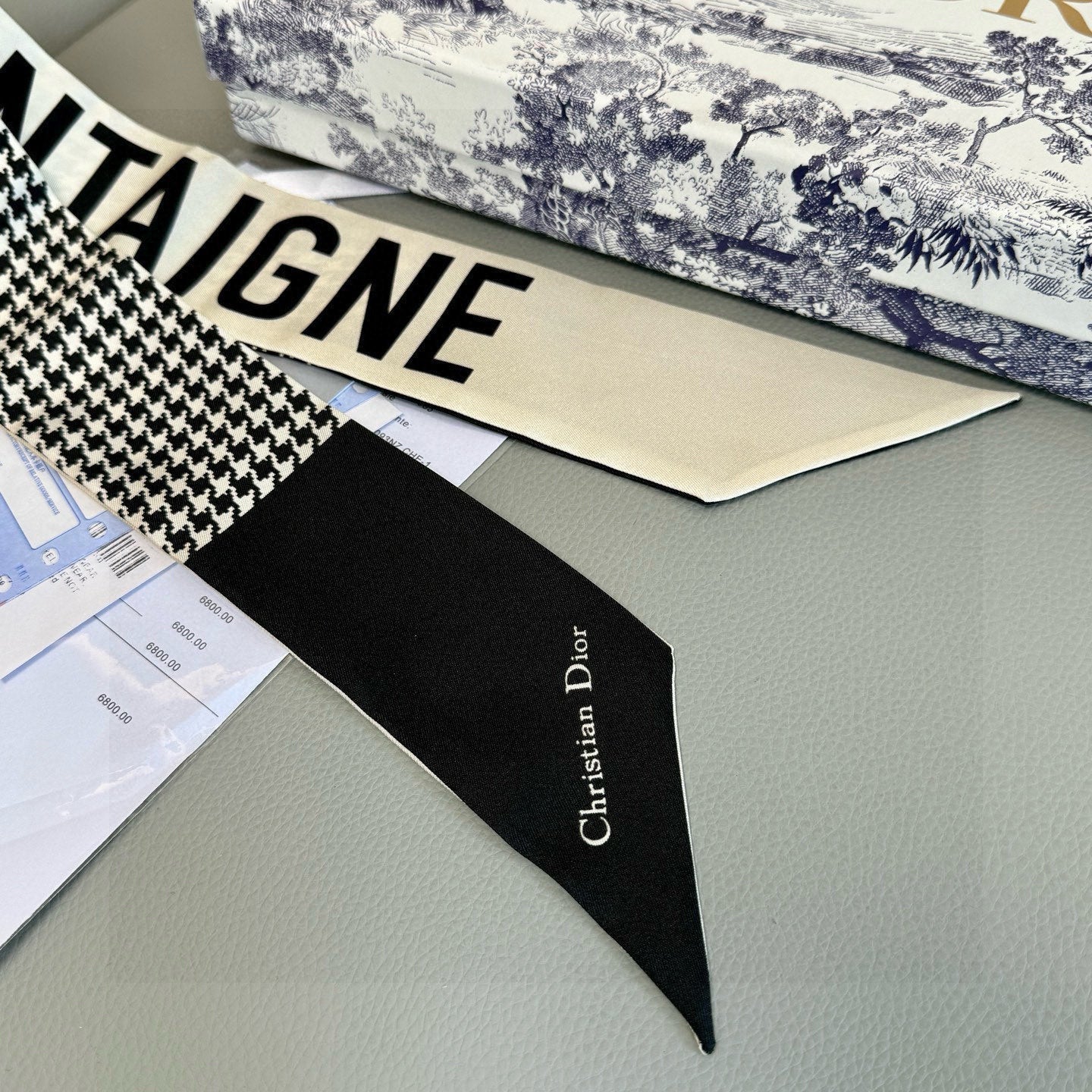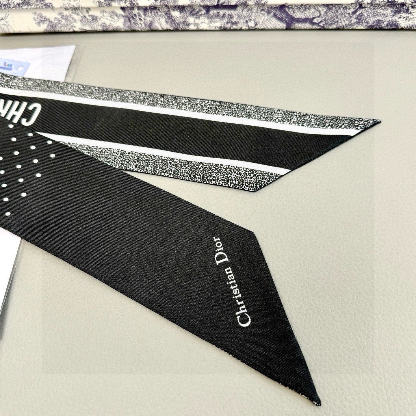 CC Twilly Mini Scarf 120cm Black White Mulberry Silk 949113