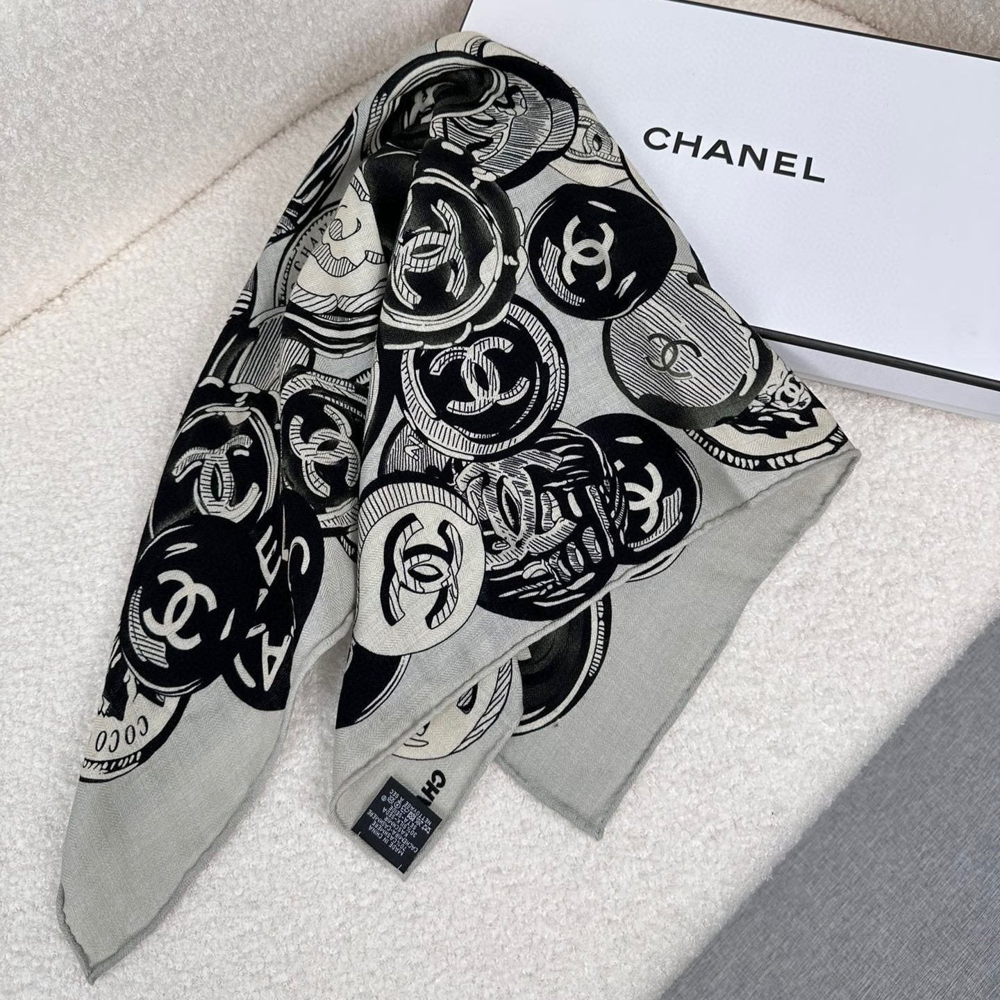 CC Square Scarf 90 CM In Black Mix White Cashmere And Silk 398258