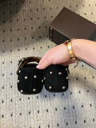 Alaia 25 Criss Cross With Stud Ballet Flats Black Suede Sheepskin 303693