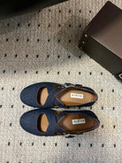 Alaia 25 Criss Cross With Stud Ballet Flats Denim Blue Sheepskin 303695