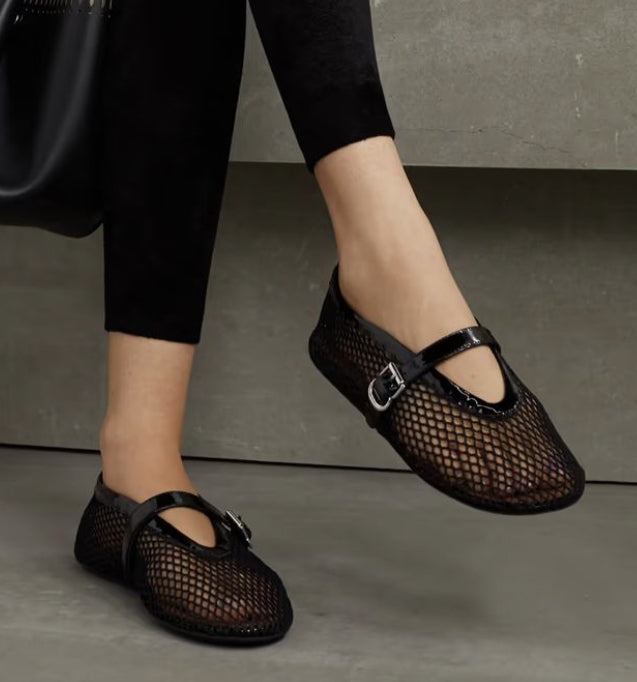 Alaia 25 Criss Cross With Stud Ballet Flats Silver Sheepskin 303696