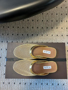 Alaia 25 Fishnet Flat Mules Gold Lampskin 303680
