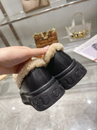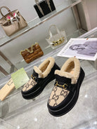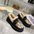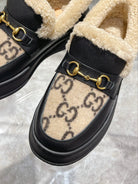 GG Snow Boots Black Beige Calfskin Suede Wool 576246