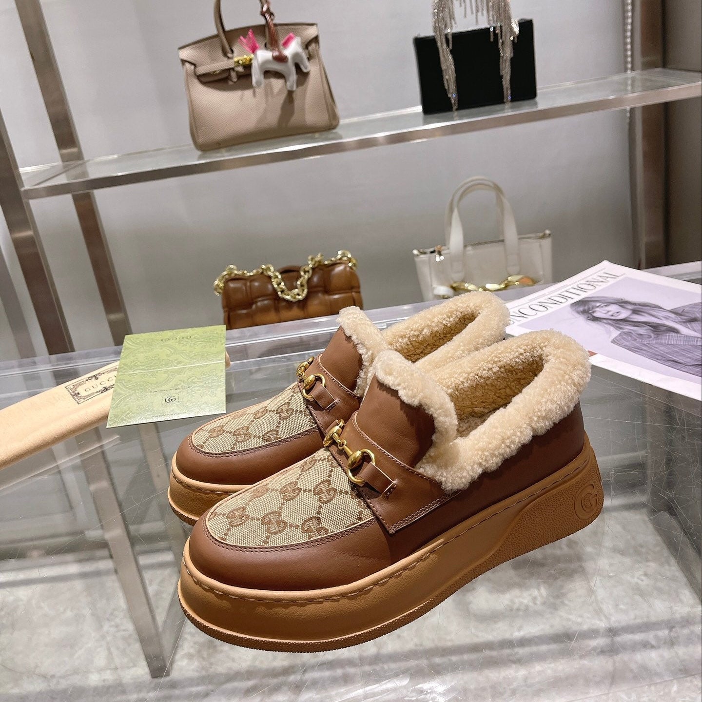 • Material: Calfskin Denim Wool