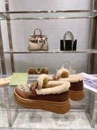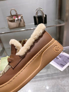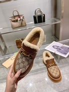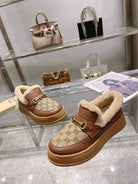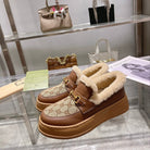 GG Snow Boots Brown Calfskin Denim Wool 576249