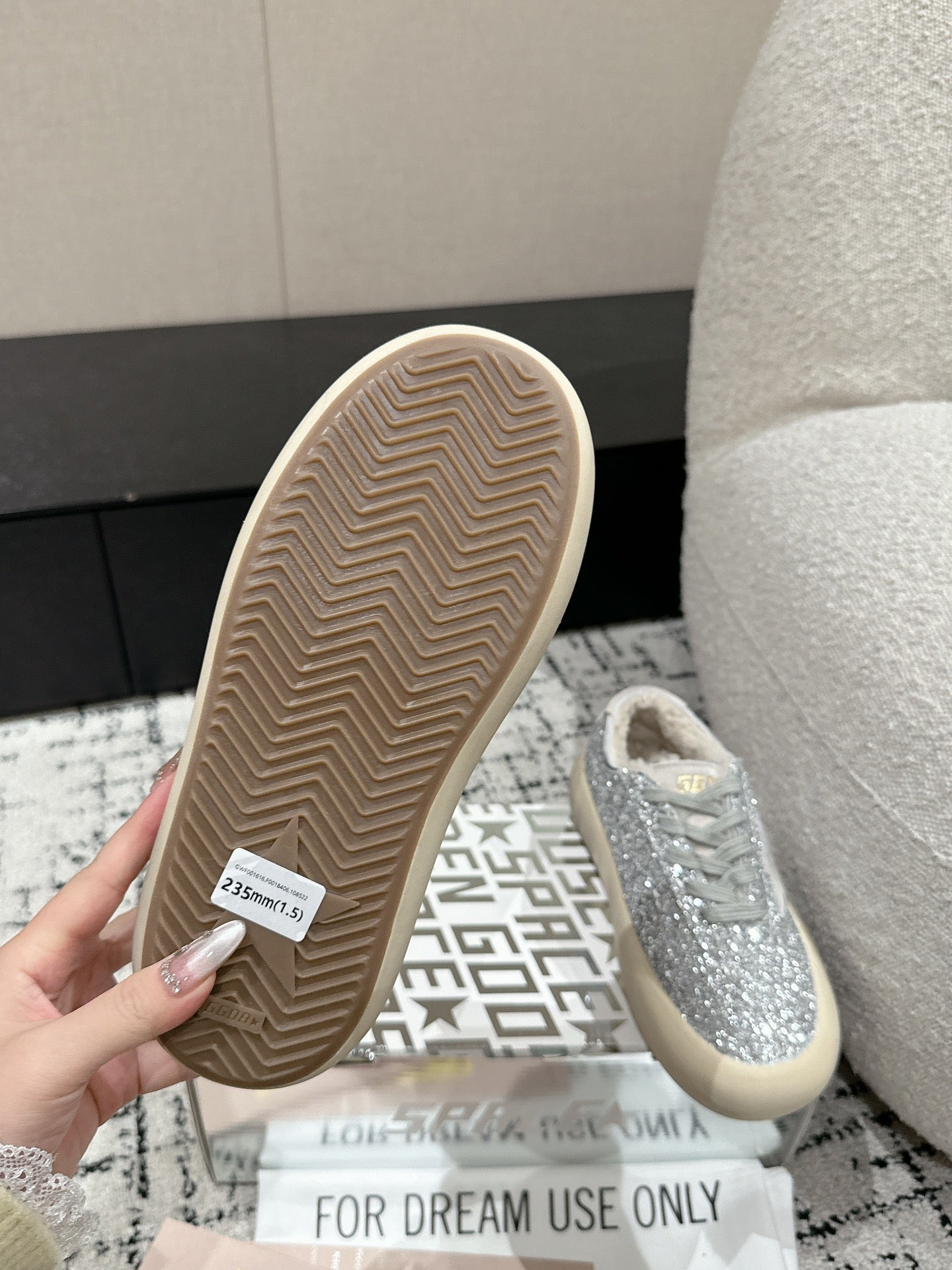 Golden Goose 2025 Space-Star Sabot Sneaker Silver Beige Glitter Wool 141174