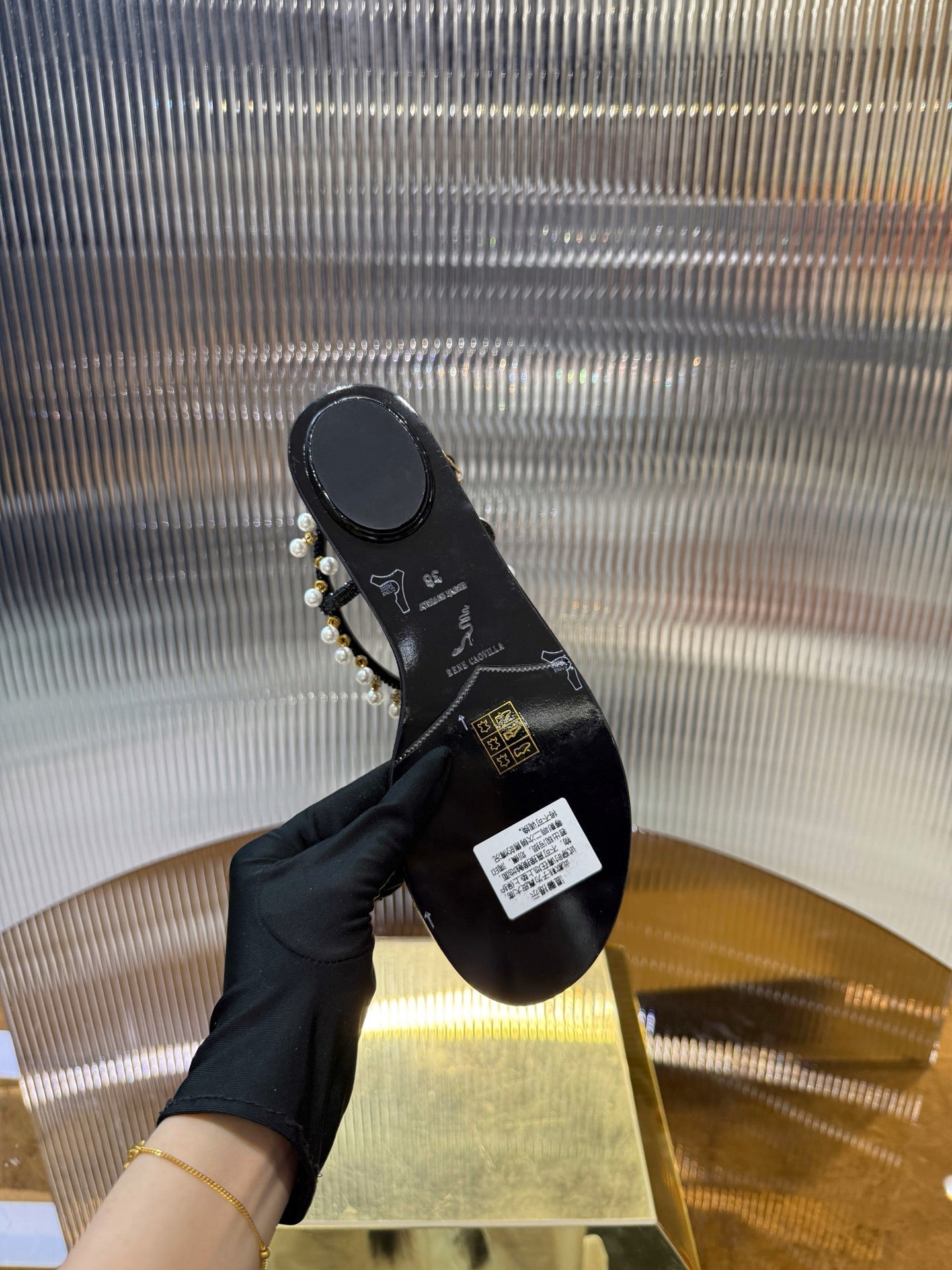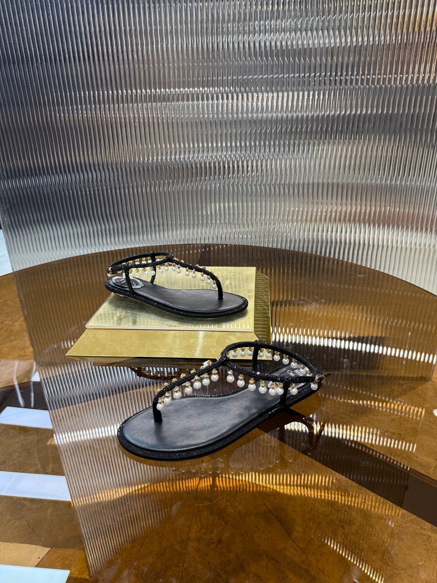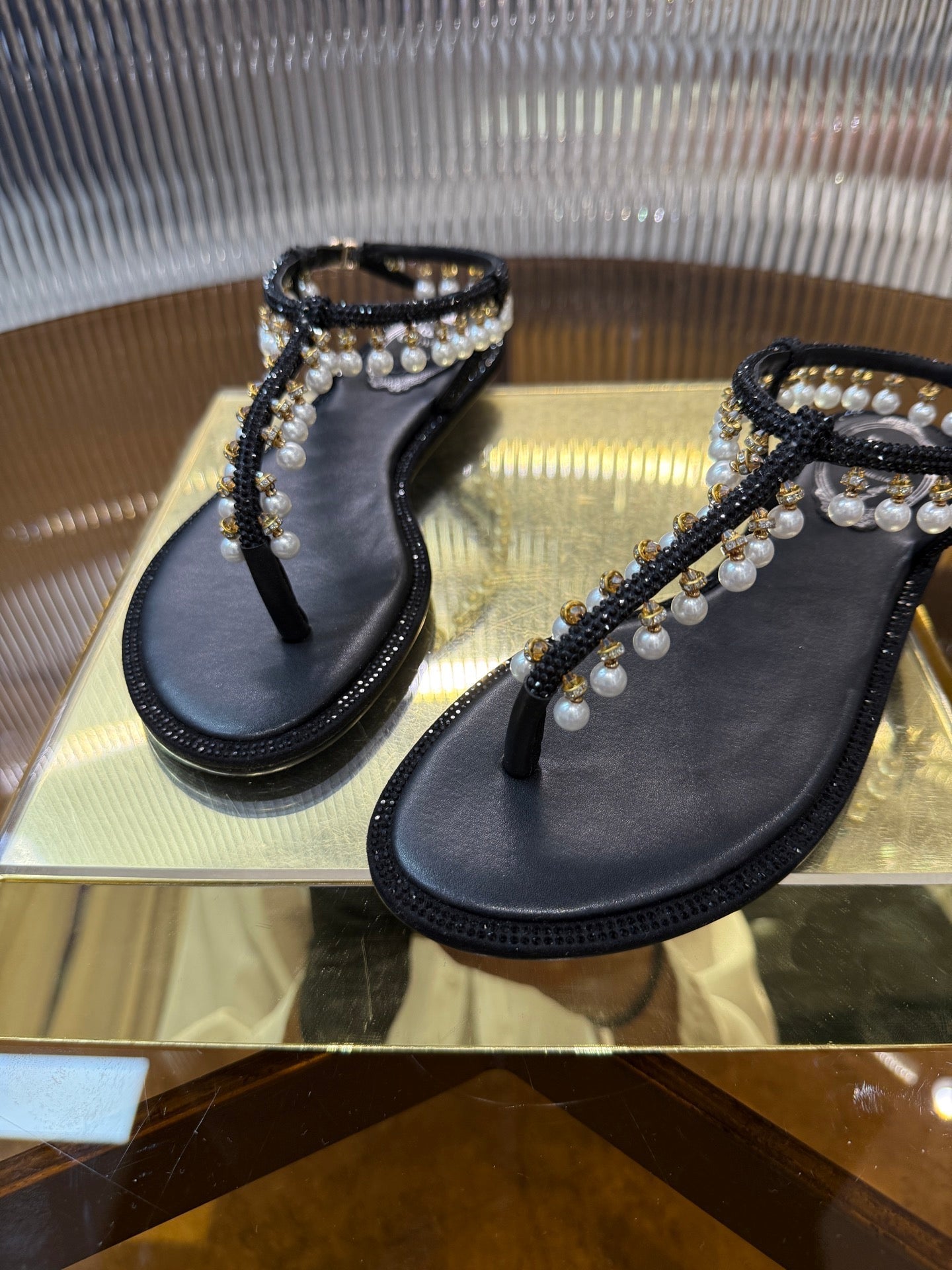 RC 25C Thong Diamond Flat Sandals Black Silk Rhinestone 275773