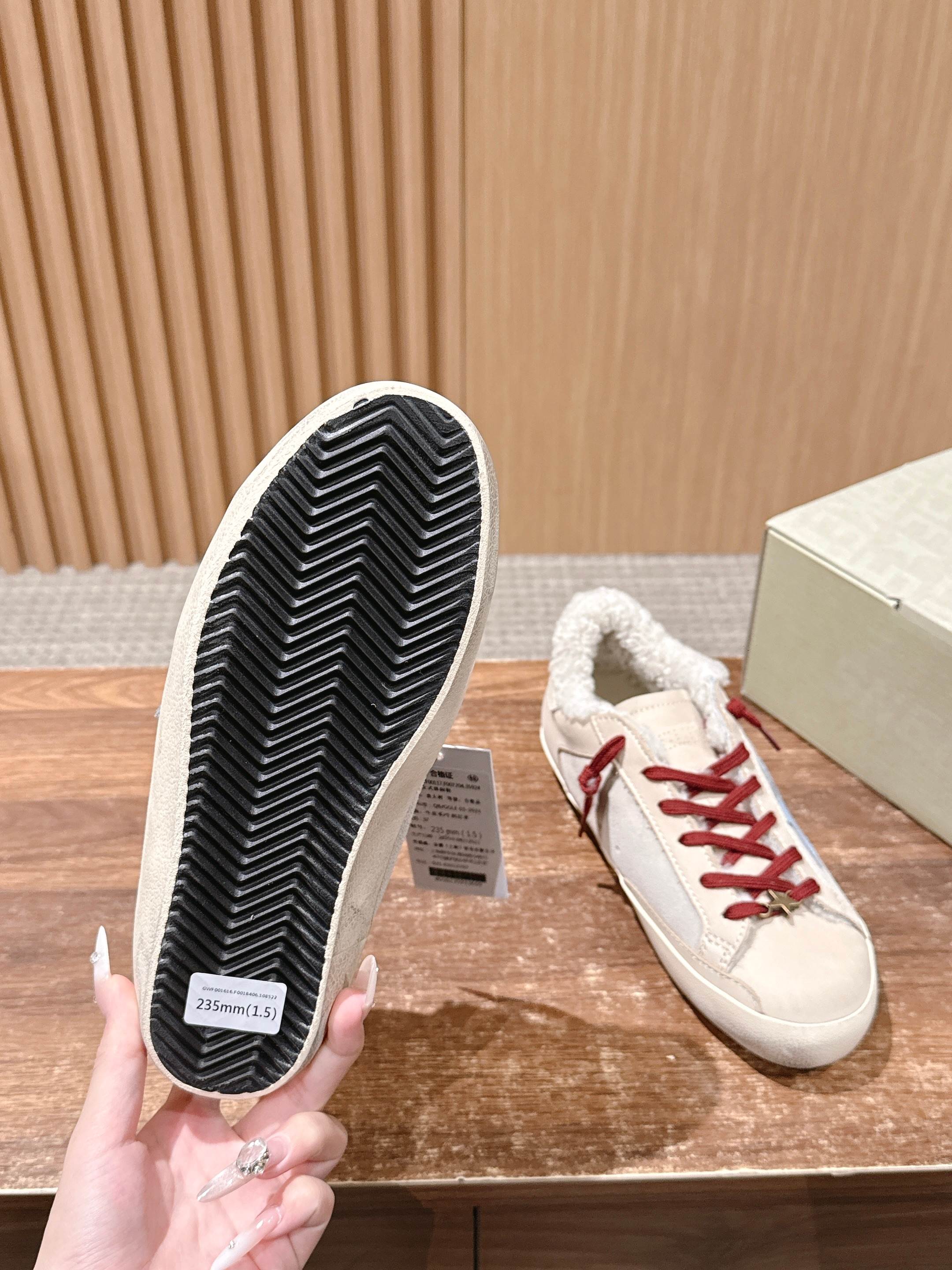 Golden Goose 2025 Wool-Lined Dirty Sneaker Ivory mix Red Cowhide 491638