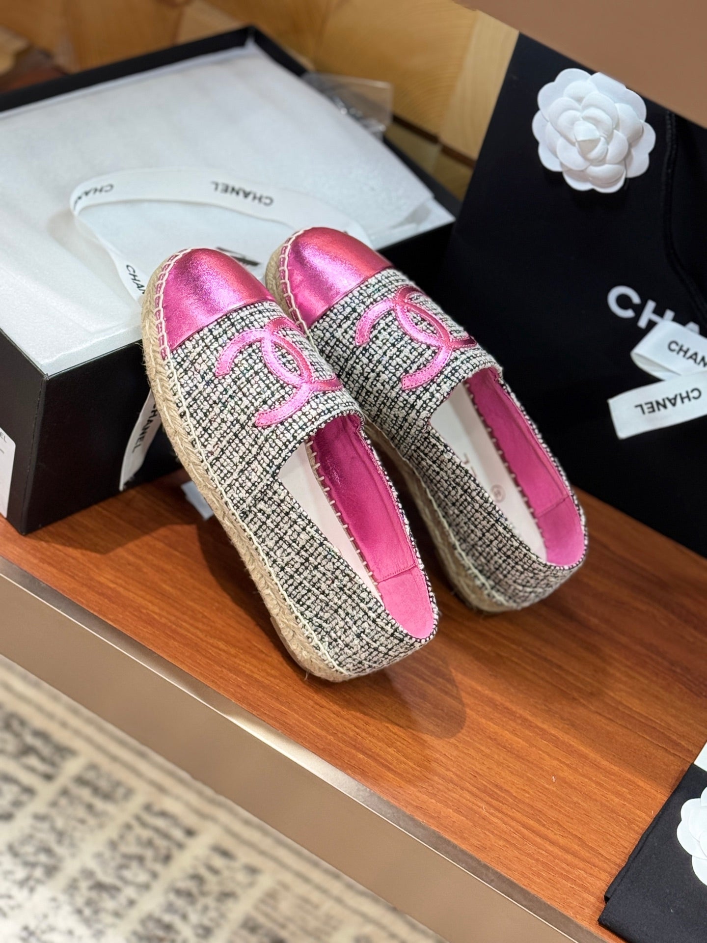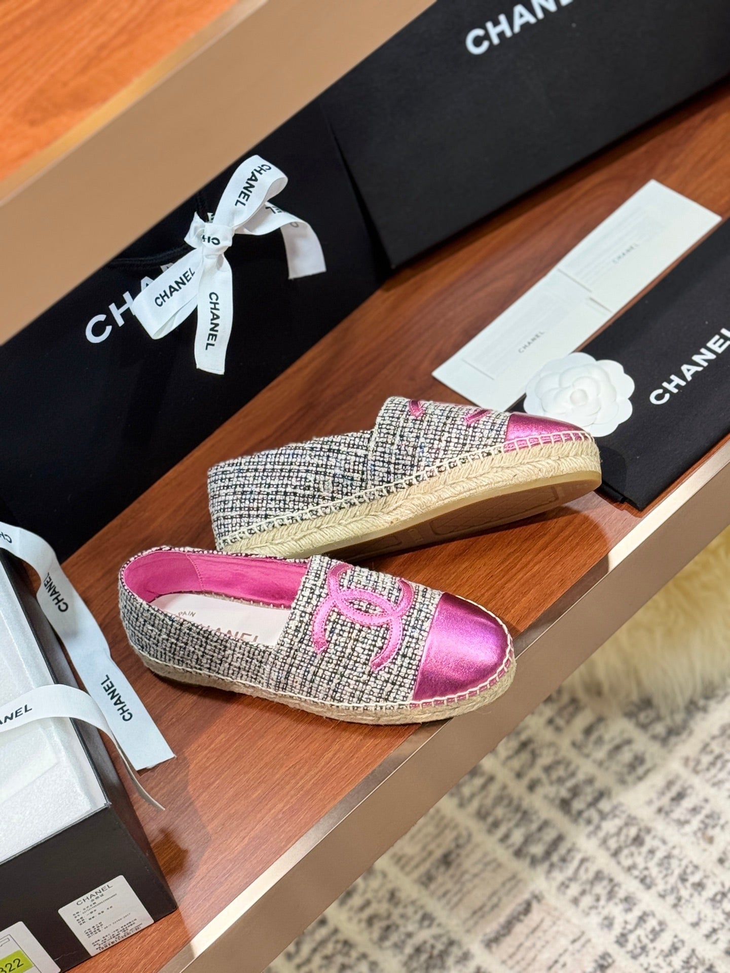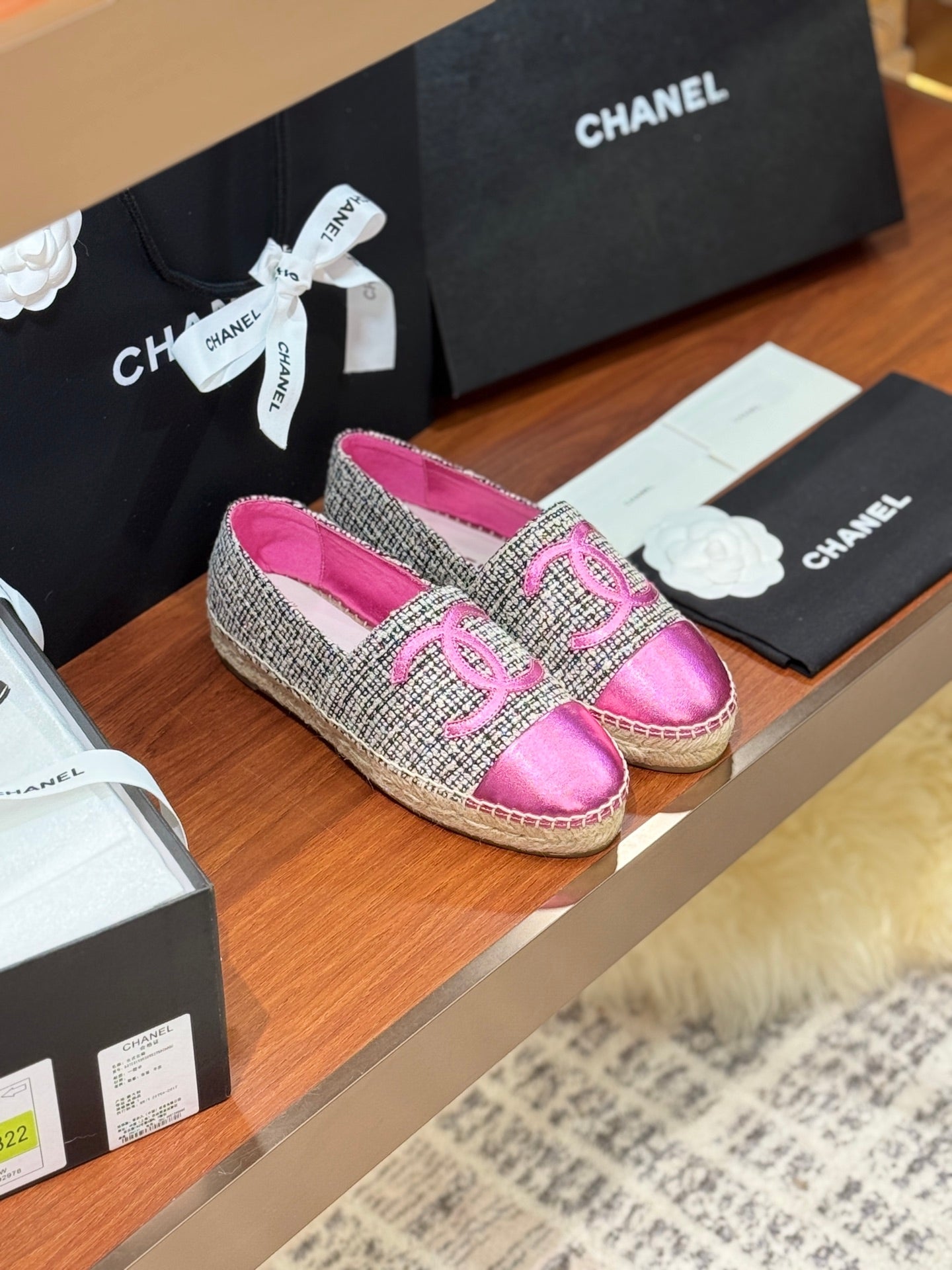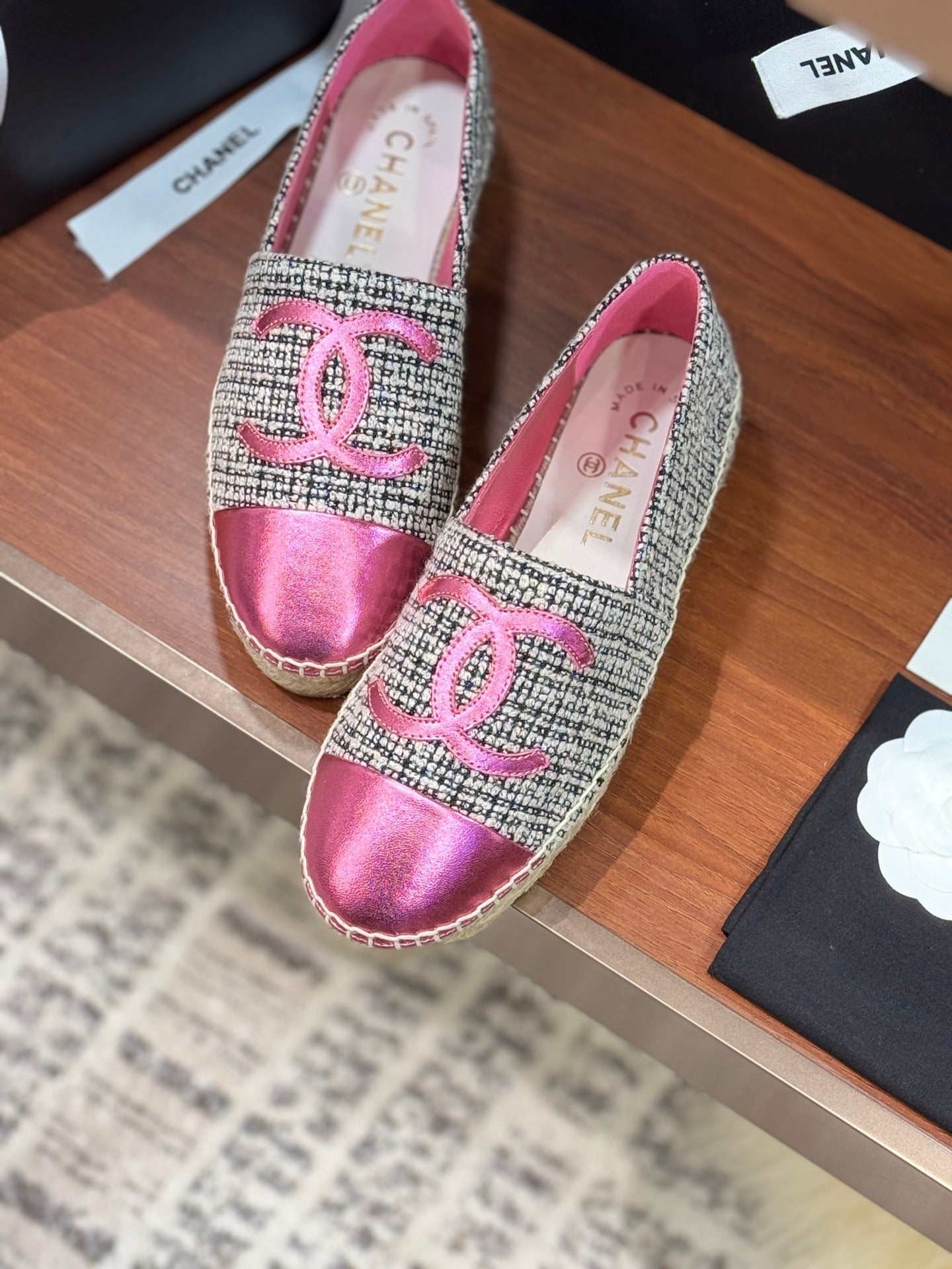 CC 25 Espadrilles Logo Pink Fabric Sheepskin 310157
