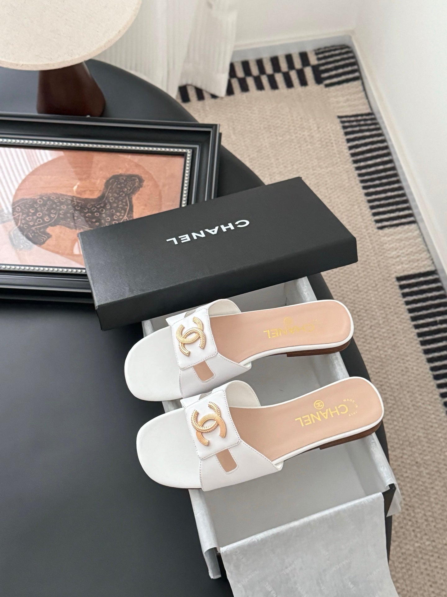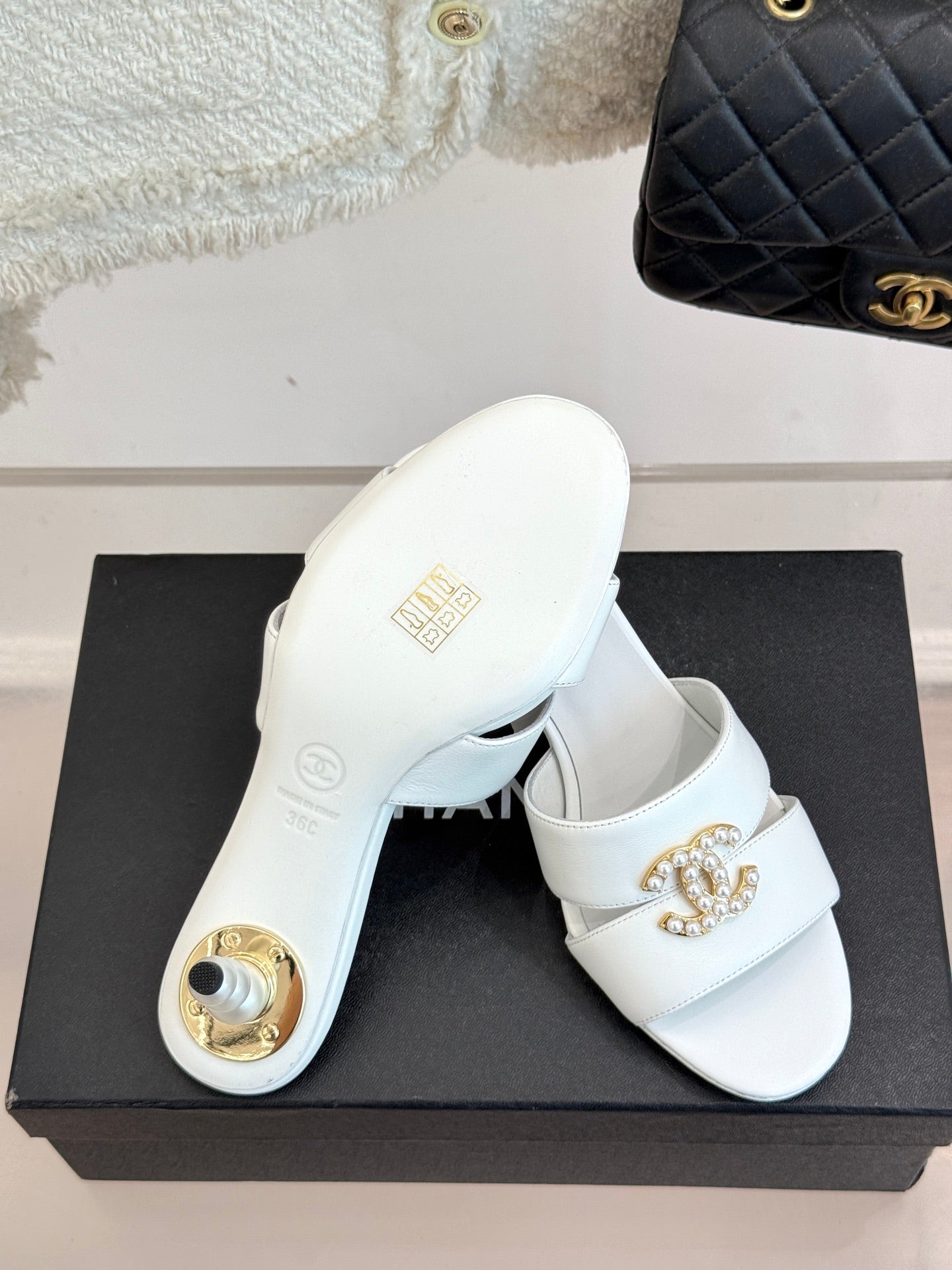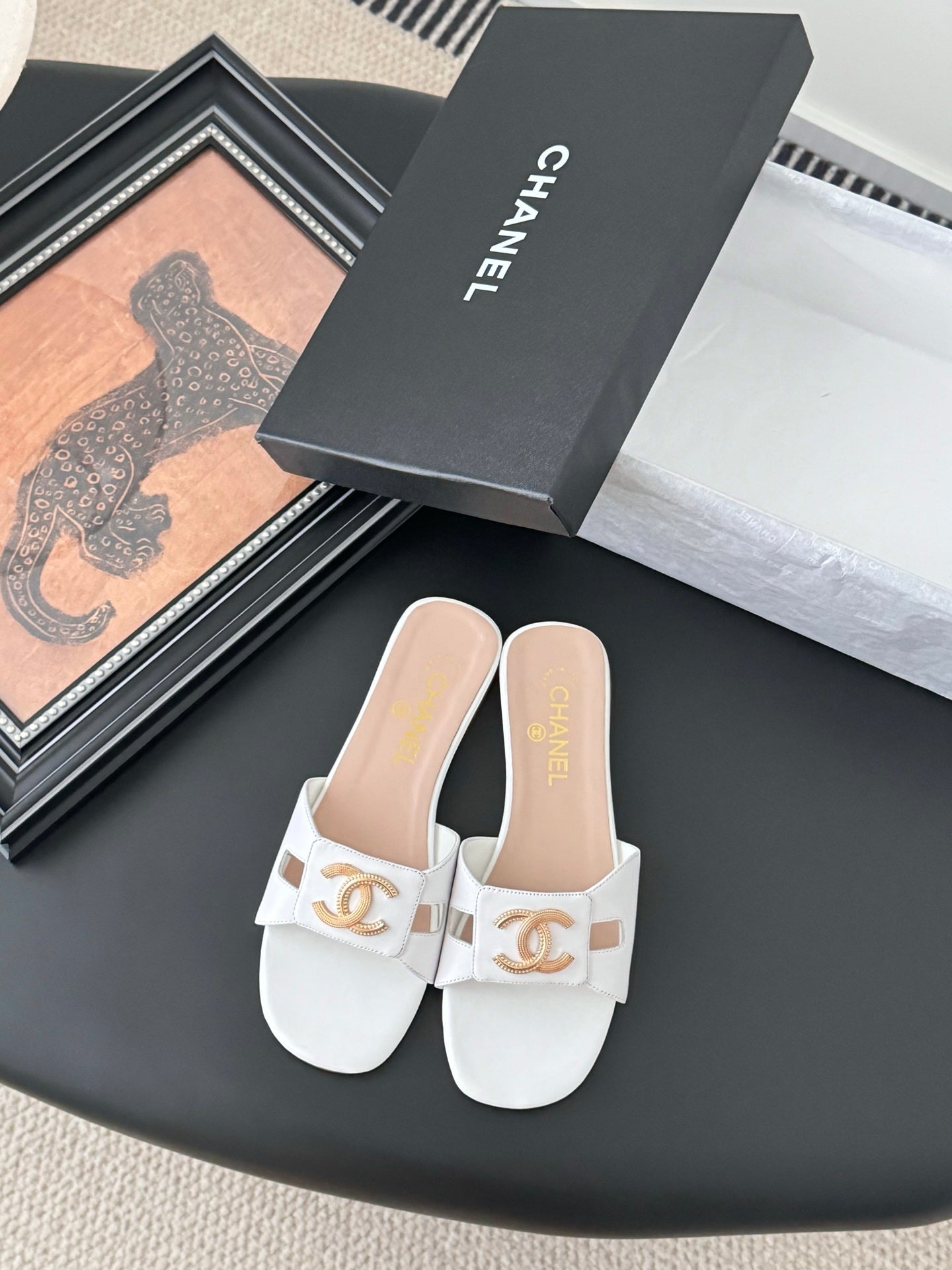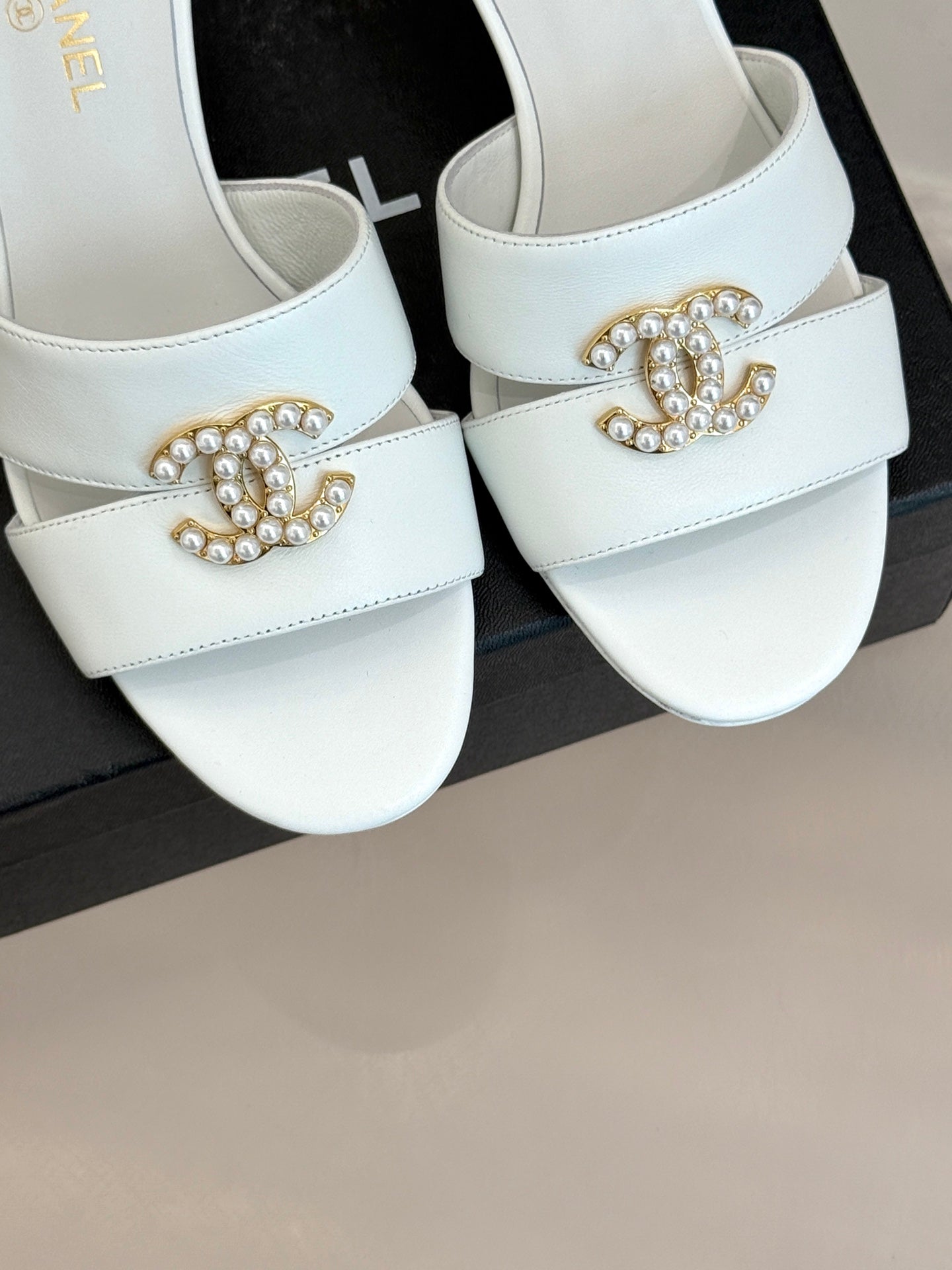 CC 25 Slippers White Cowhide 305284