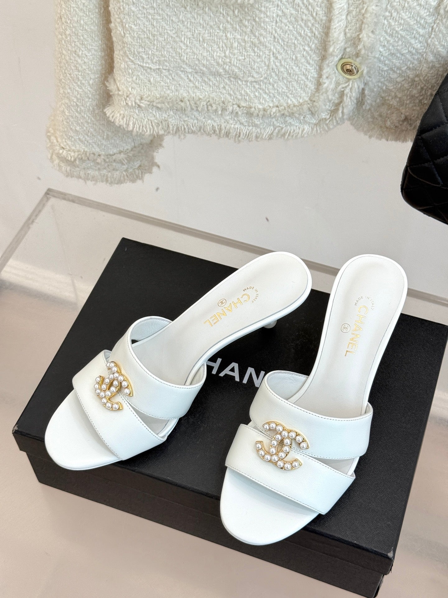 CC 25 Mules White Silk Lambskin 308778