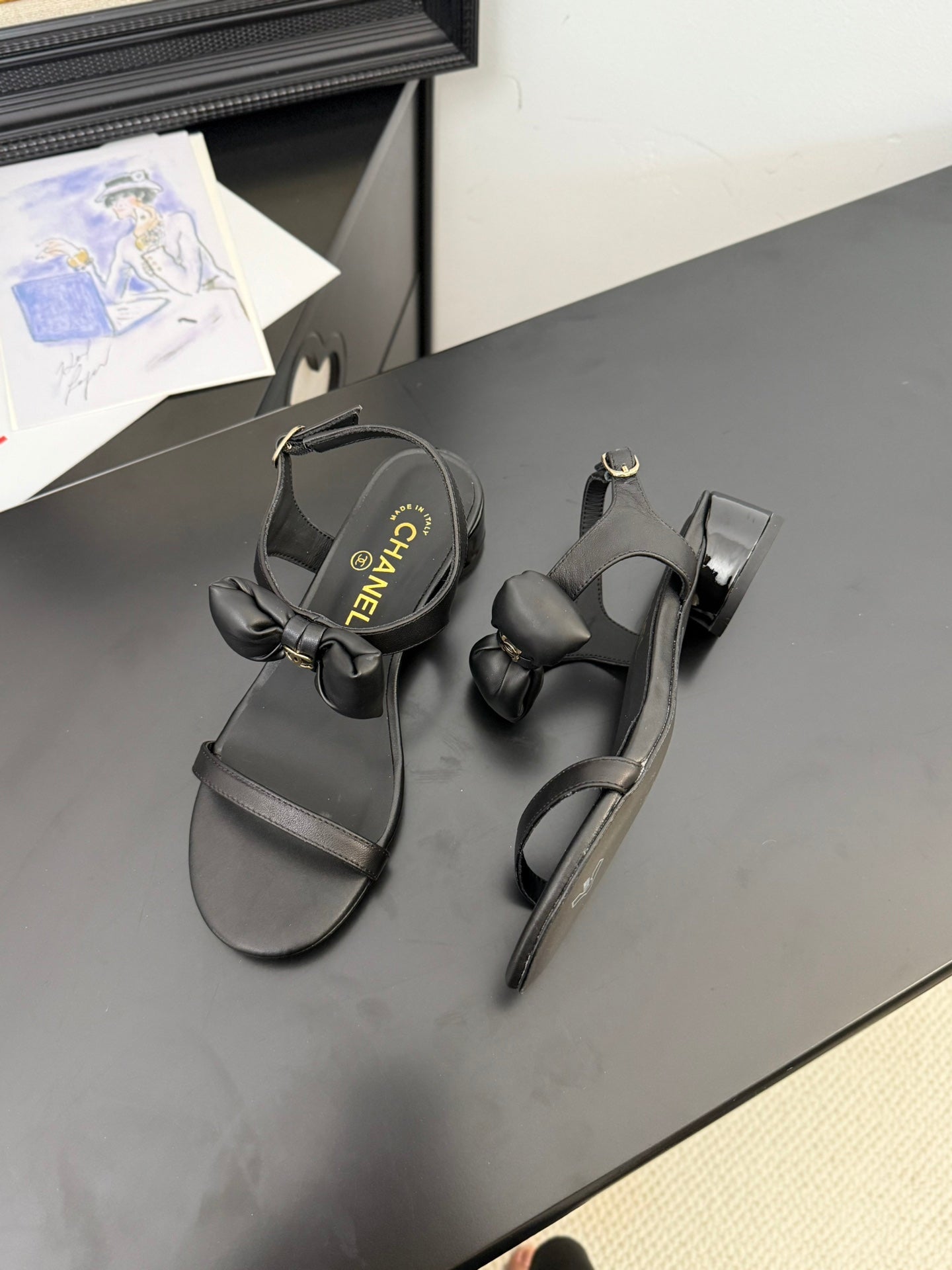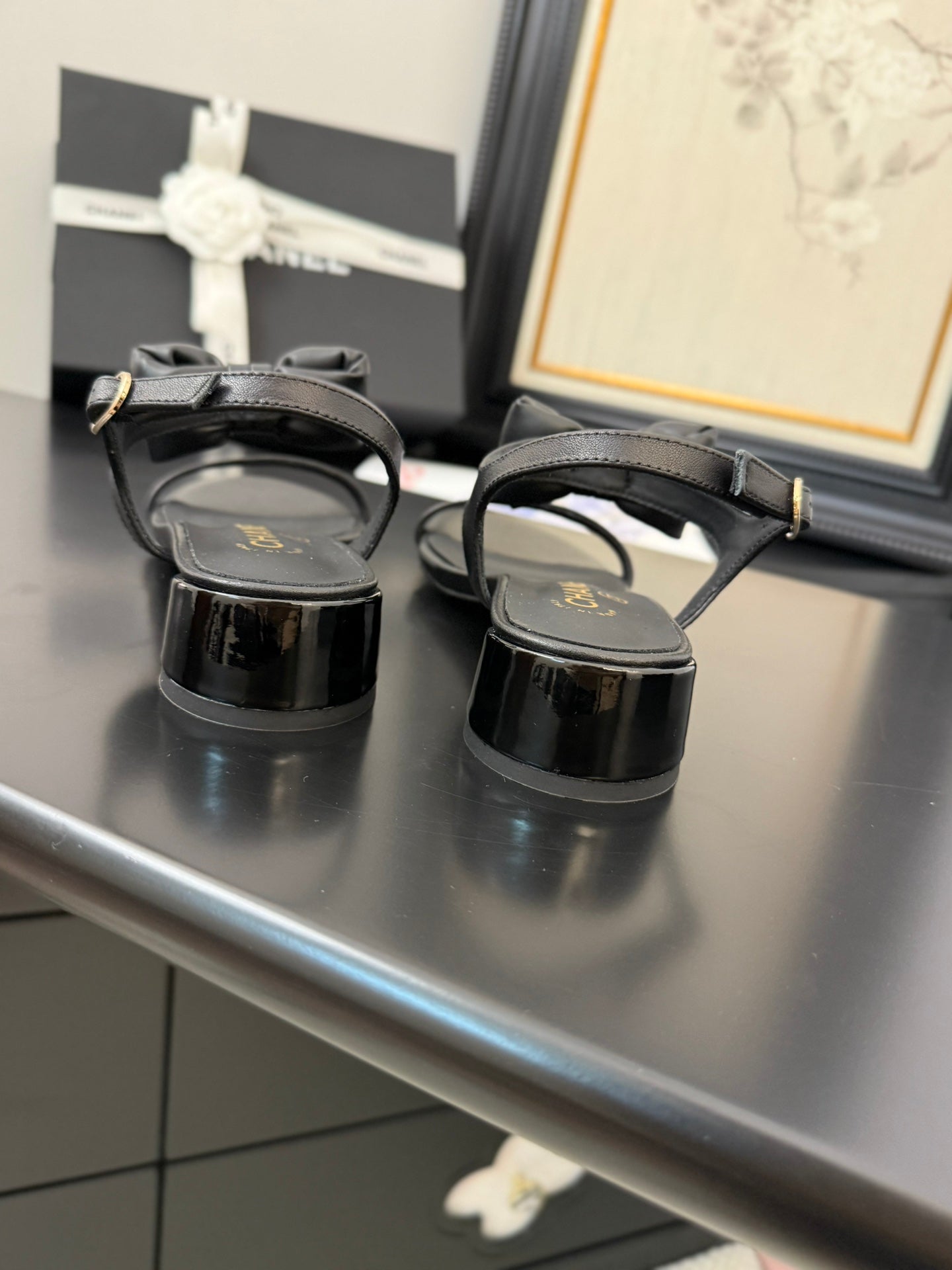 CC 25 Bow Attached Sandals Black Sheepskin 233419