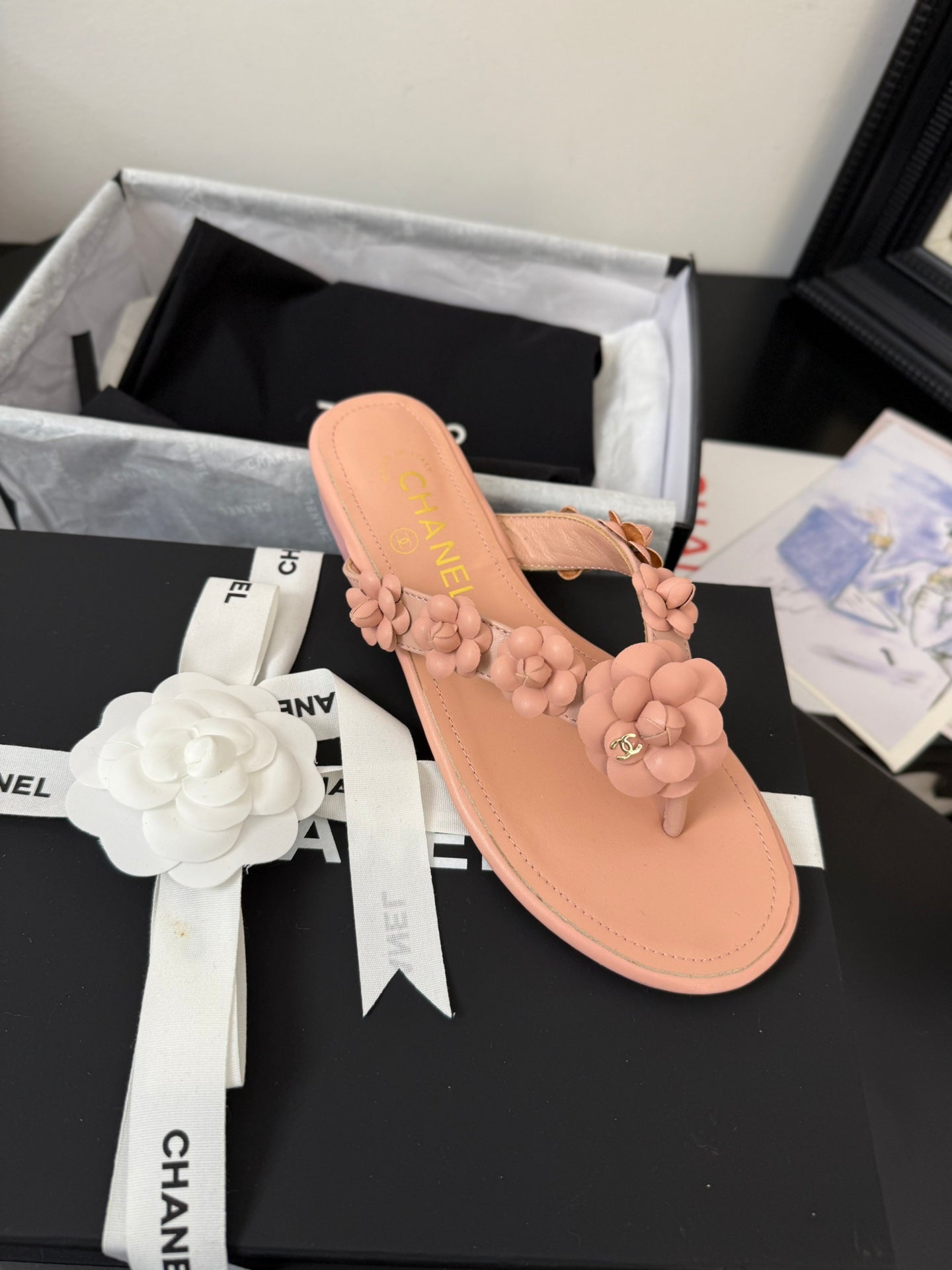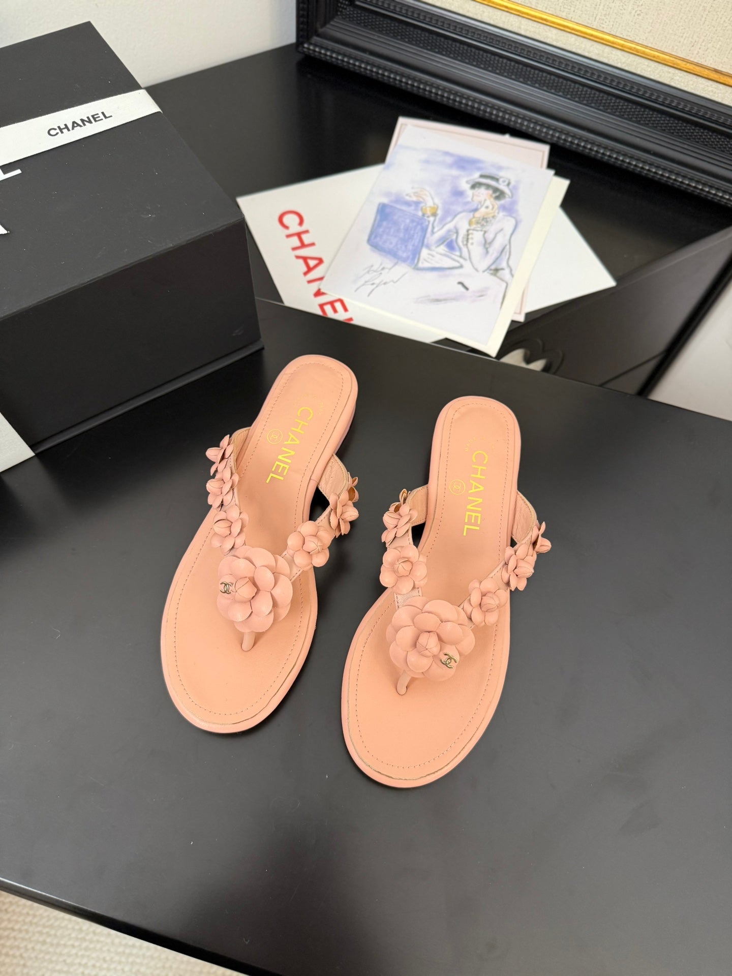 CC 25 Flower Thong Slippers Pink Cowhide 233418
