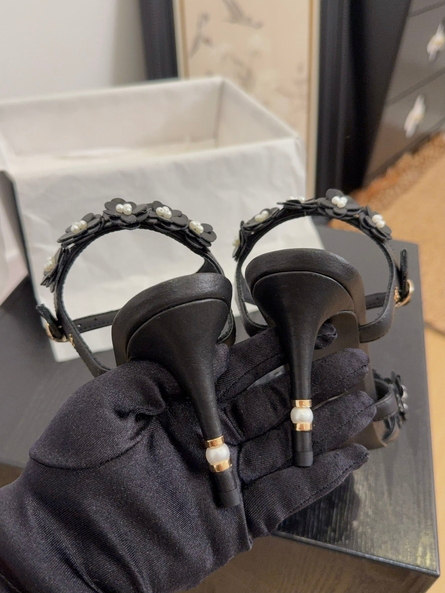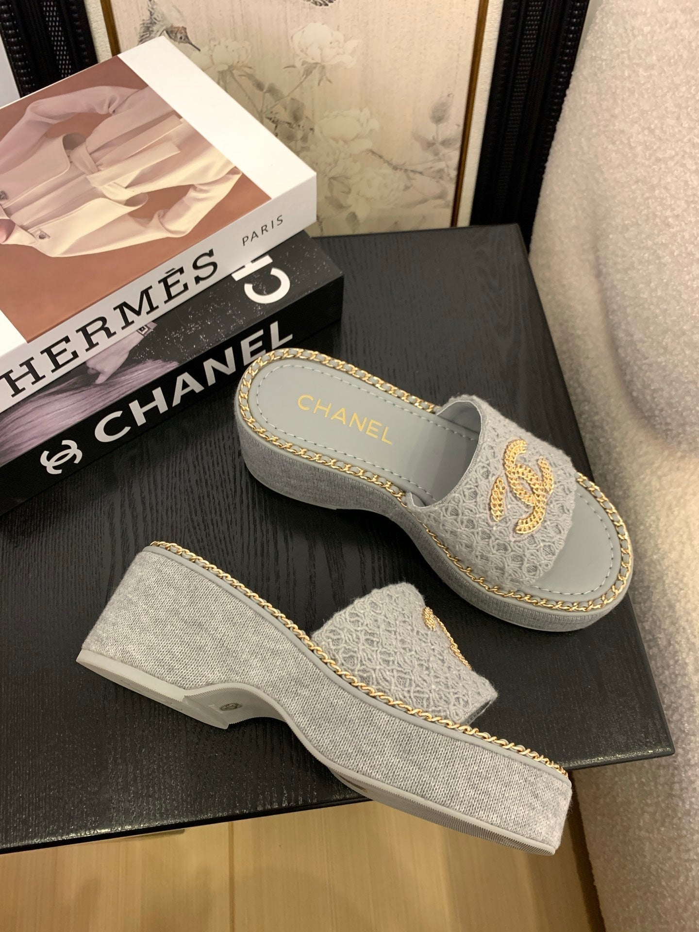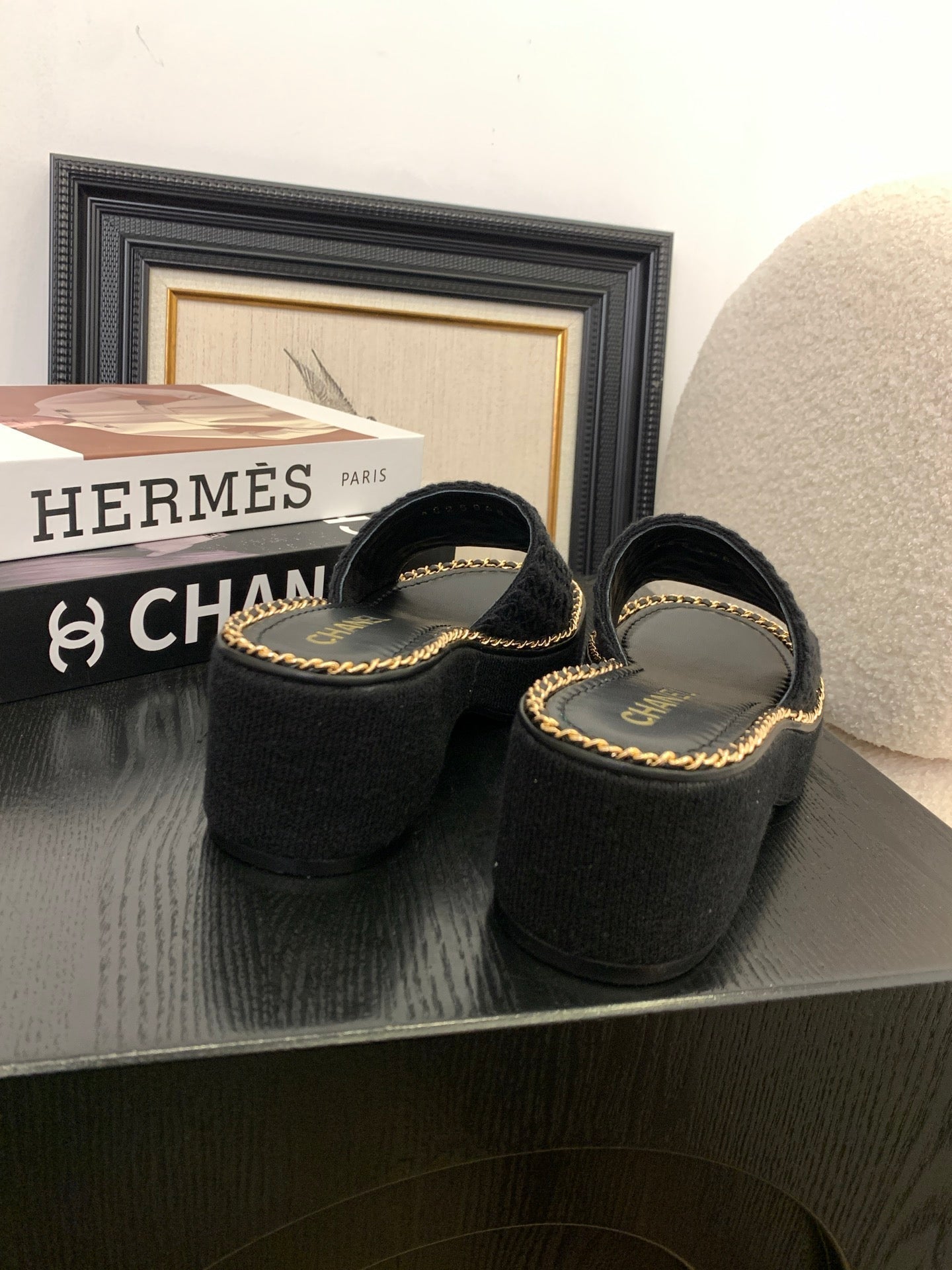 CC 25 Platform Slippers Black Lambskin 310383