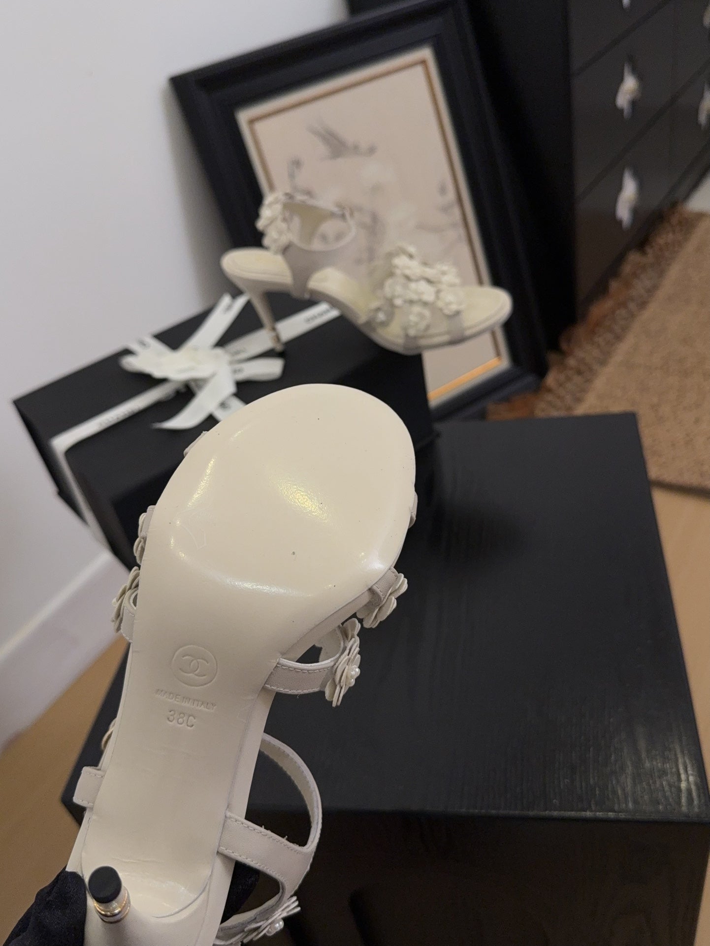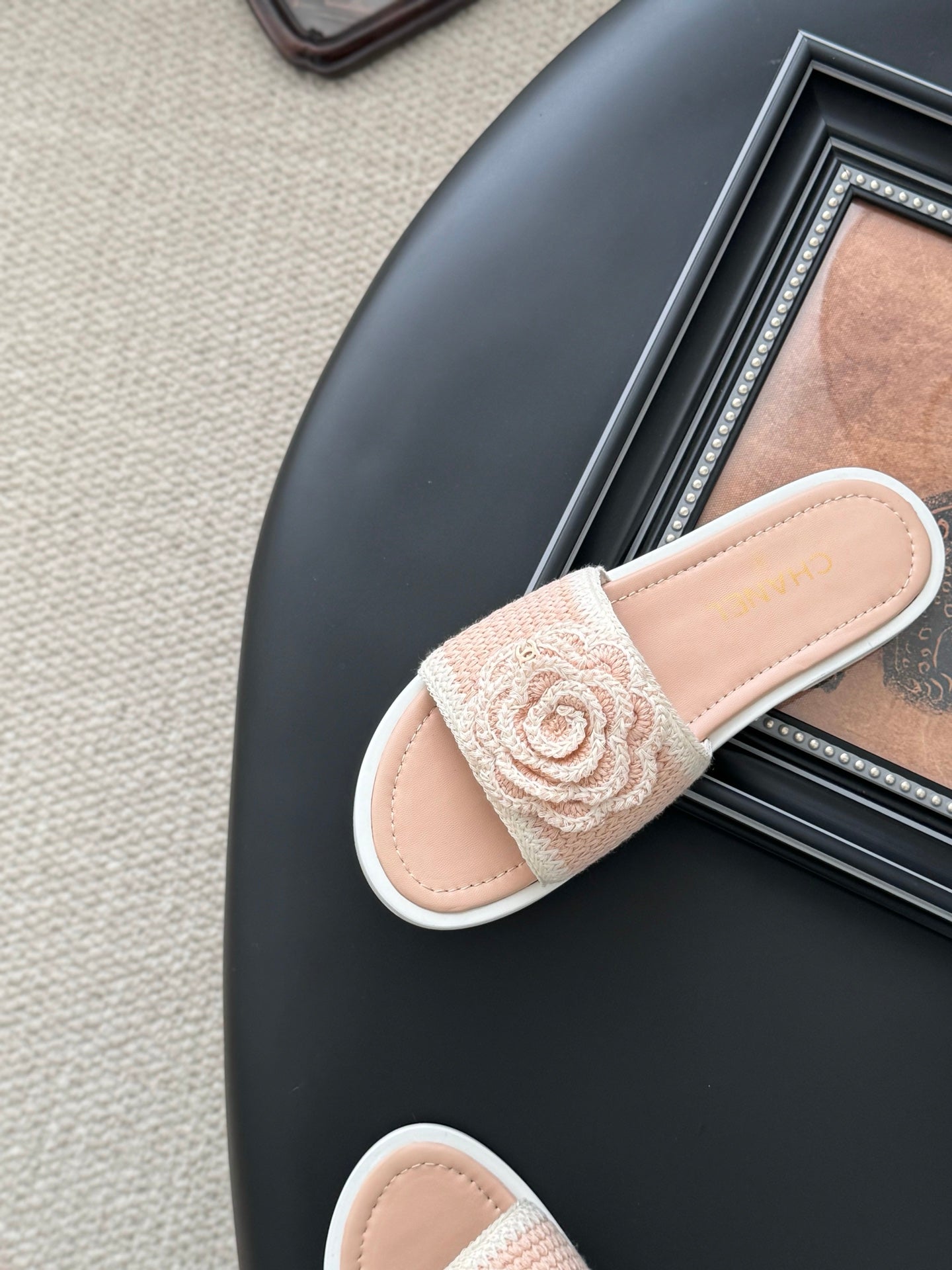 CC 25 Flower Thong Slippers Beige Cowhide 233417