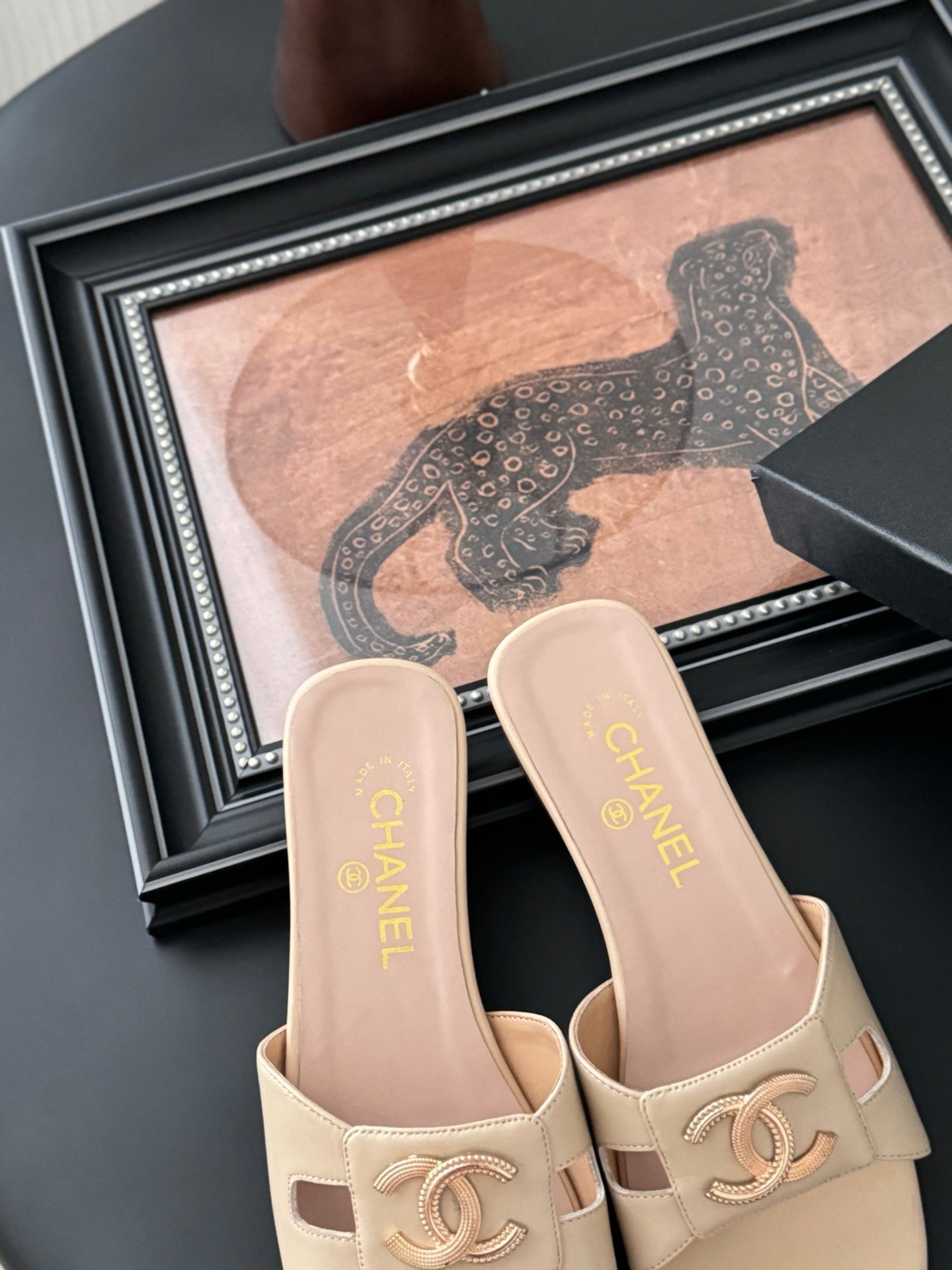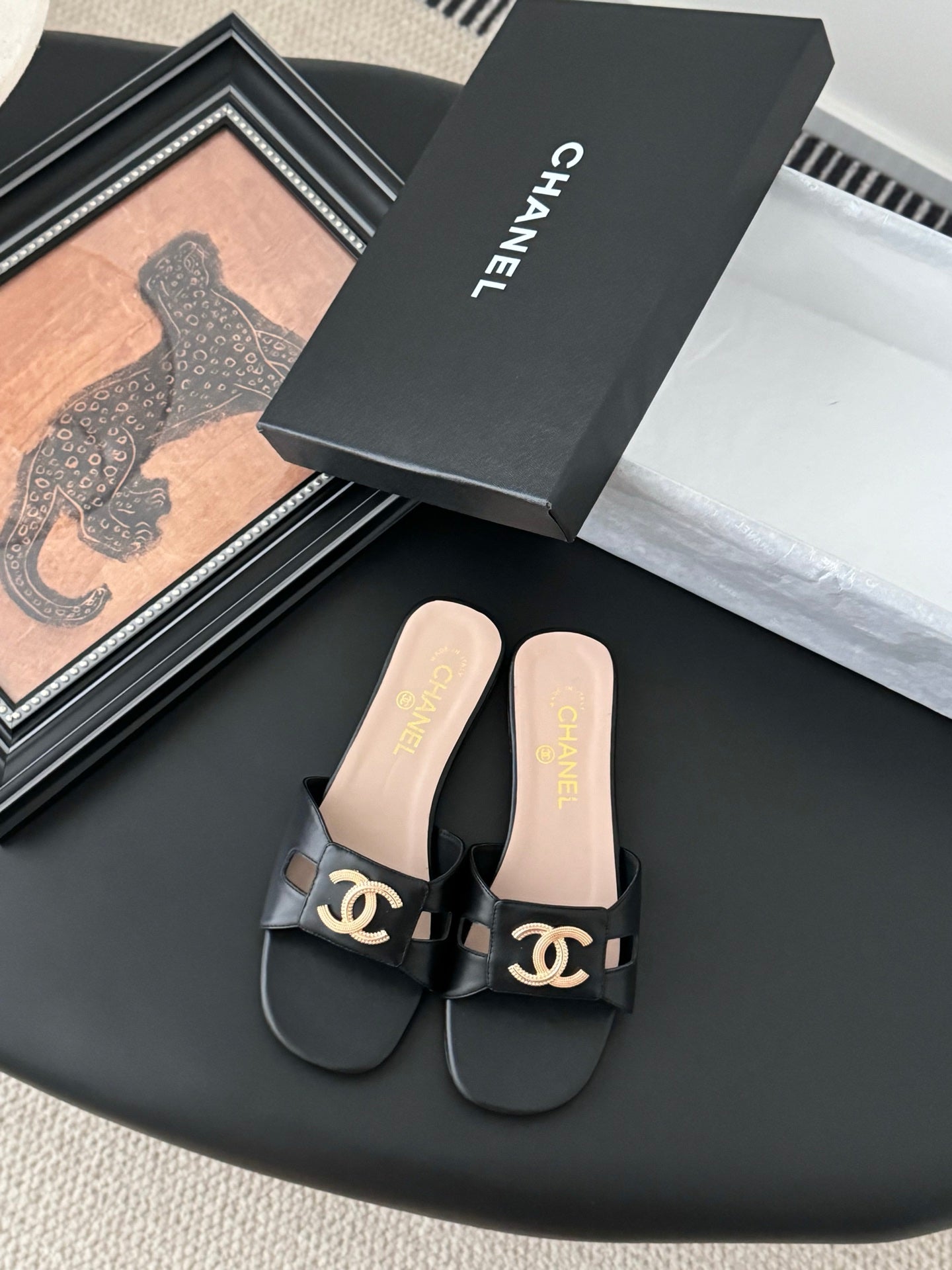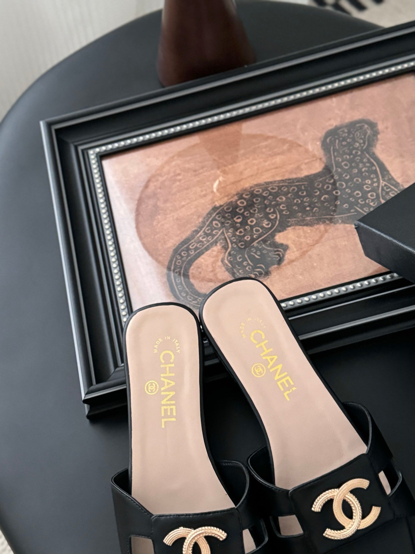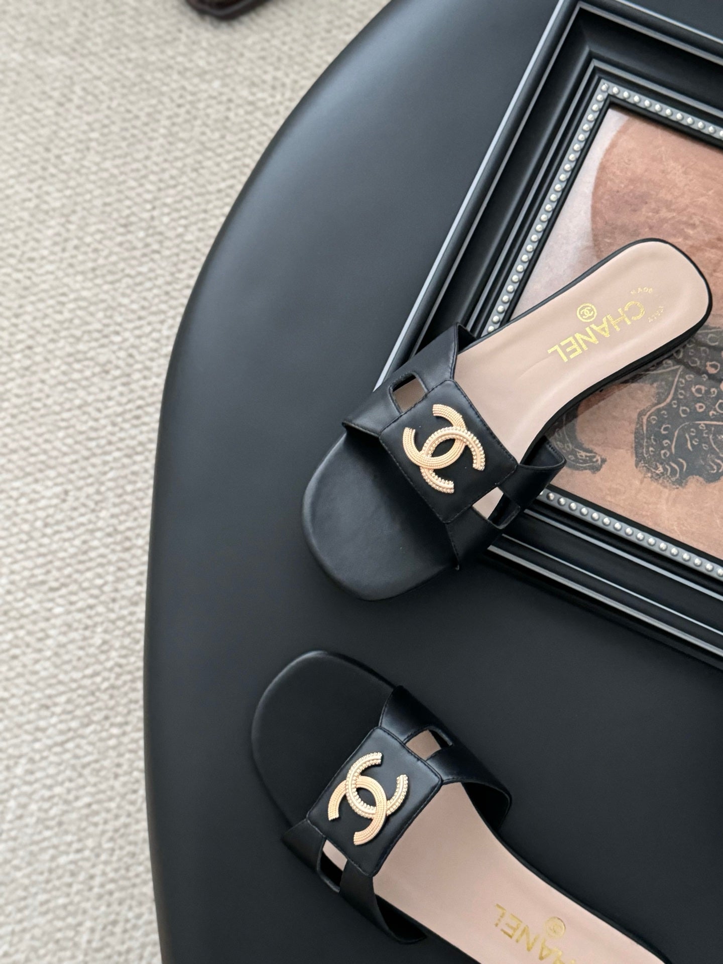 CC 25 Slippers Black Cowhide 305283