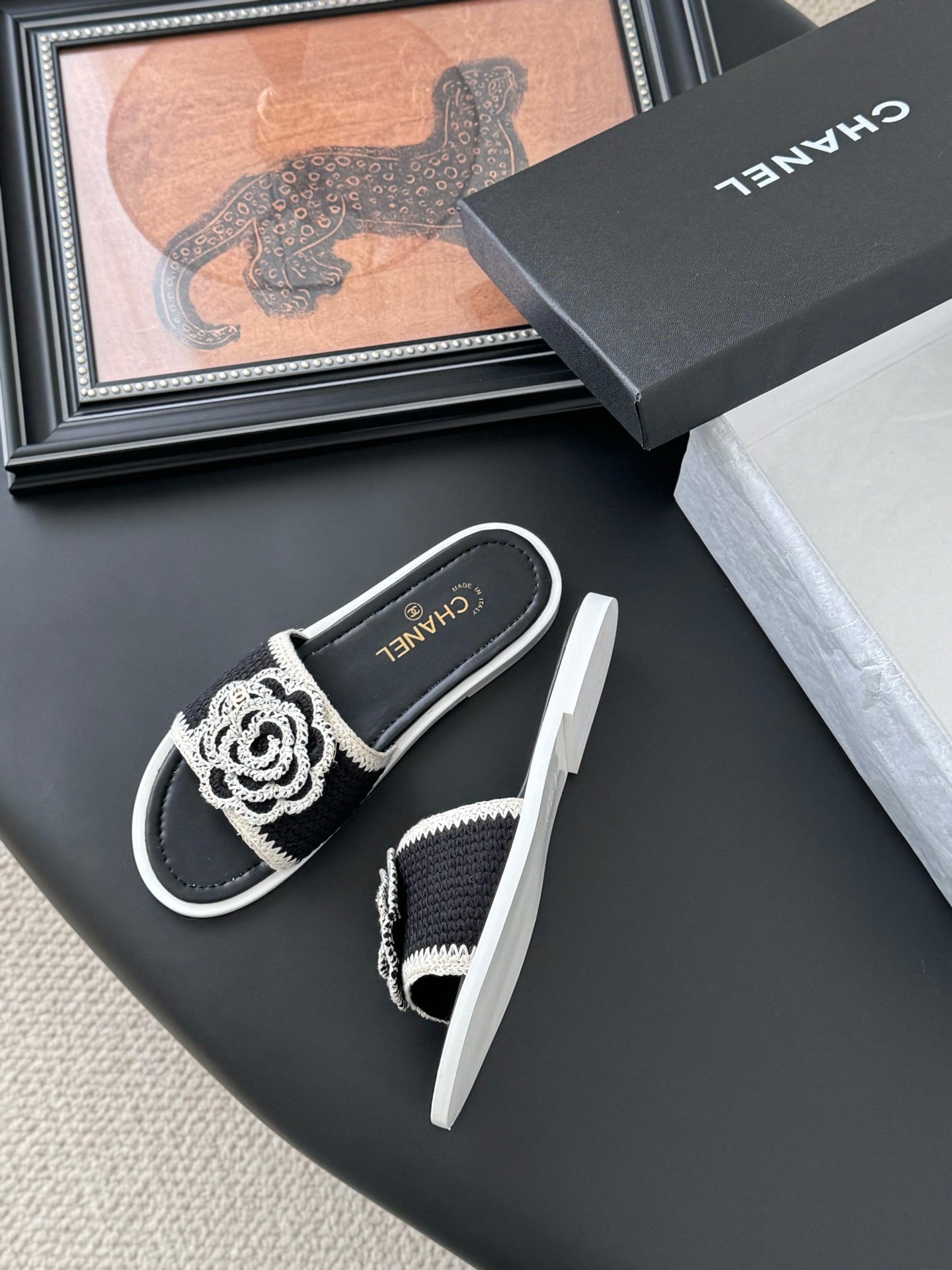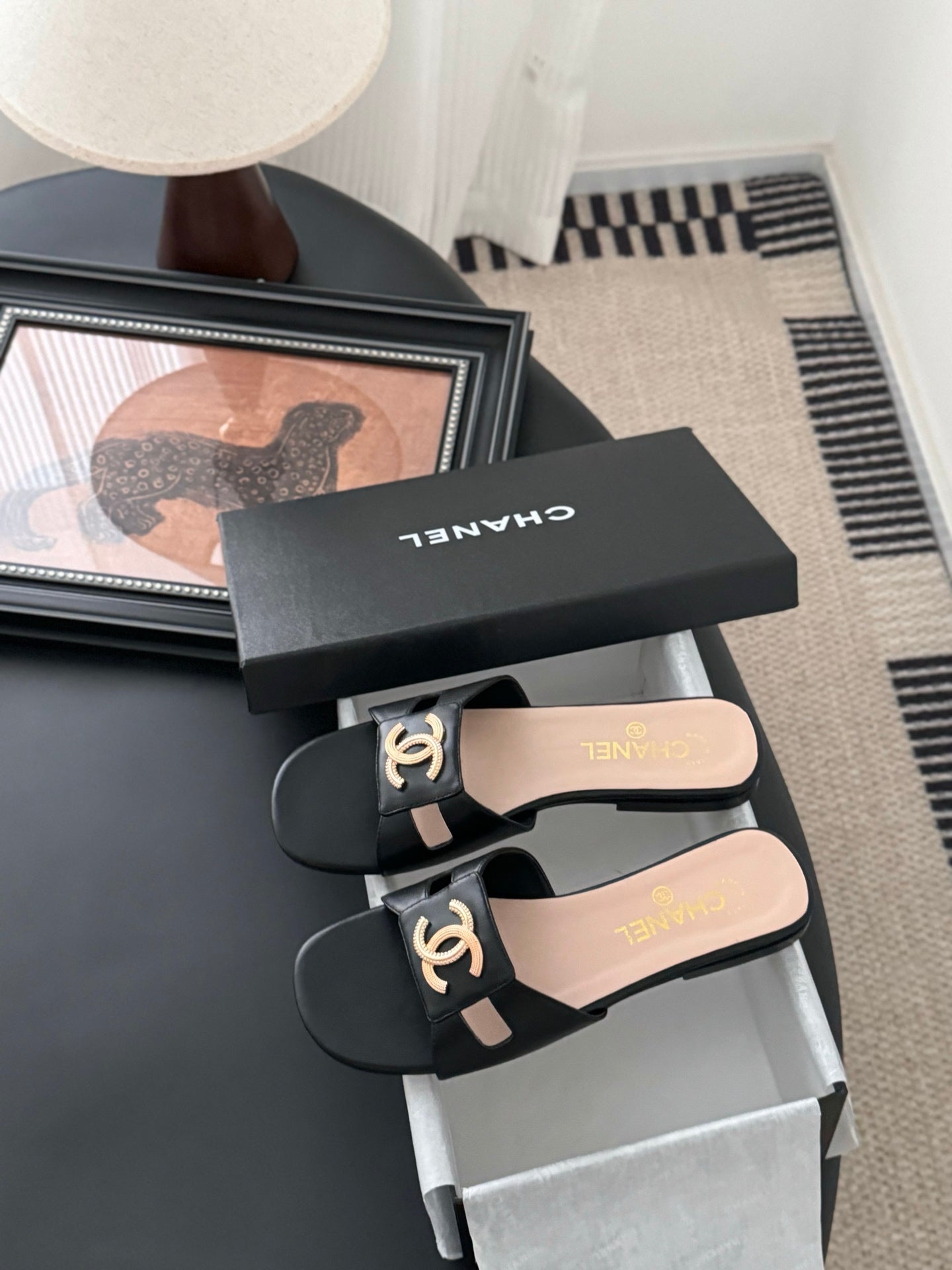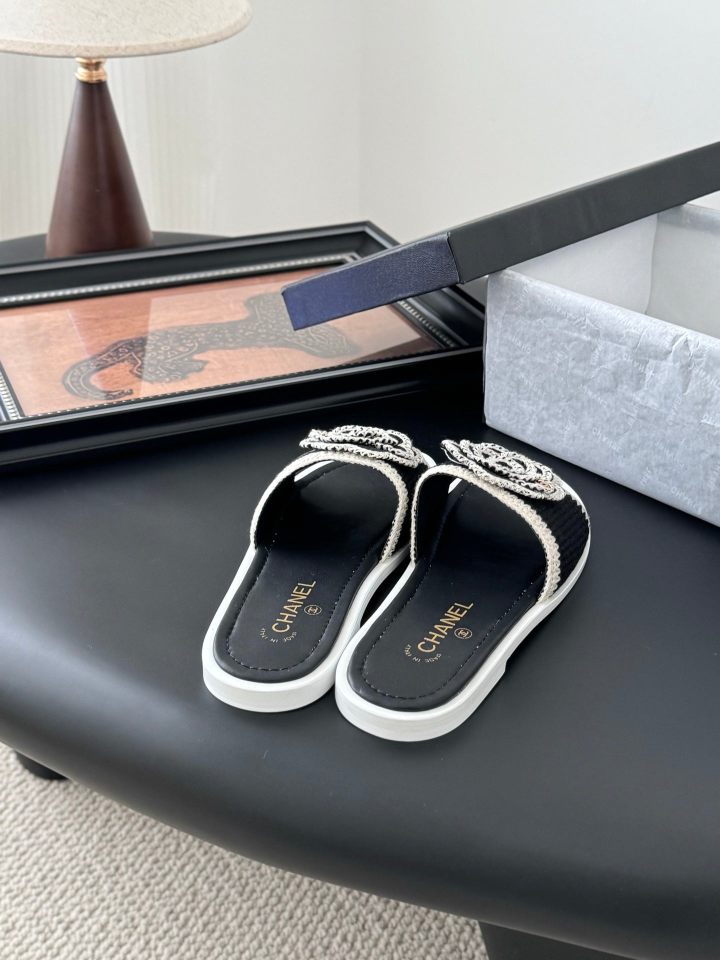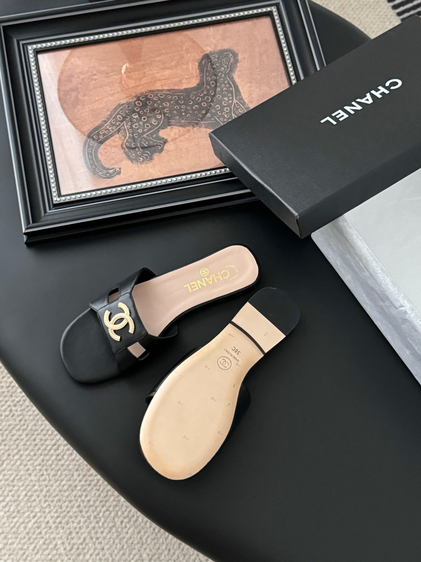 CC 25 Slippers Black Cowhide 305283