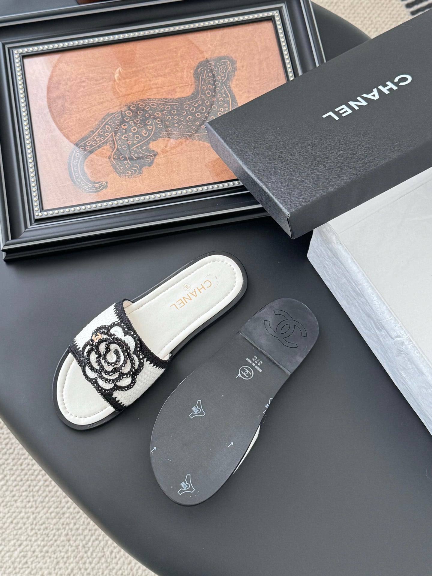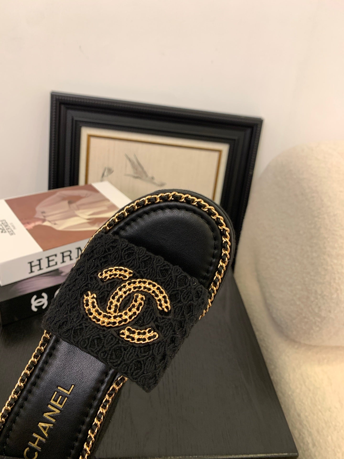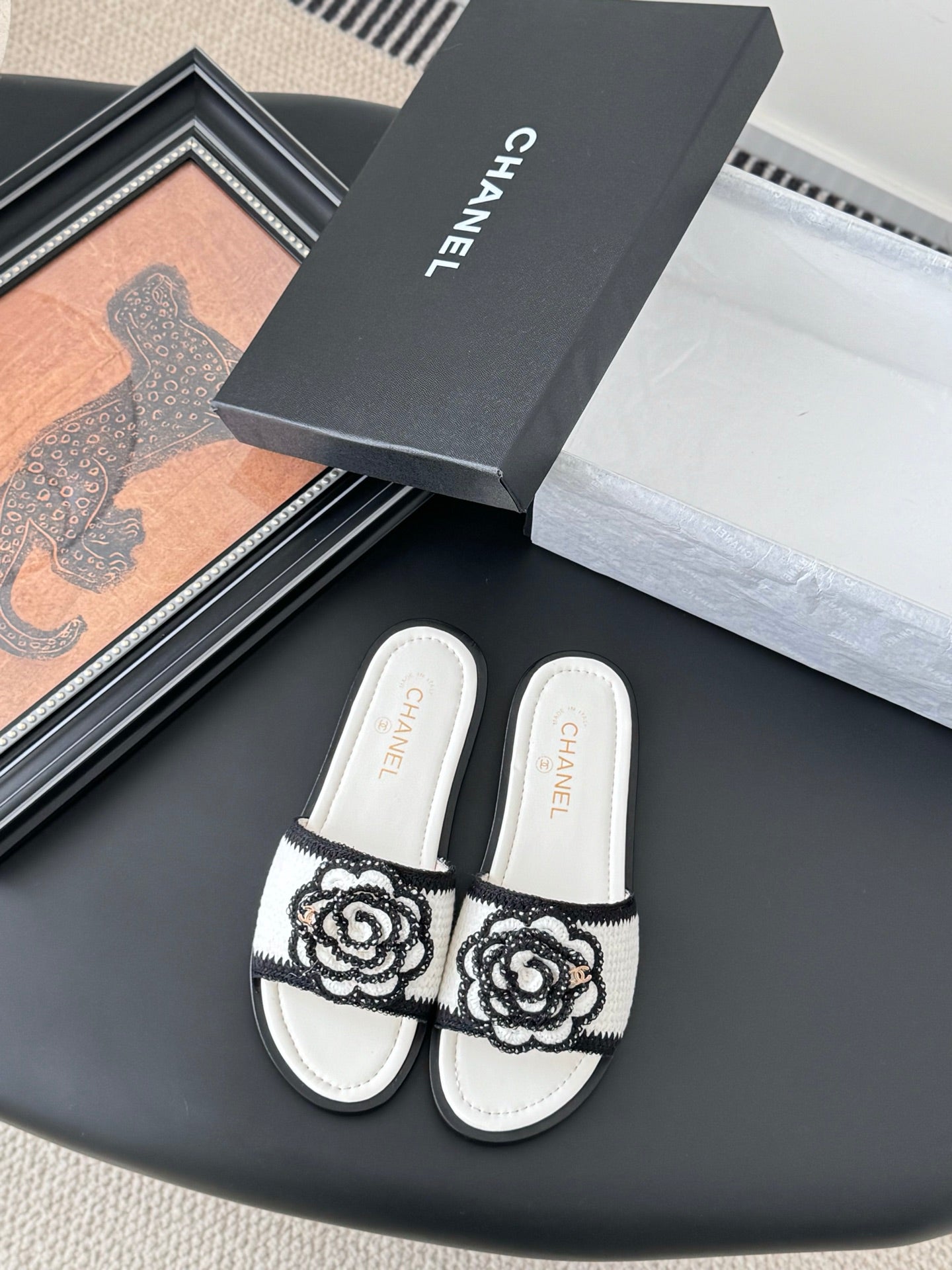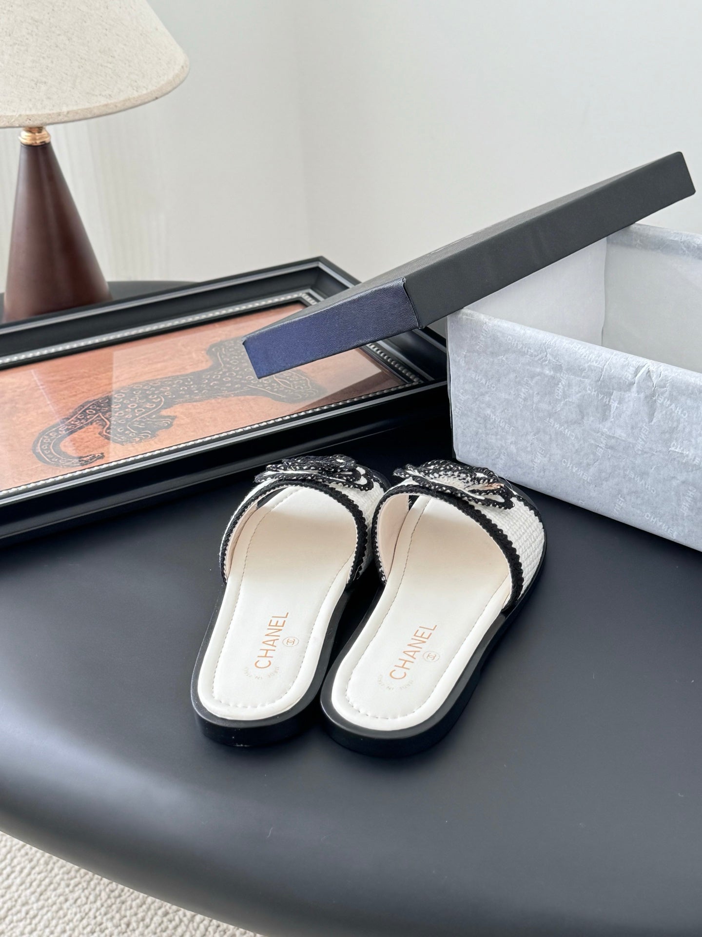 CC 25 Slippers Black Cowhide 305283