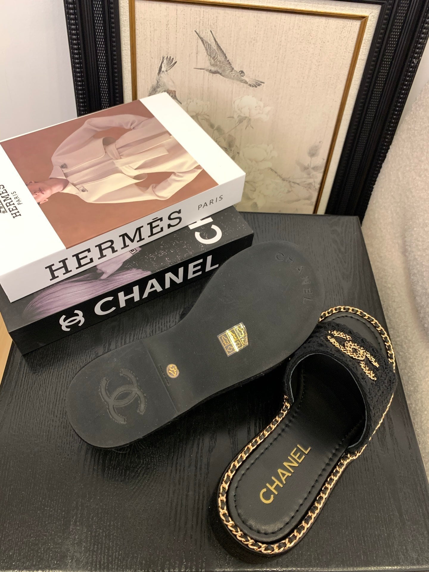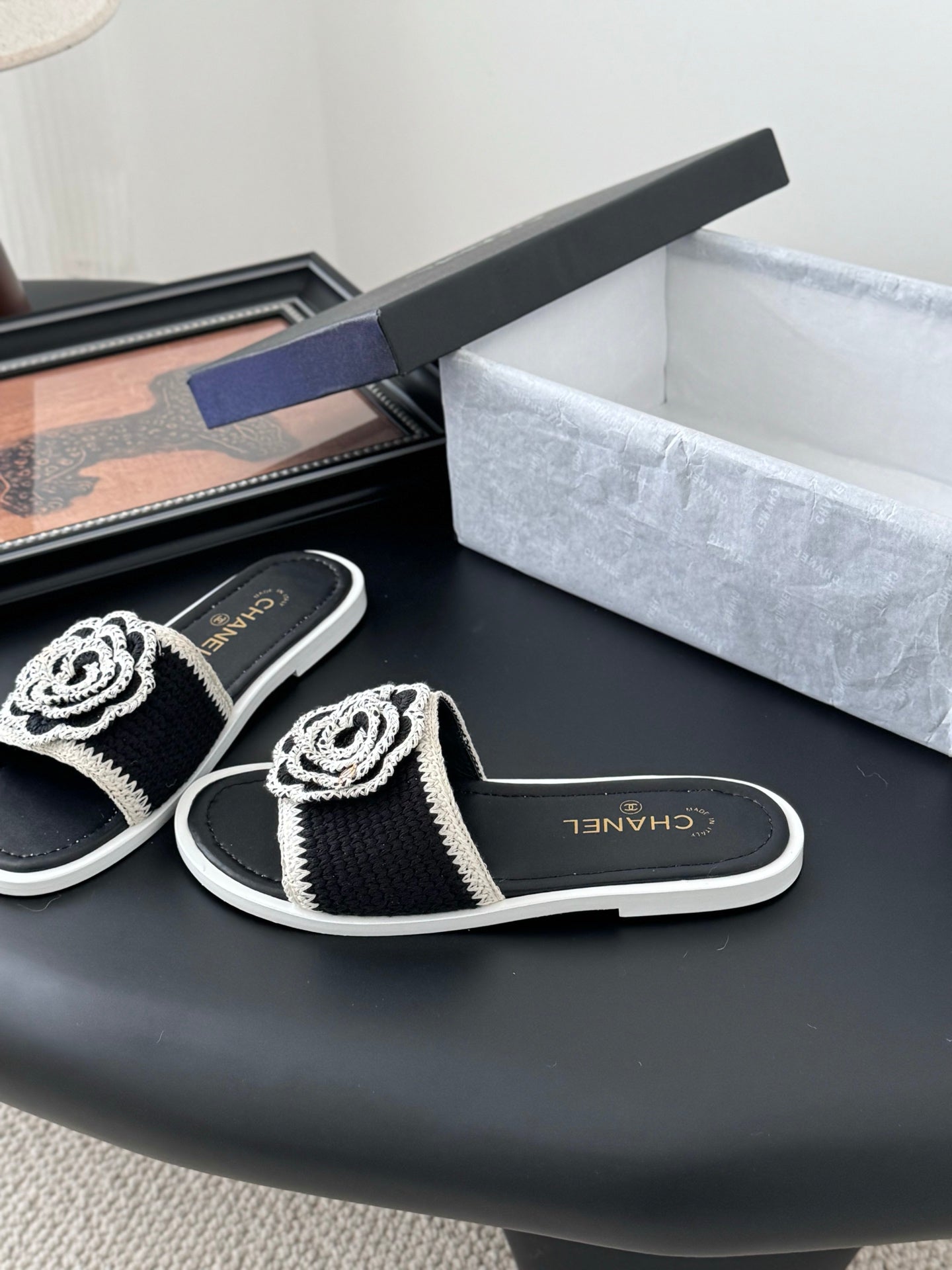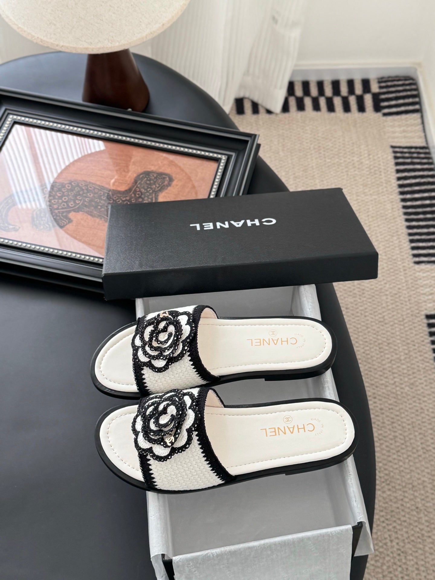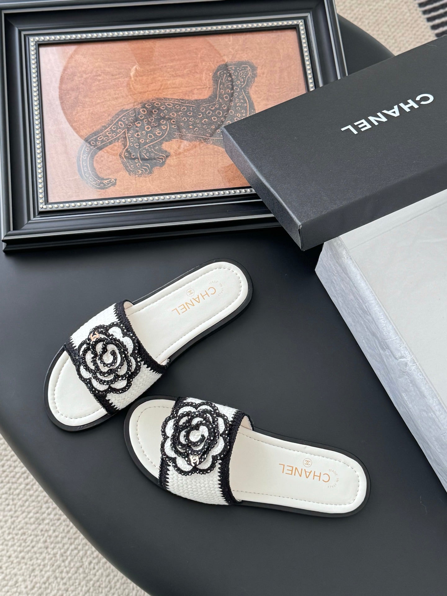 CC 25 Slippers Black Cowhide 305283
