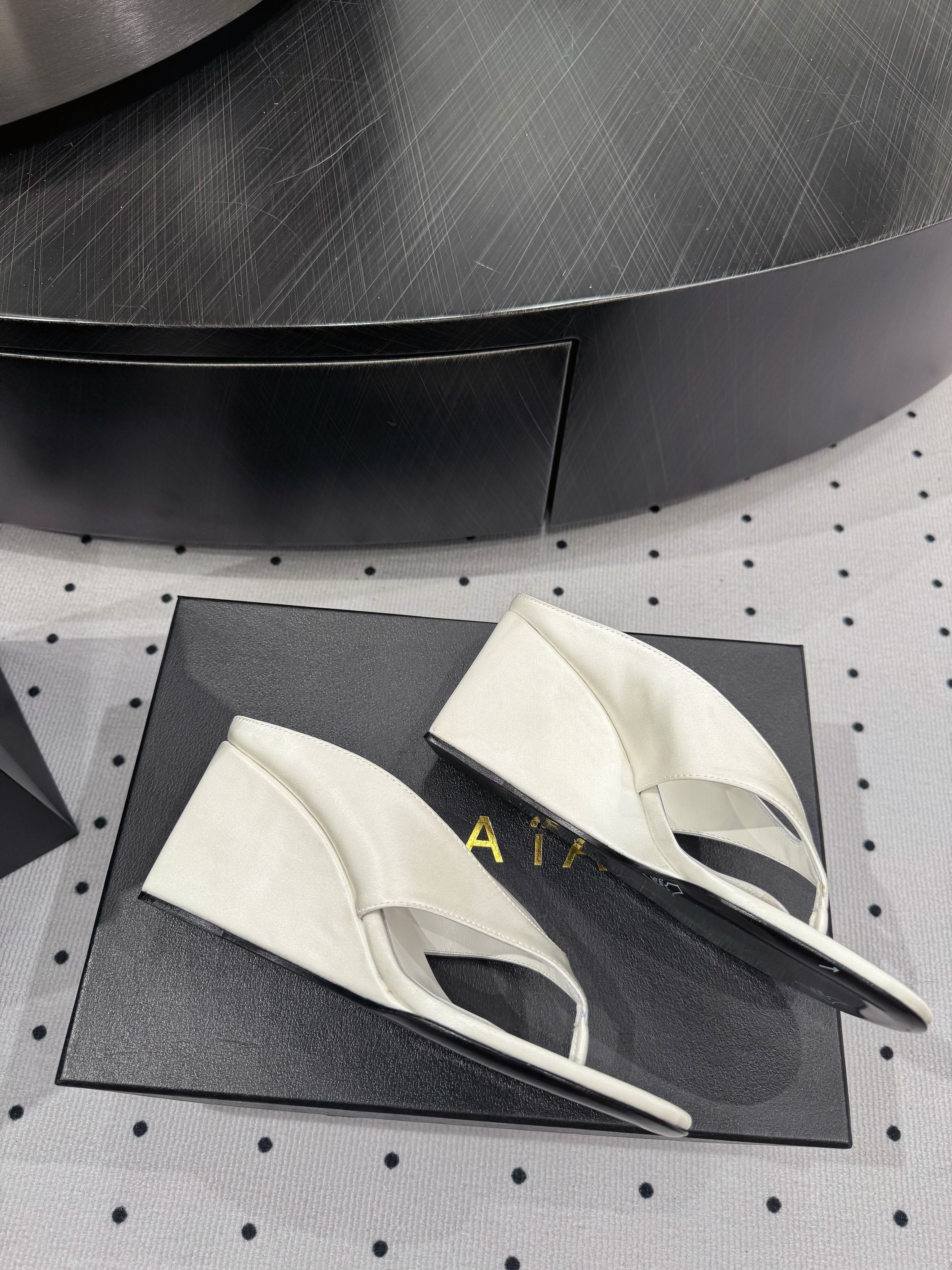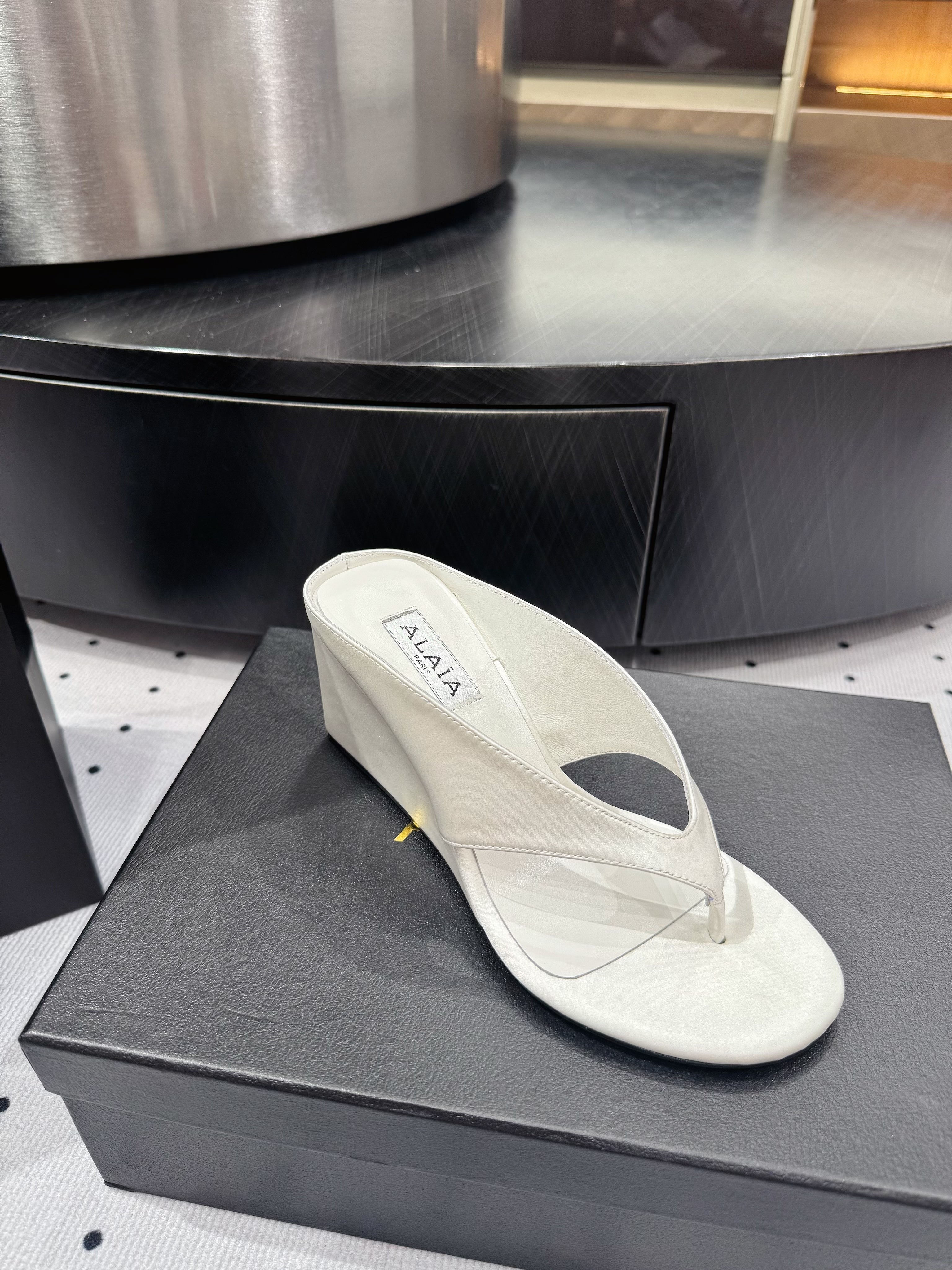 Alaia 25 Curve Wedge Mules White Lambskin 293554