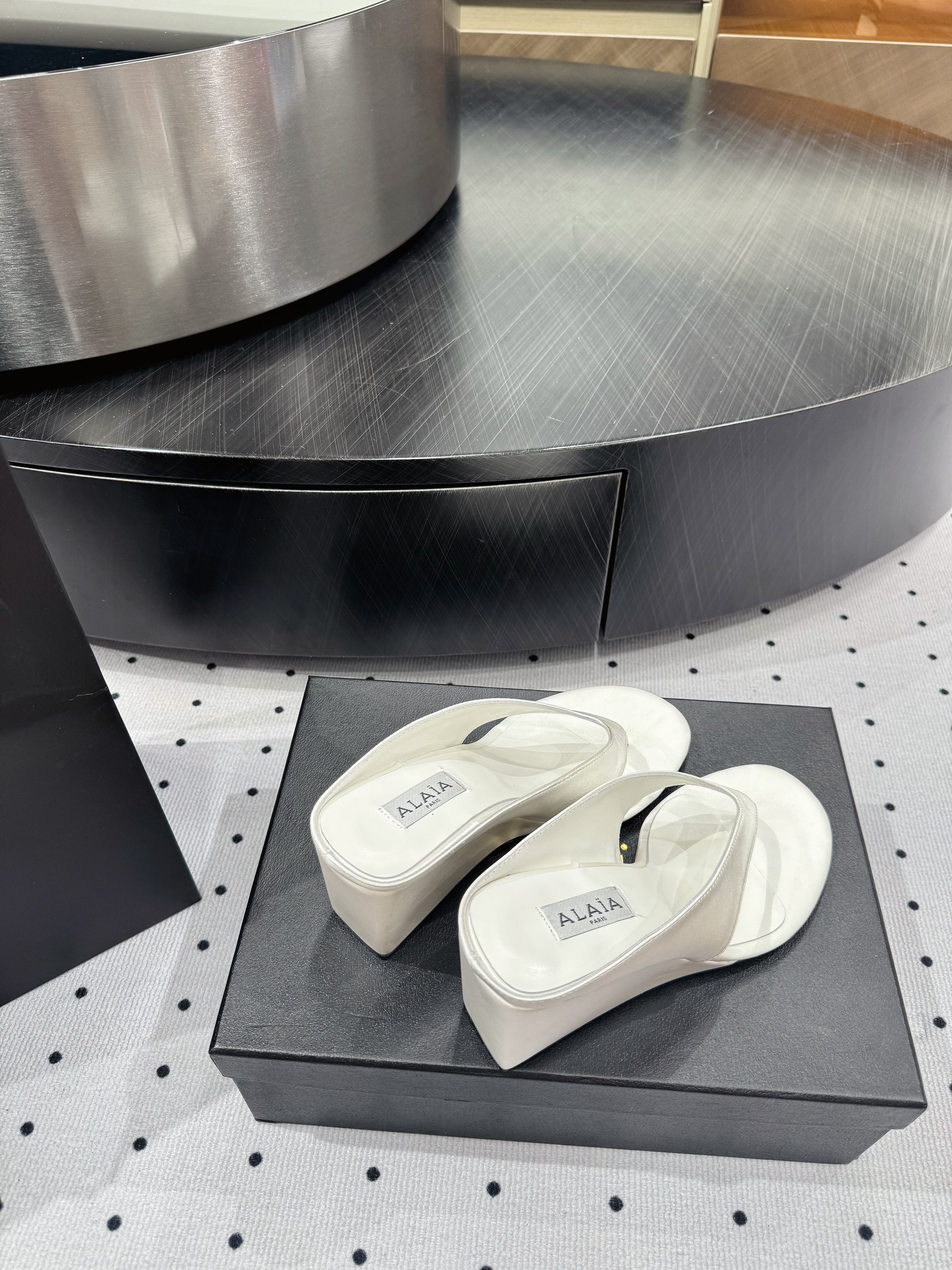 Alaia 25 Thong Sandals White Fishnet Sheepskin 315964