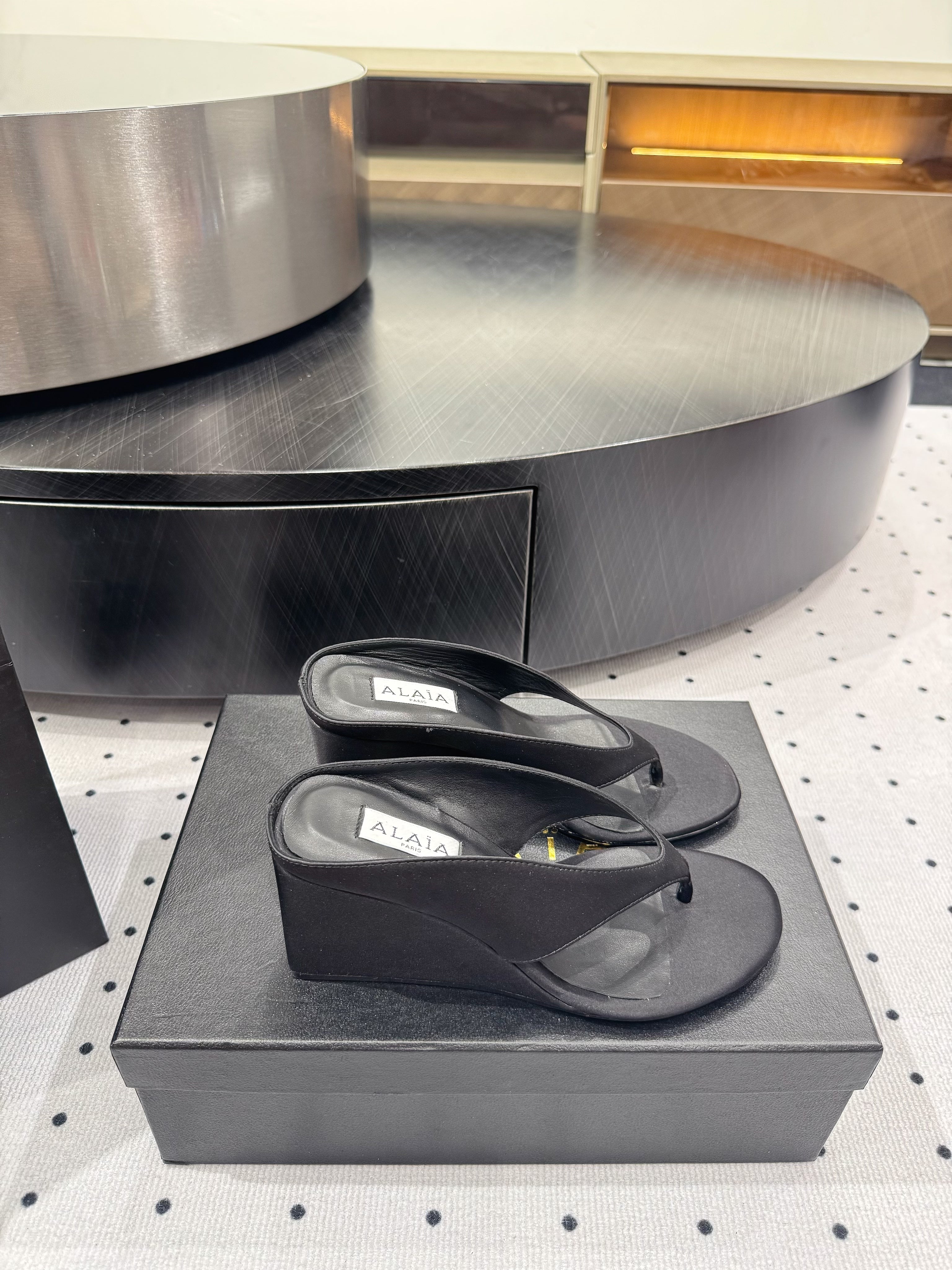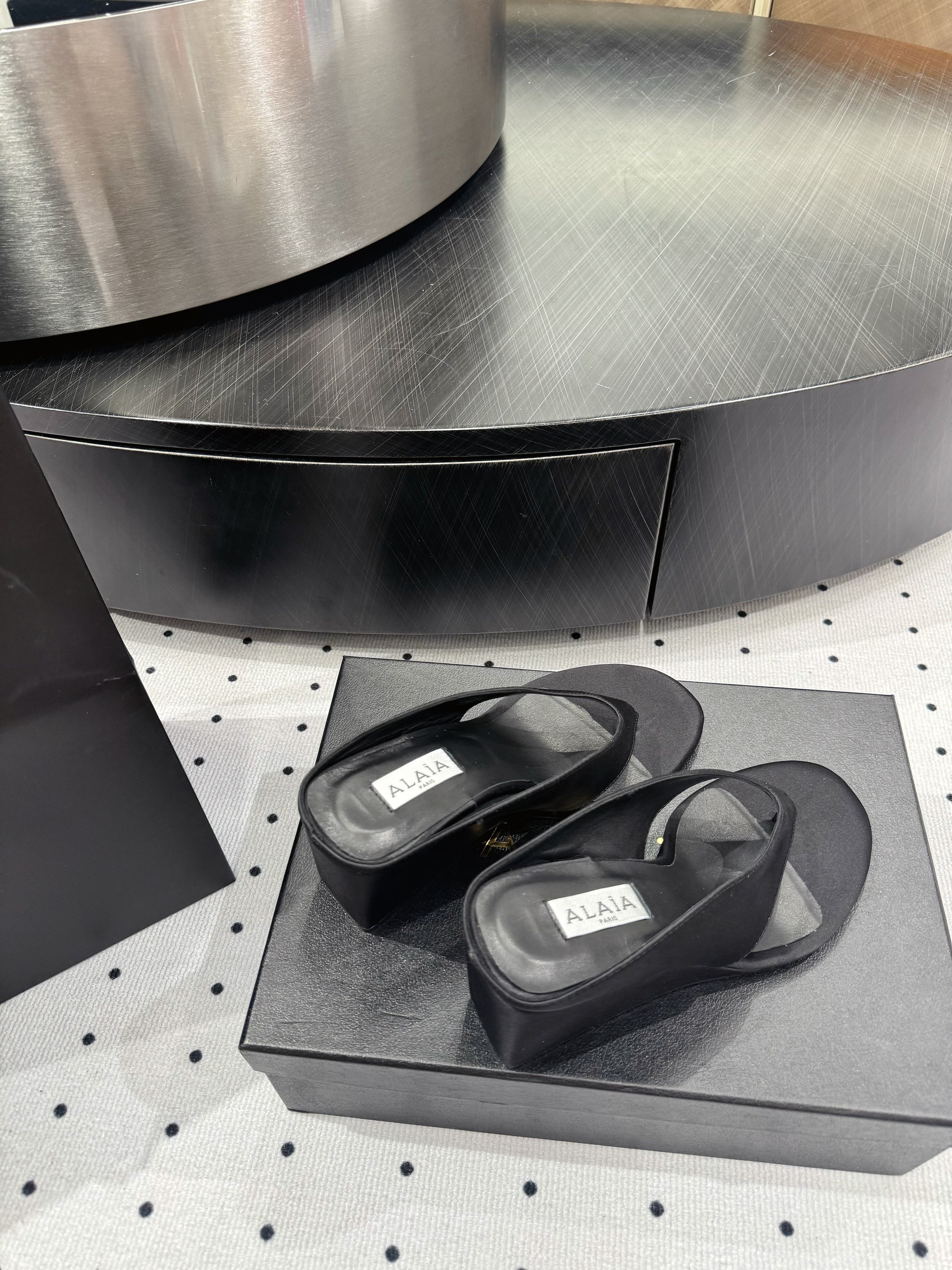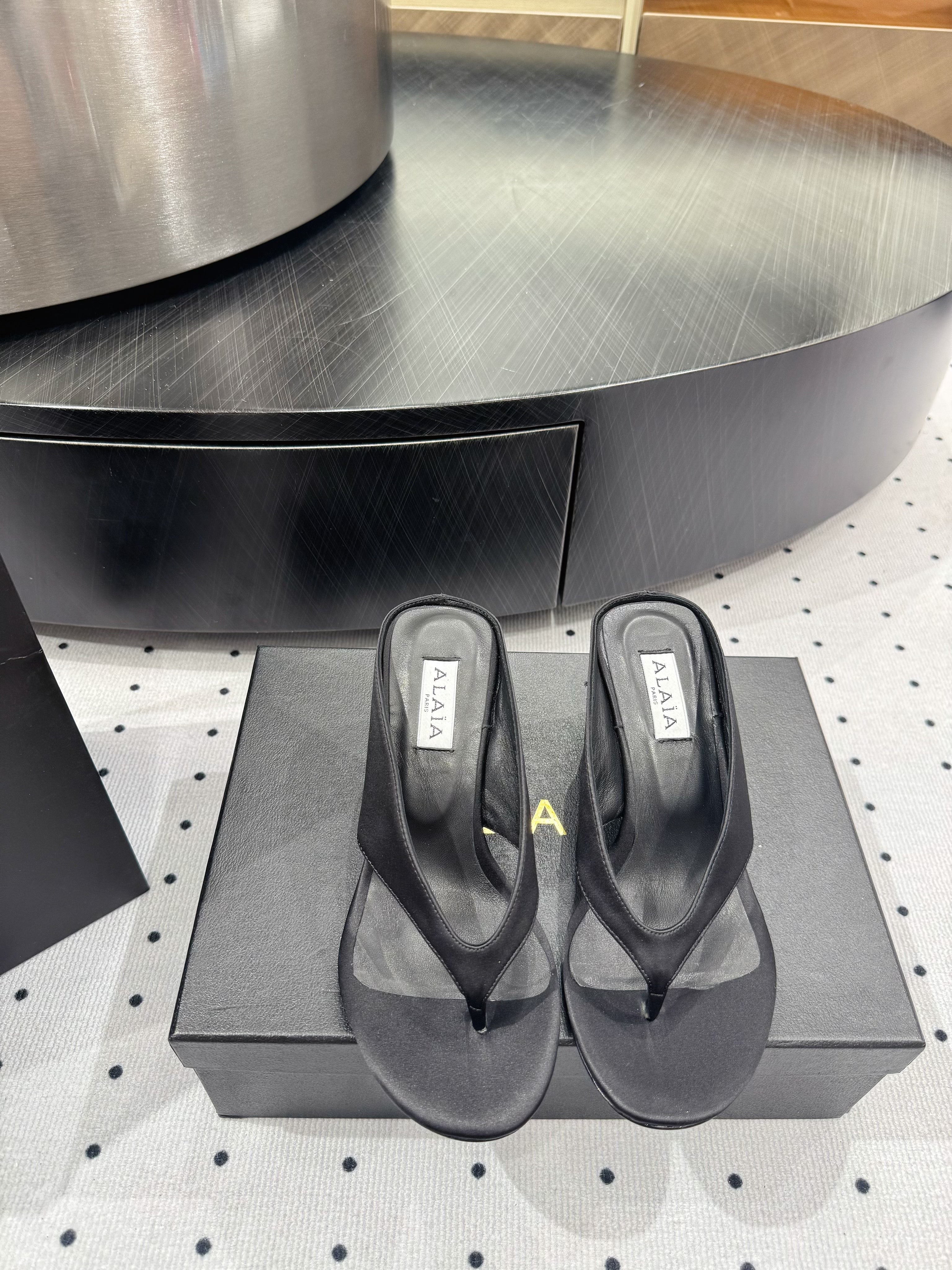 Alaia 25 Cube Thong Mules Black Satin Sheepskin 297039