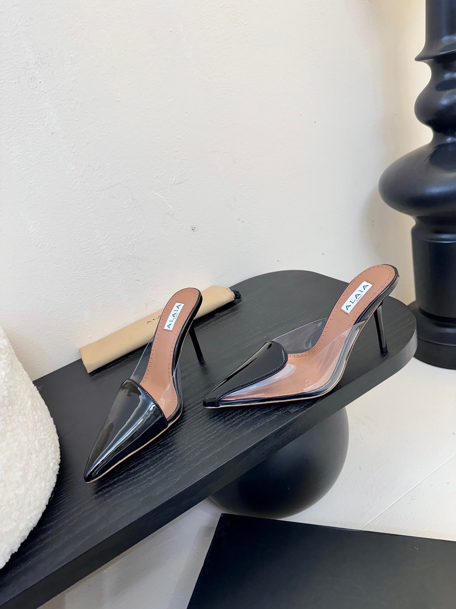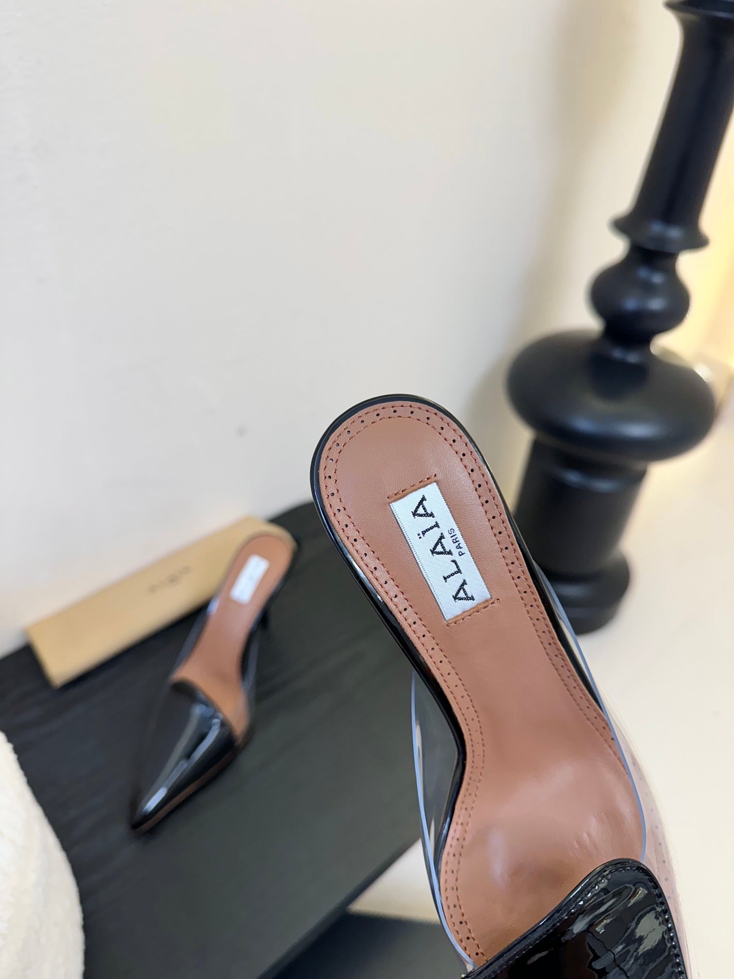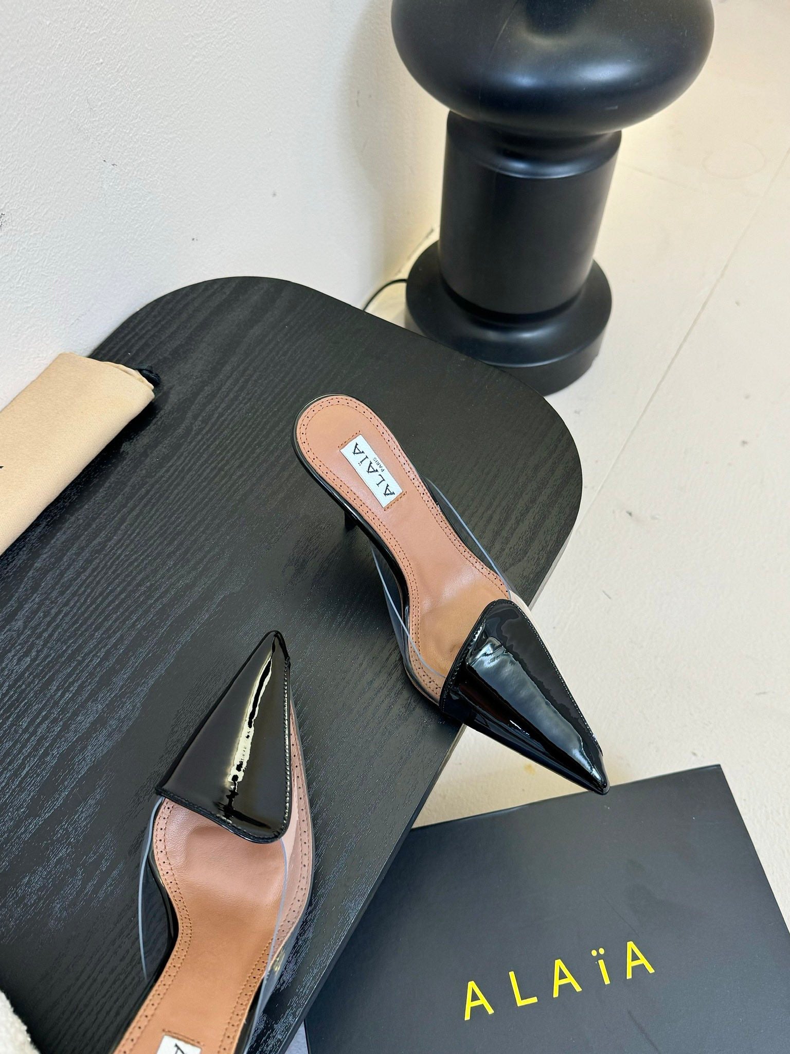 Alaia 25 Spike High Heel Mules Glossy Black Lampskin 293184