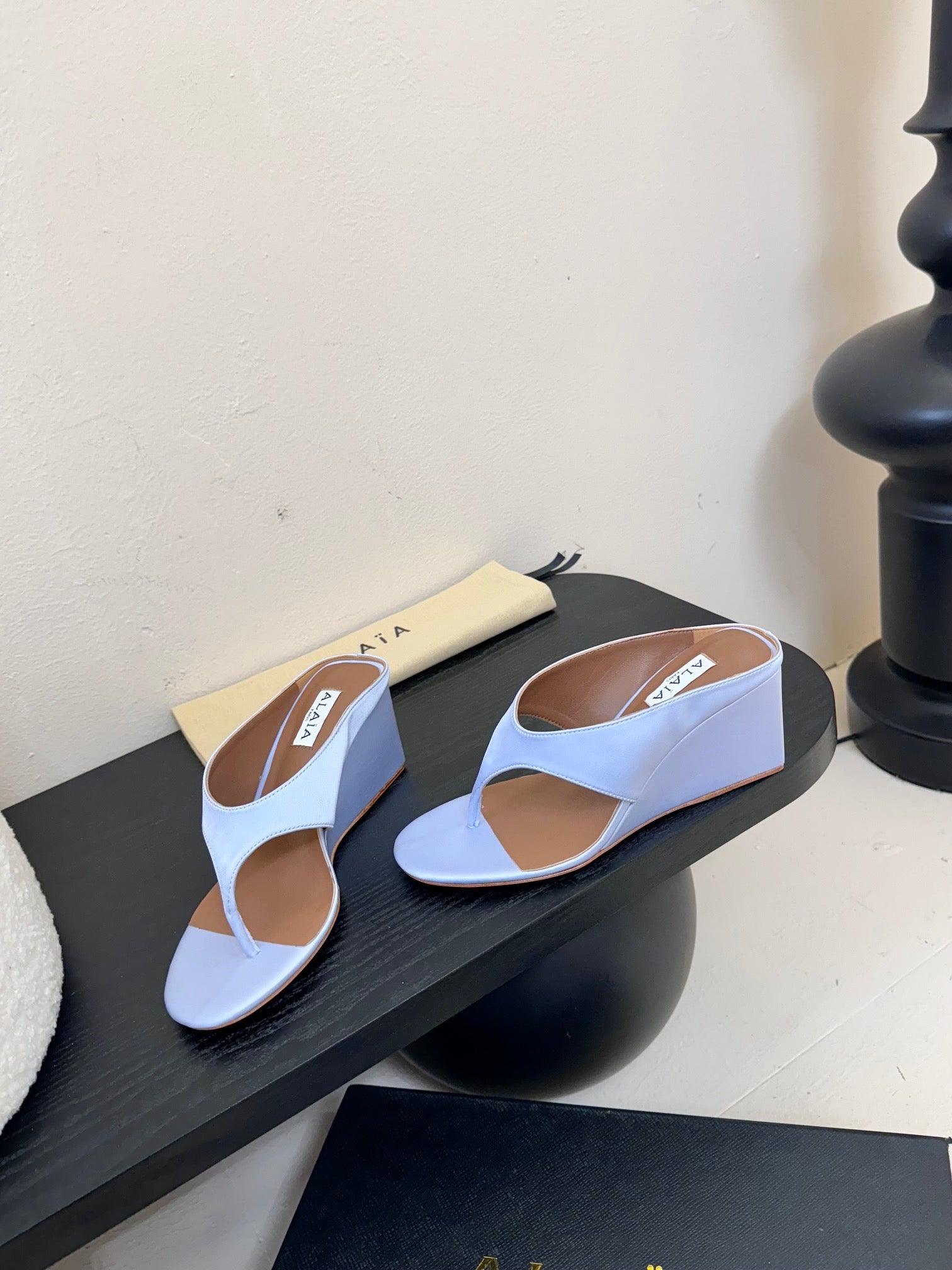 Alaia 25 Cube Thong Mules Blue Satin Sheepskin 297038