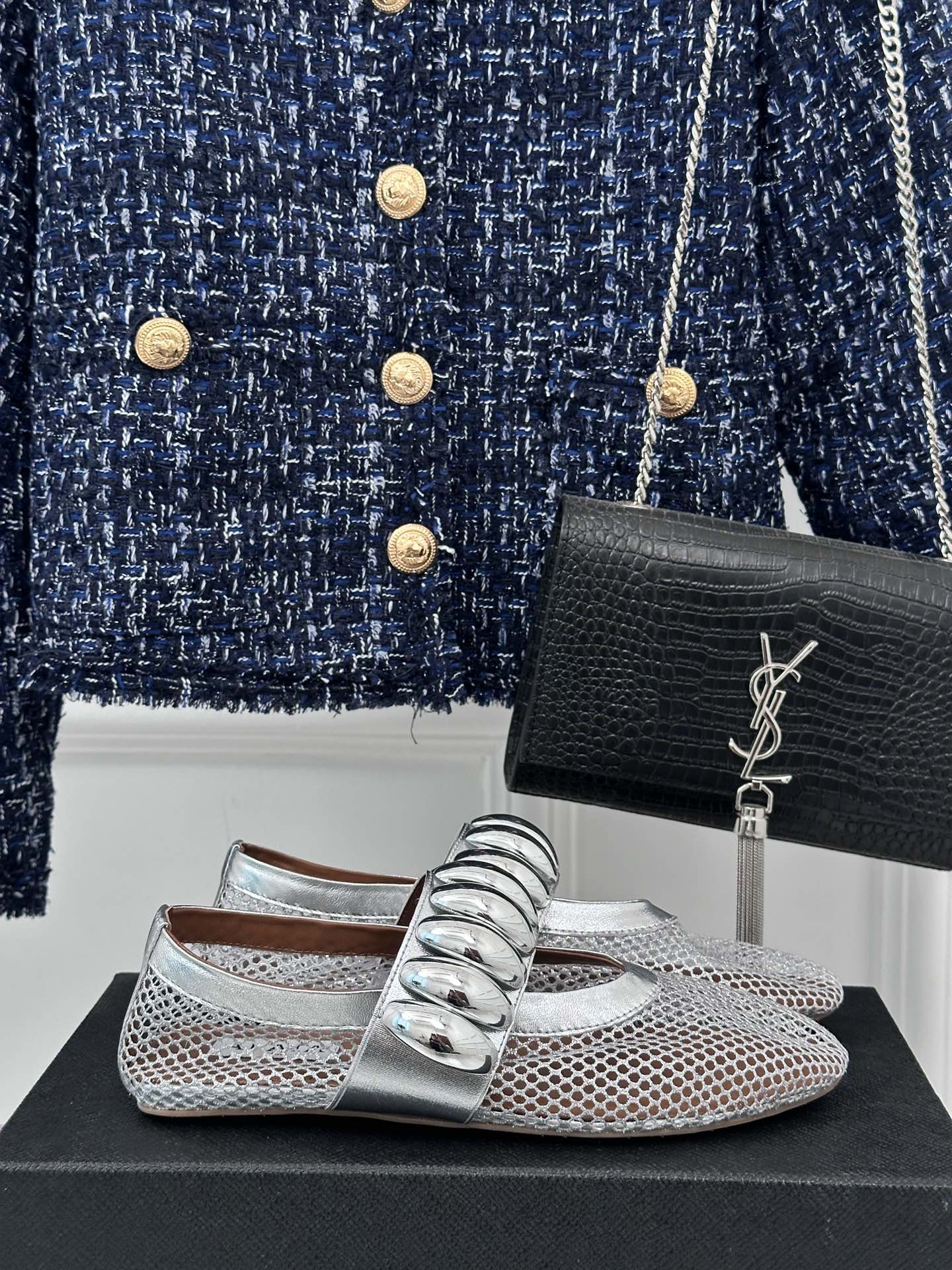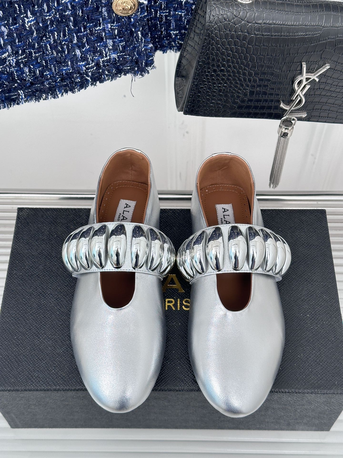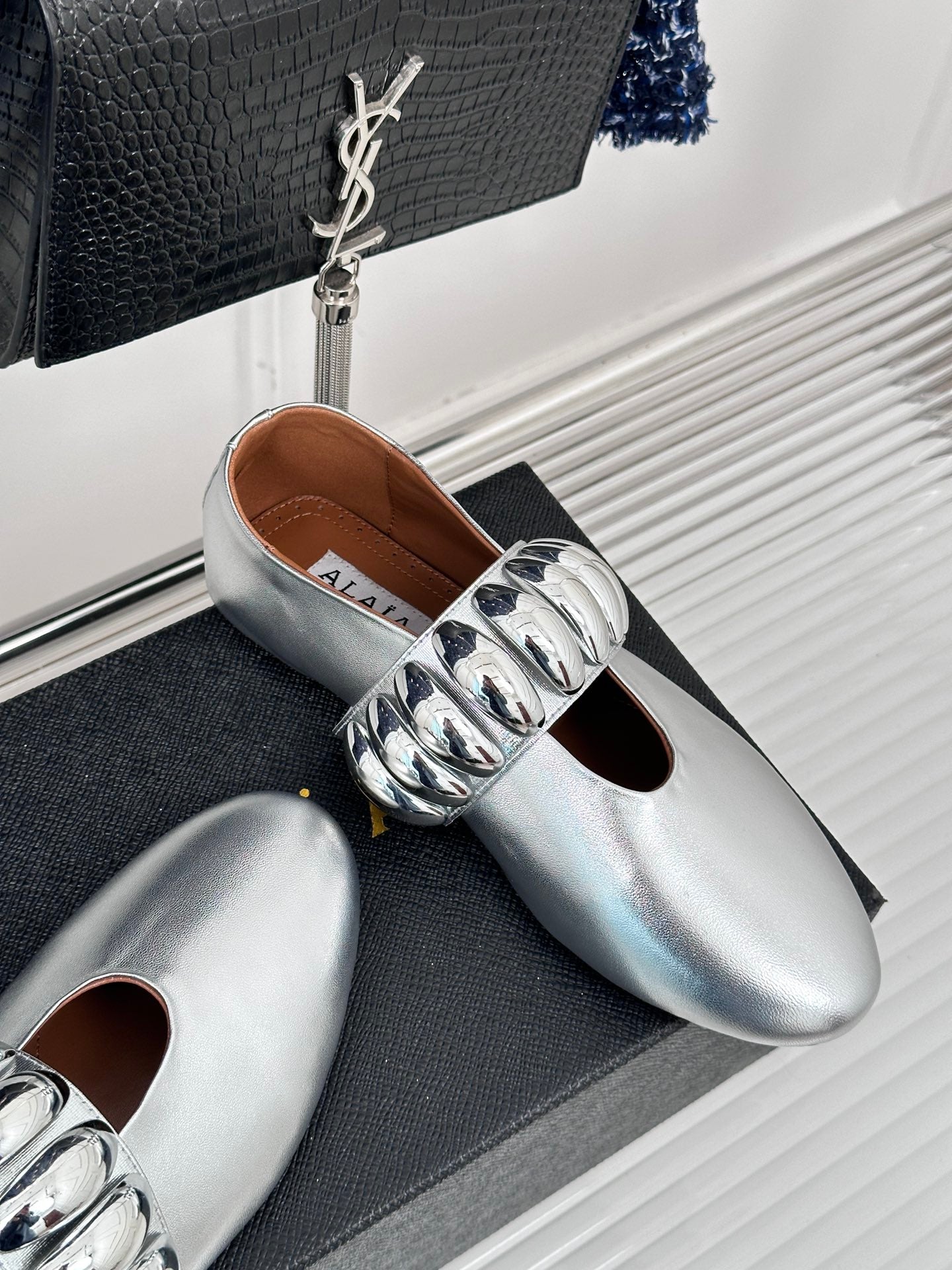 Alaia 25 Ballet Flats Silver Calfskin 293242