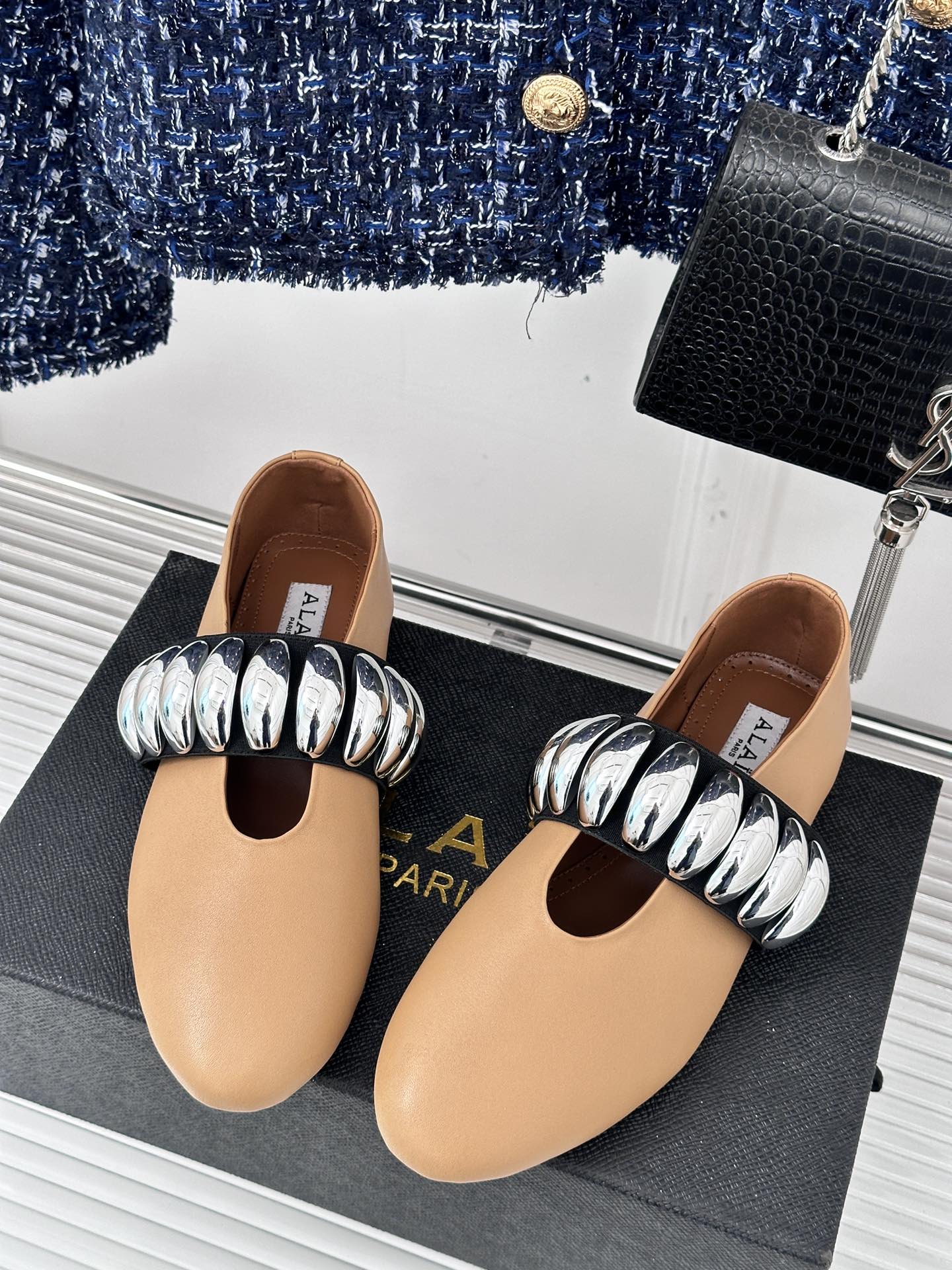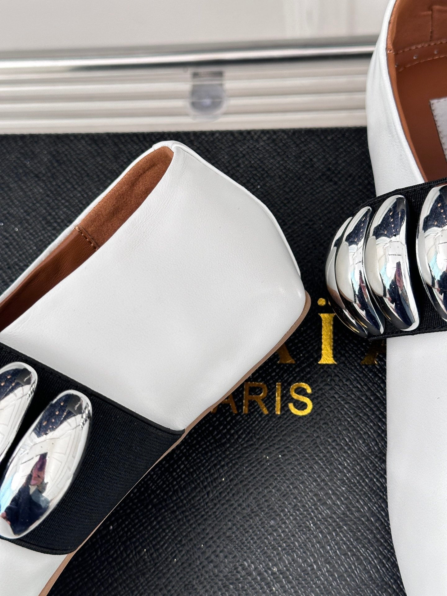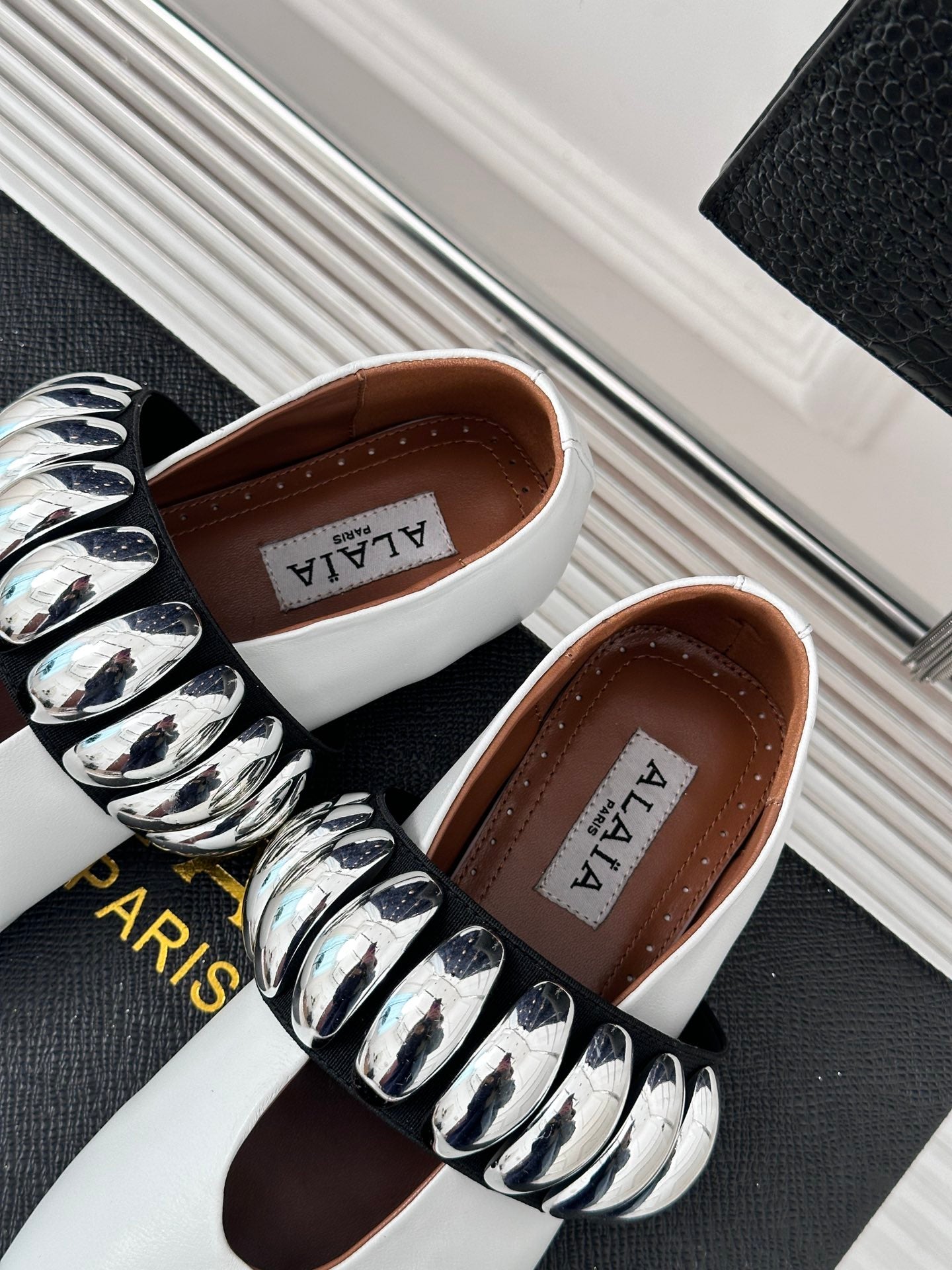 Alaia 25 Ballet Flats Silver Calfskin 293242