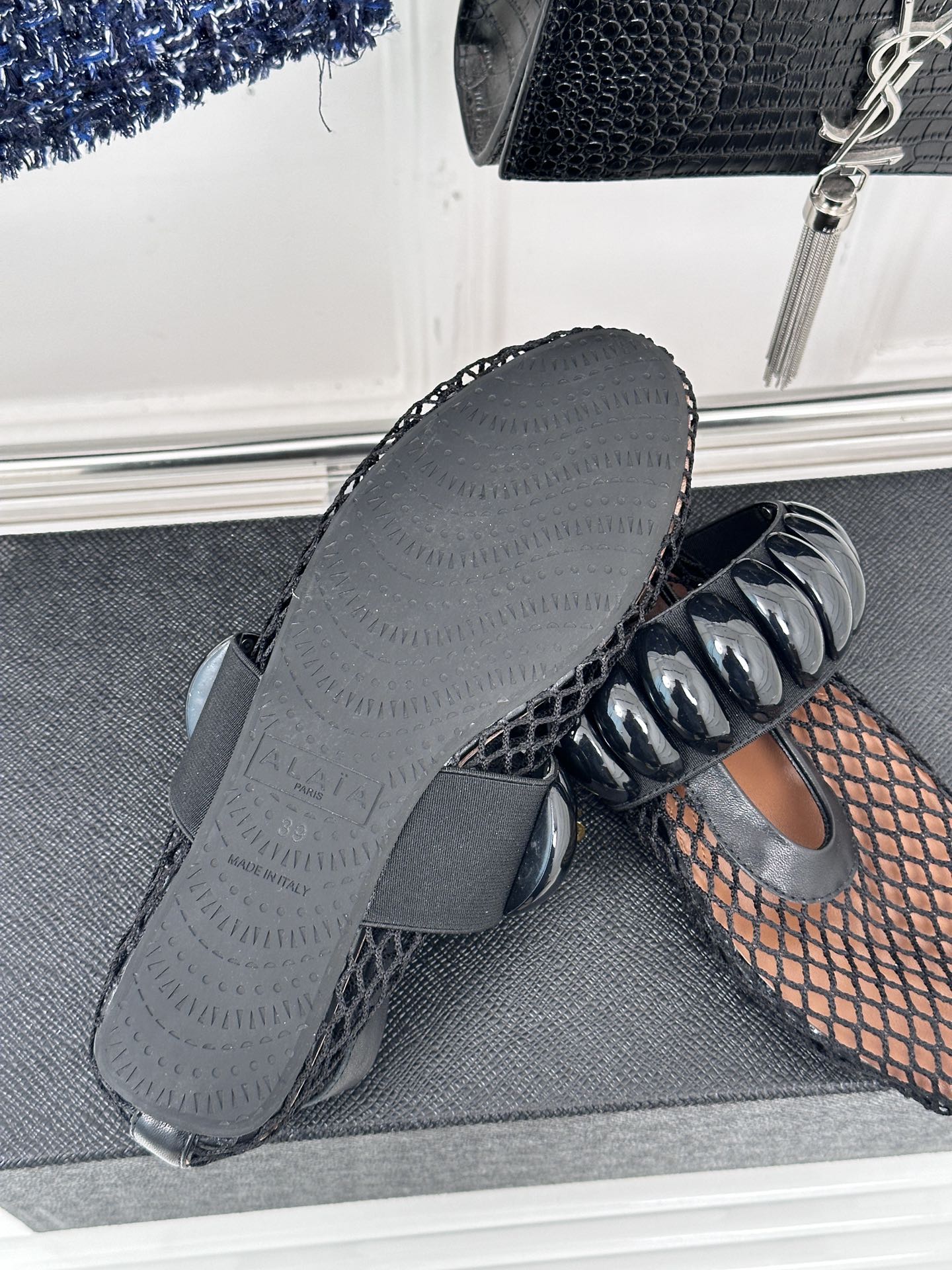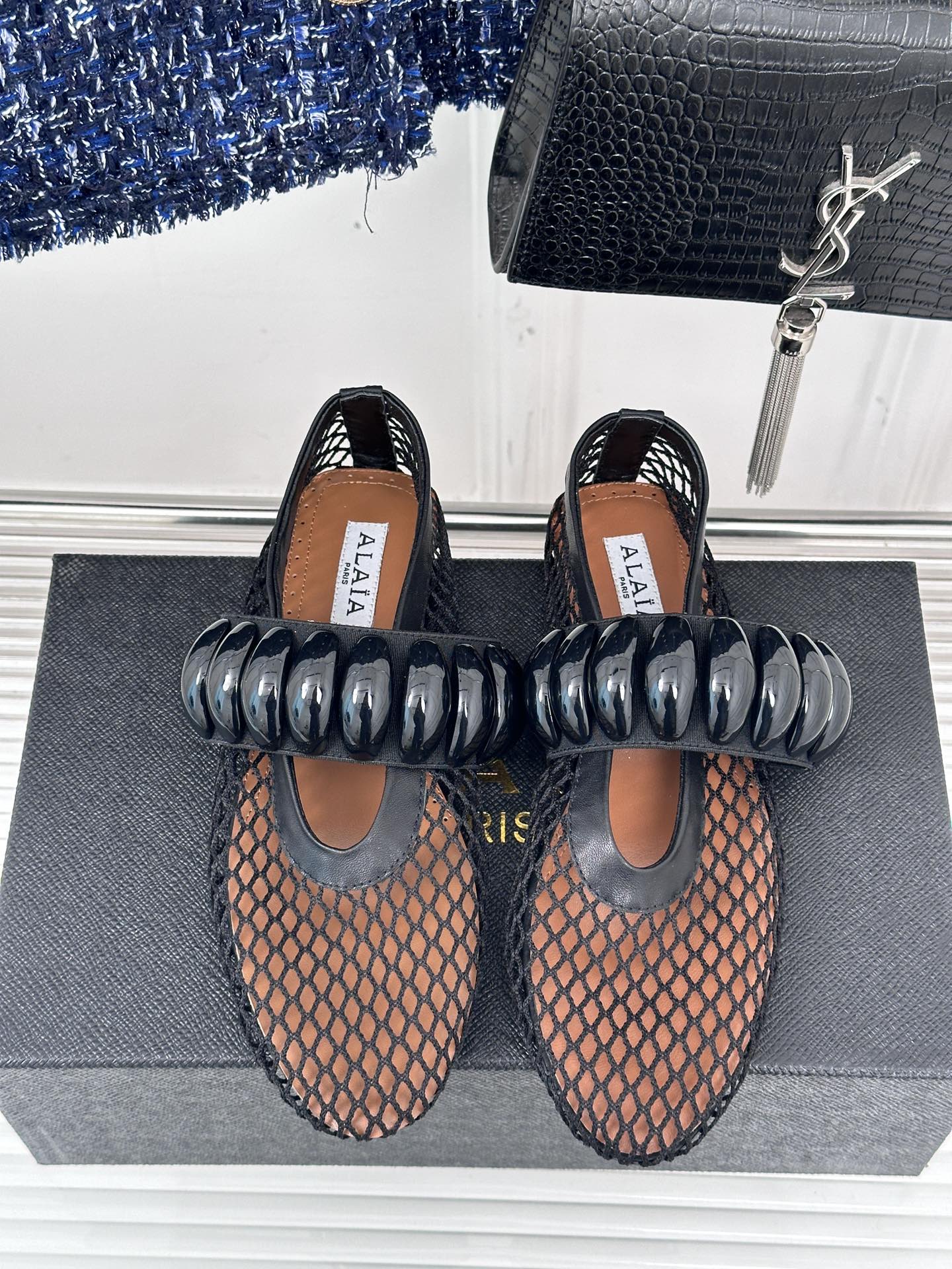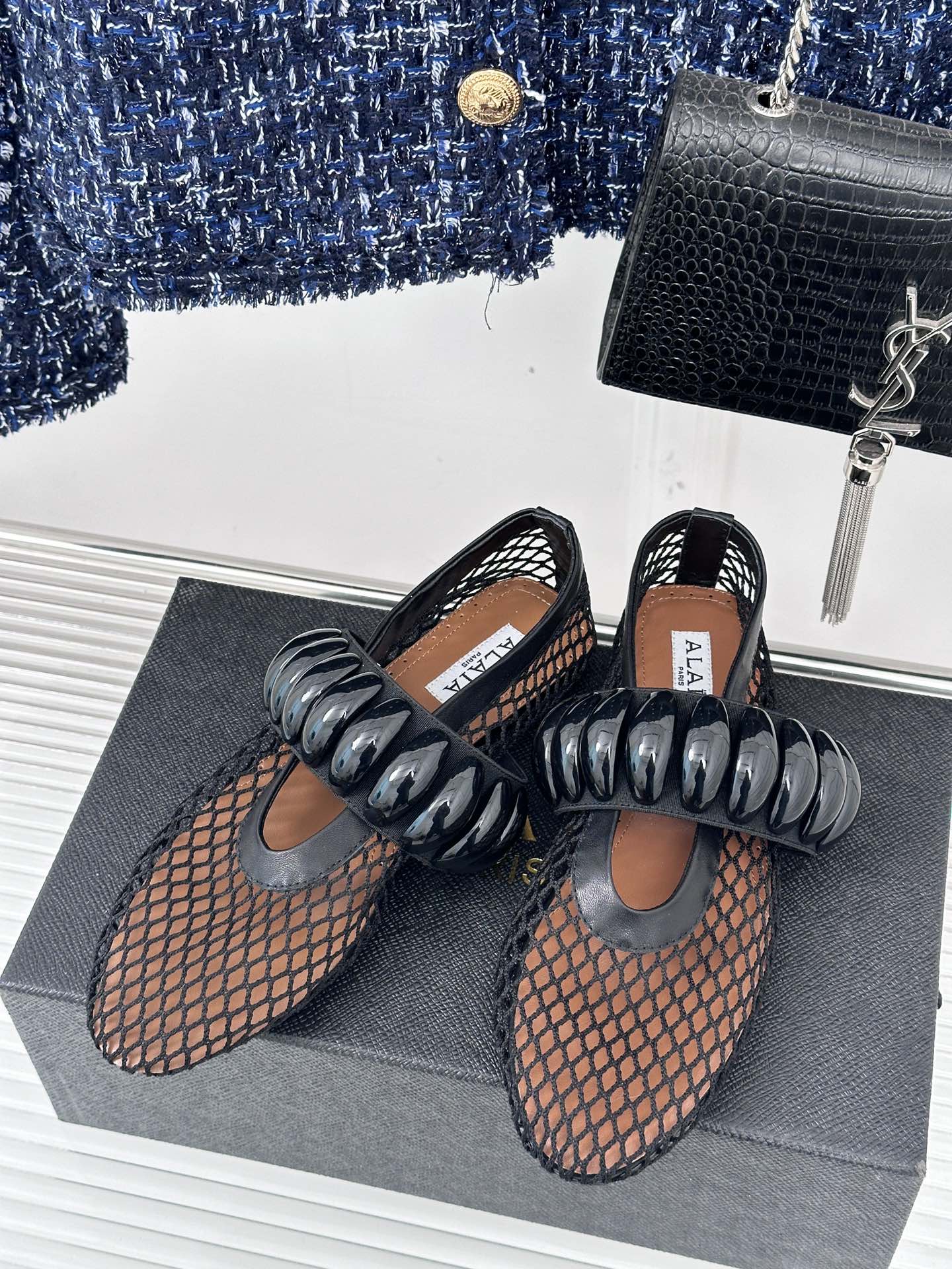 Alaia 25 Mary Jane Mesh Ballet Flats Black Calfskin 297034