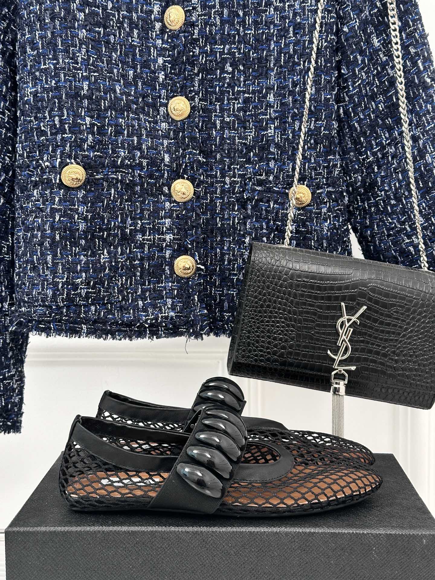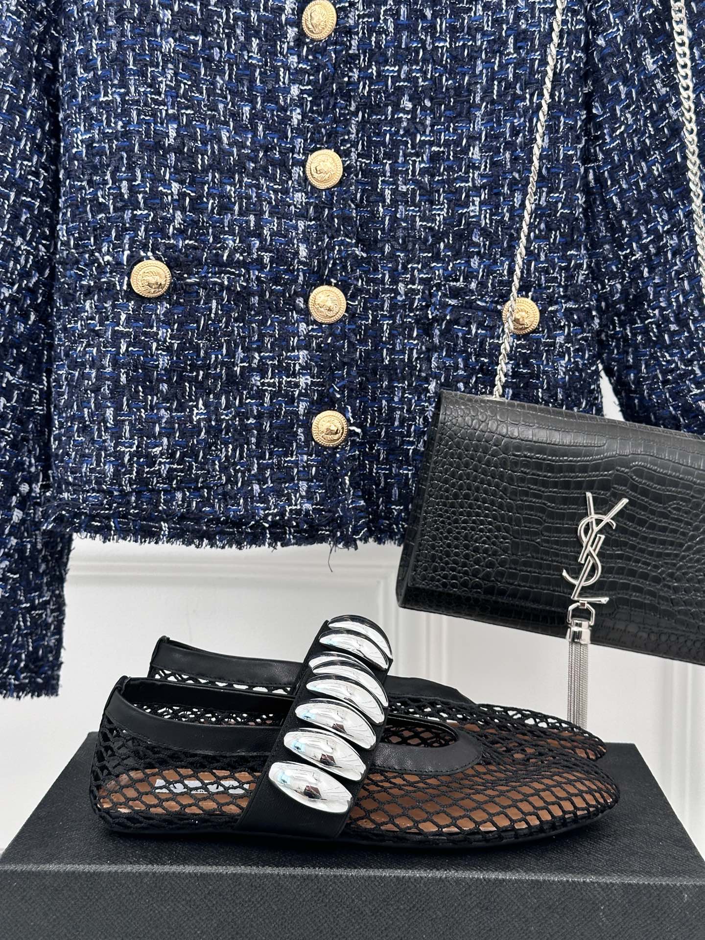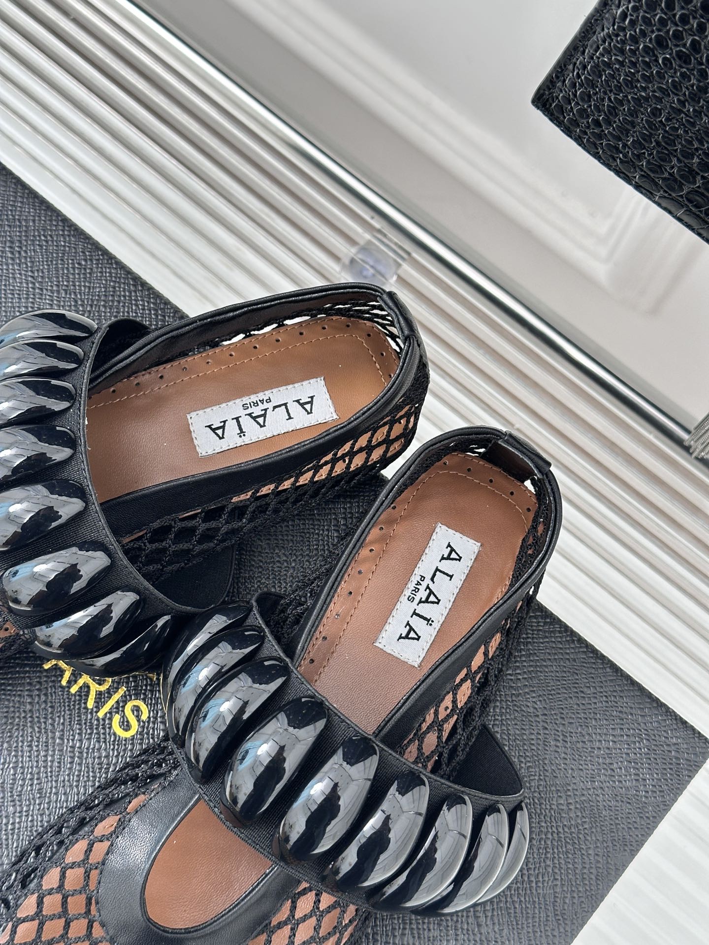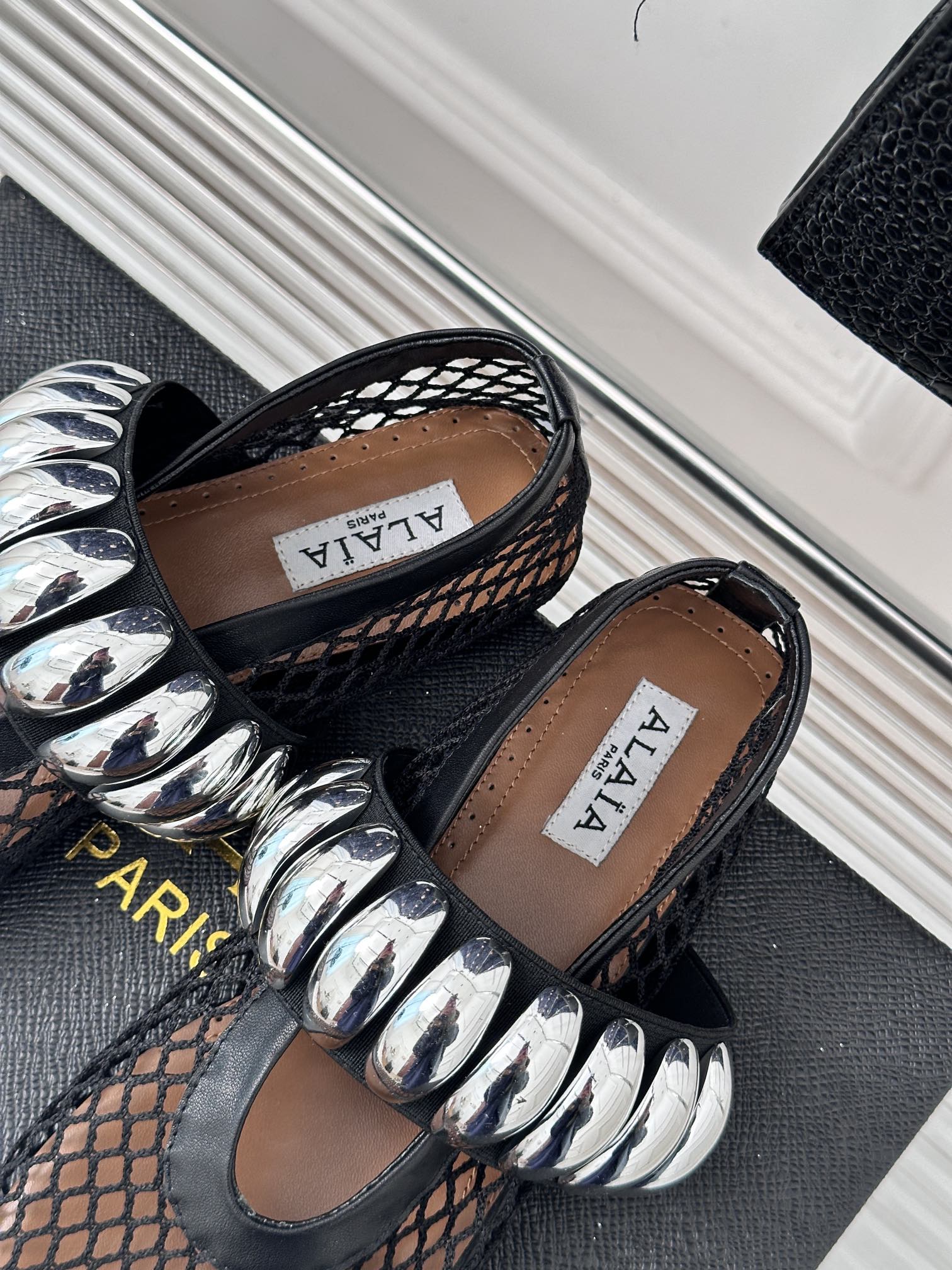 Alaia 25 Mary Jane Mesh Ballet Flats Black Calfskin 297034