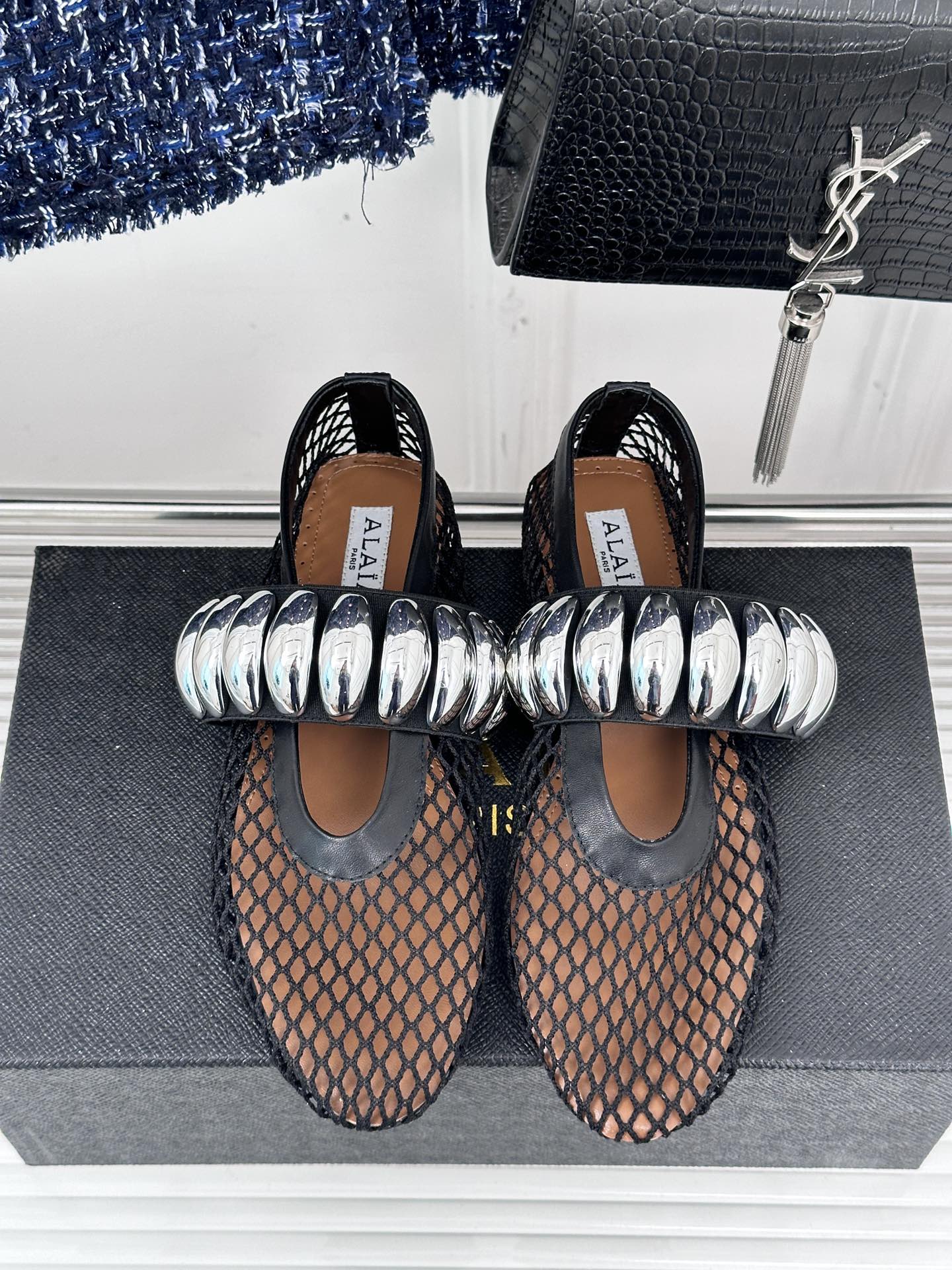Alaia 25 Mary Jane Mesh Ballet Flats Silver Calfskin 293250