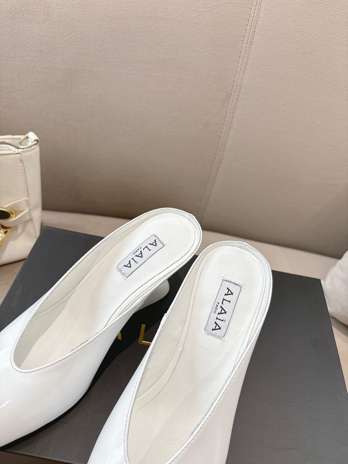 Alaia 25 Azzedine High Heels Mules With Gold Hardware White Calfskin 293186