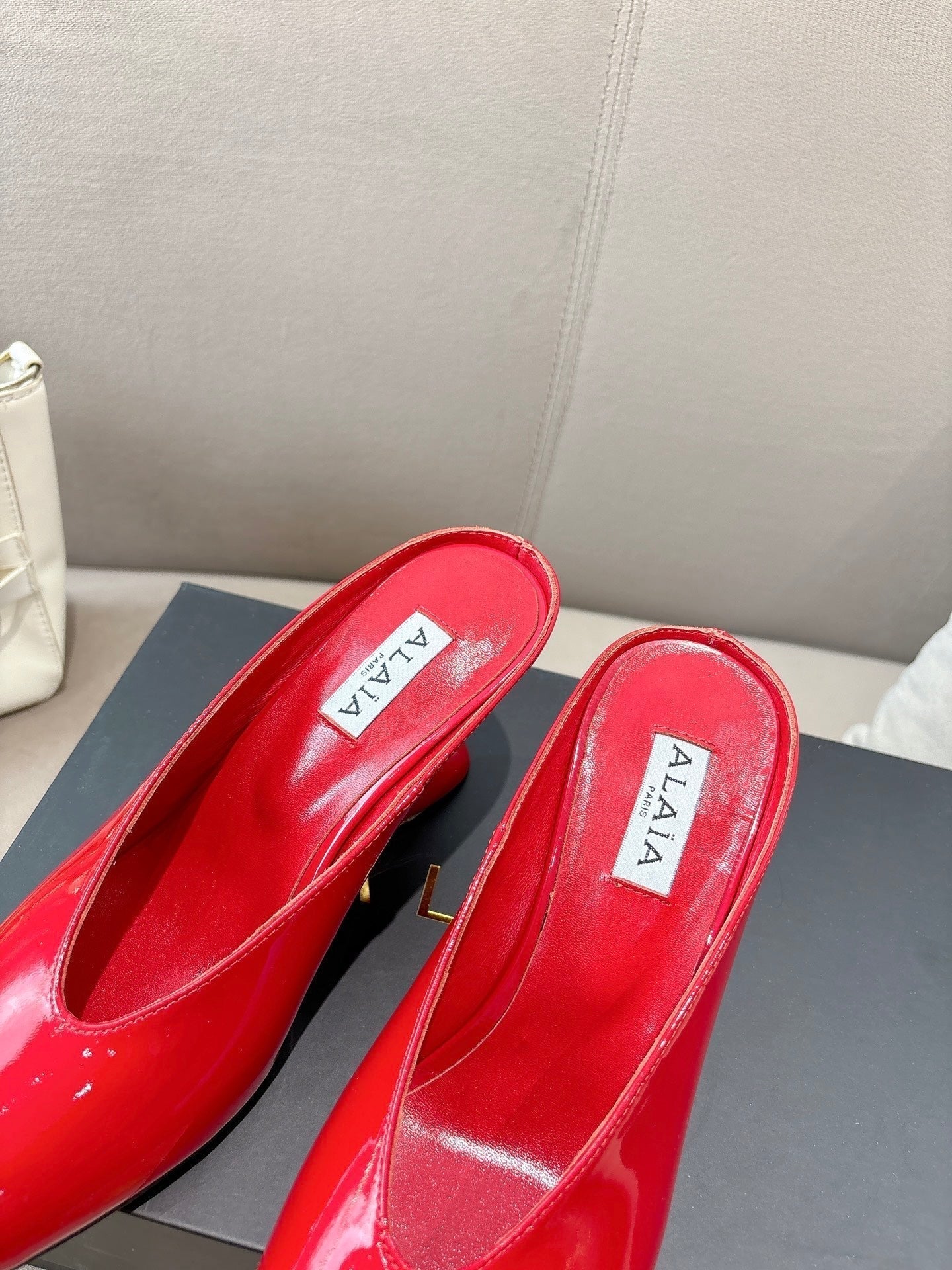 Alaia 25 Spike High Heel Mules Red Lampskin 293183