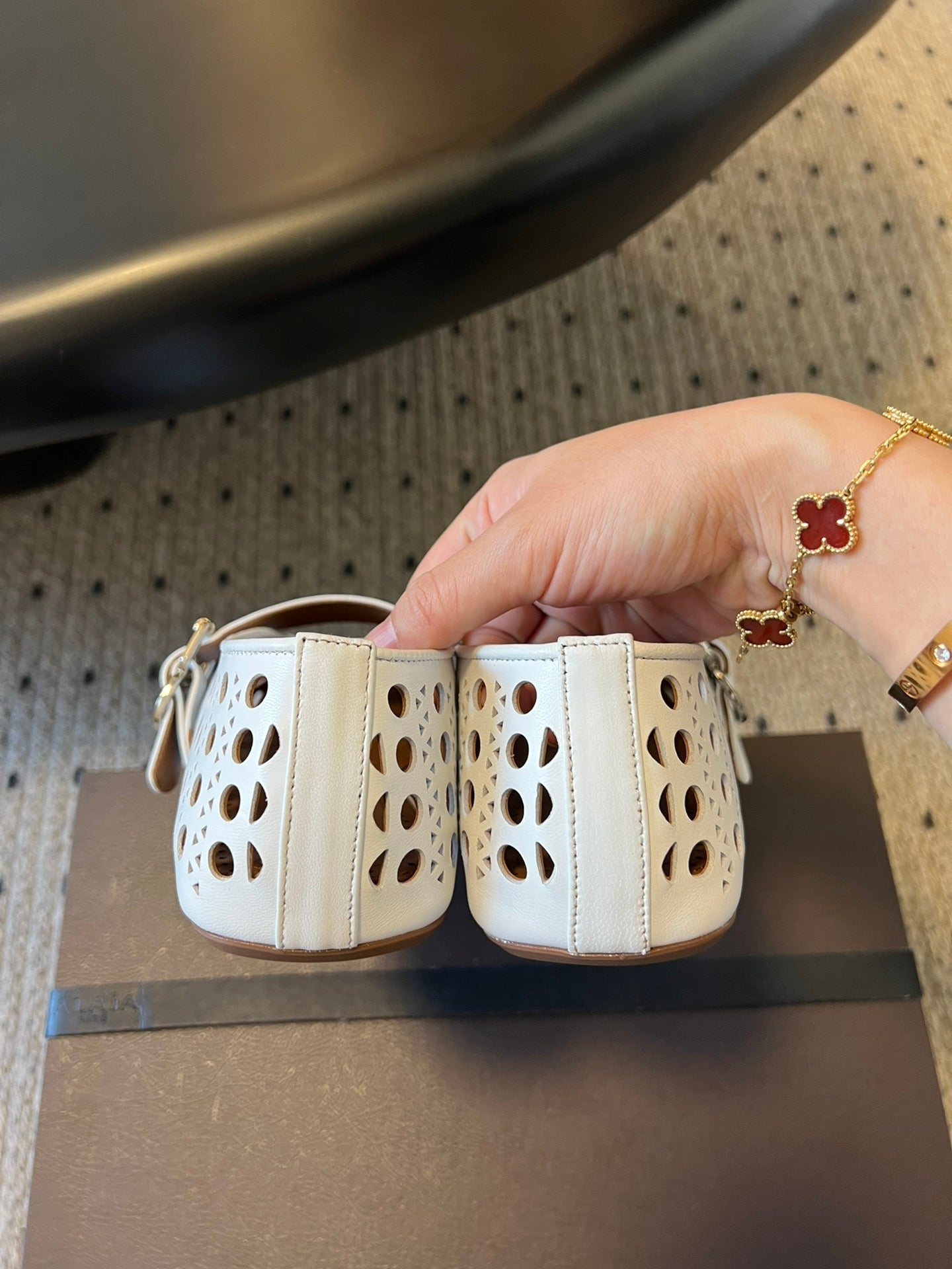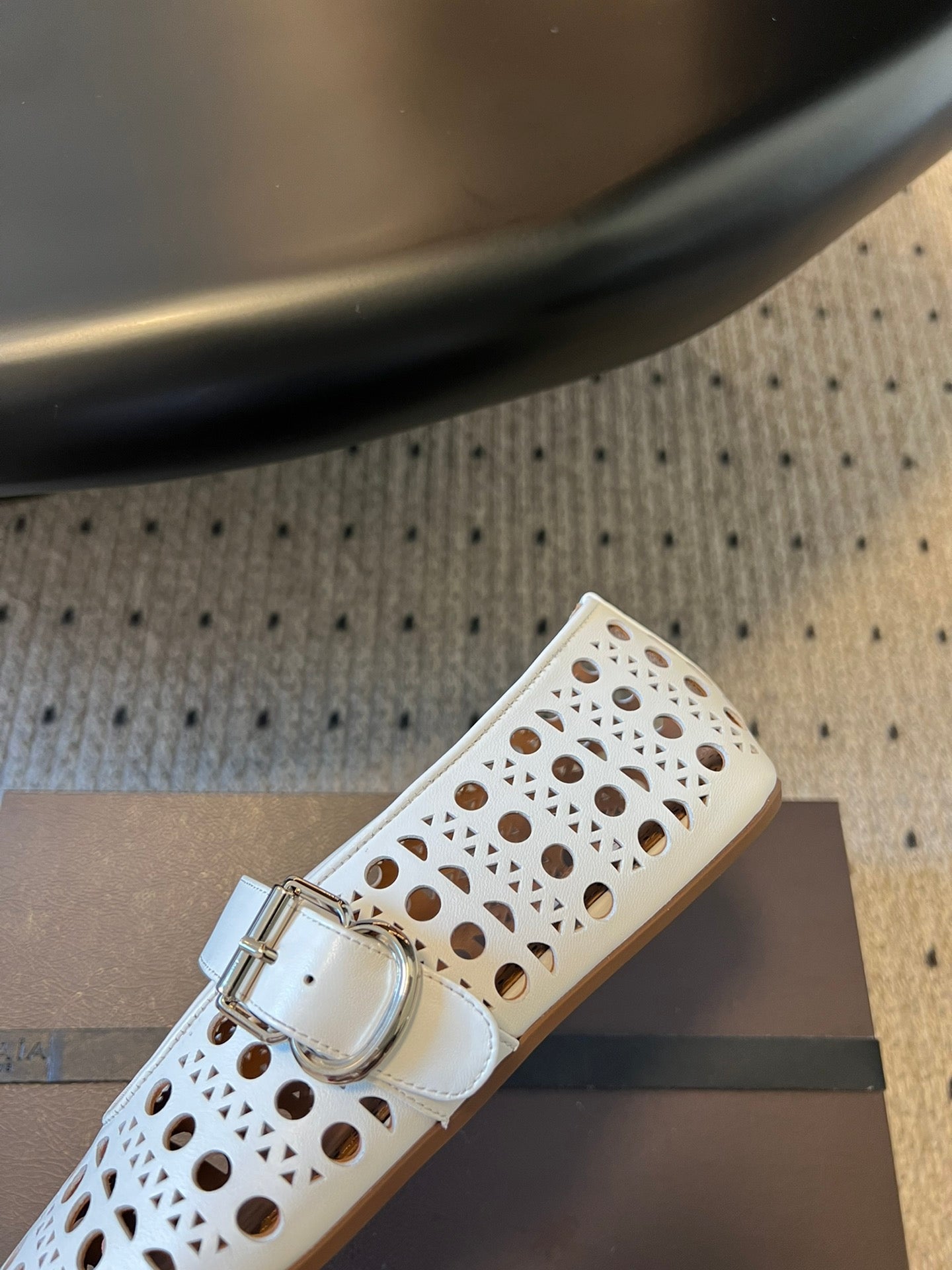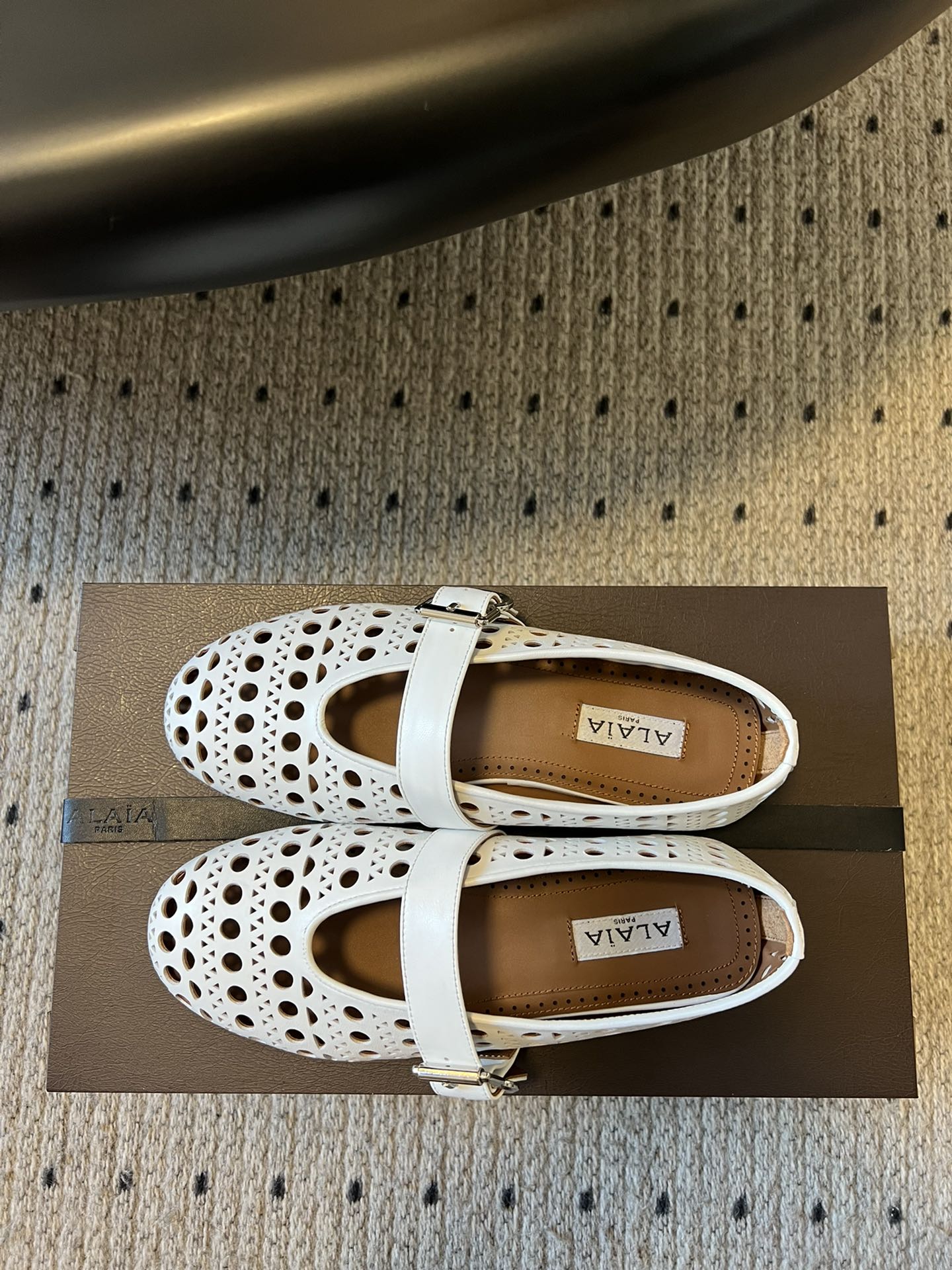 Alaia 25 Vienne With Eyelets Ballet Flats White Lambskin 303717