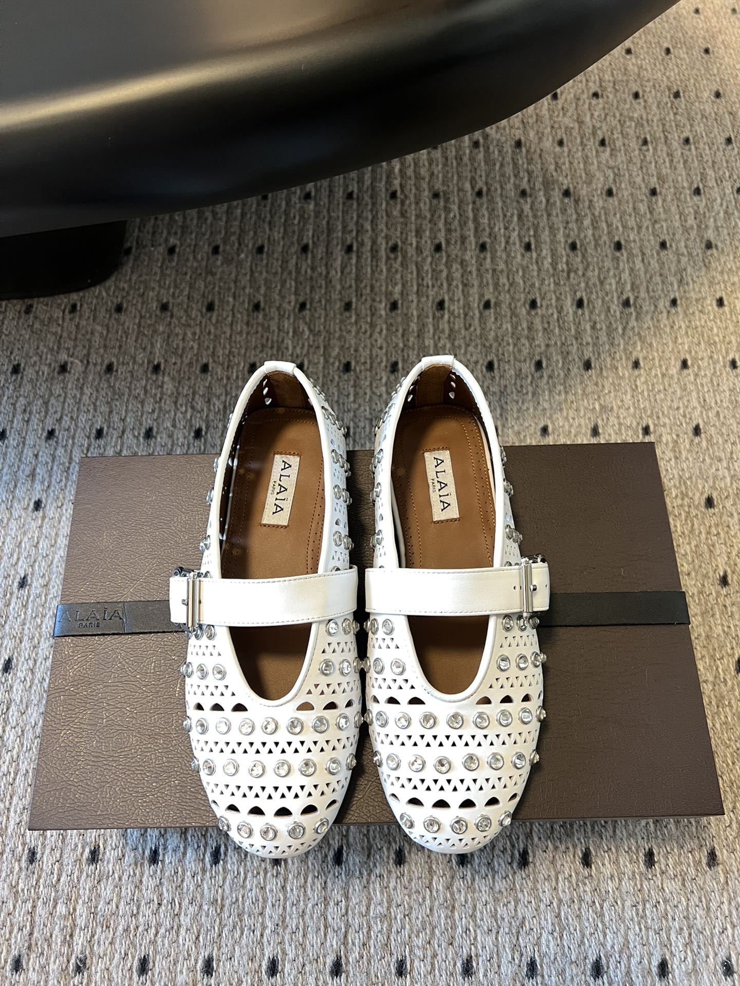 Alaia 25 Vienne With Strass Ballet Flats White Lambskin 303721